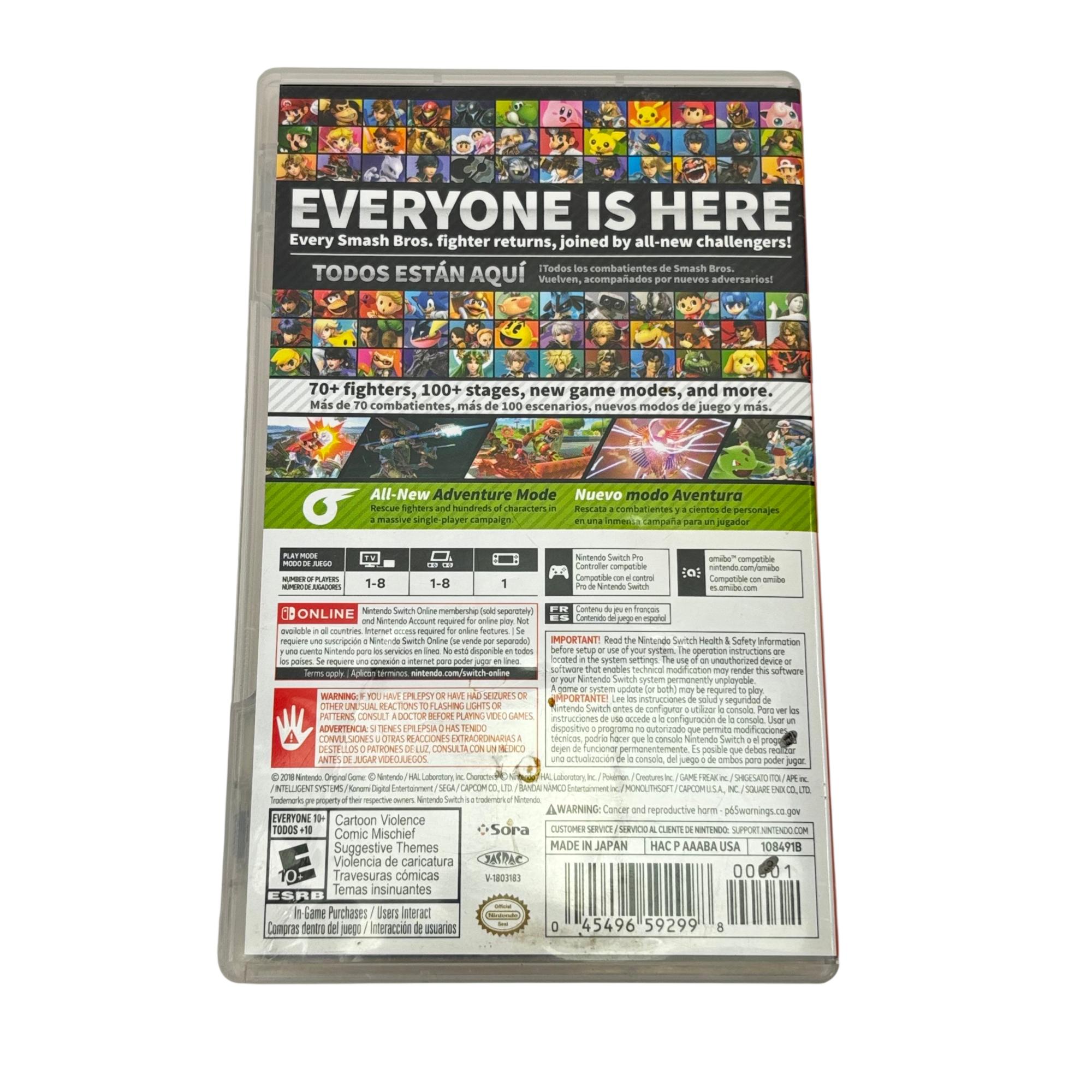 Super Smash Bros. Ultimate for Nintendo Switch is a fast-paced fighting game featuring a vast roster of characters from popular video game franchises. This title offers dynamic multiplayer battles with detailed arenas and a variety of gameplay modes, providing an engaging and competitive experience for players of all skill levels.