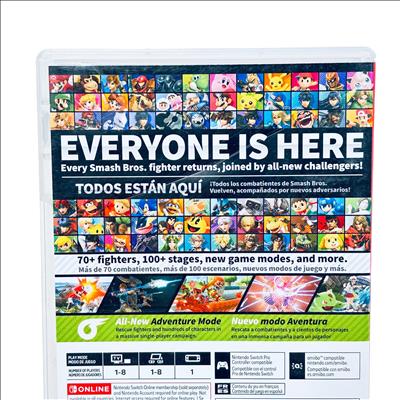 Super Smash Bros. Ultimate (Nintendo Switch, ESRB: Everyone 10+) offers an expansive fighting game experience featuring a vast roster of iconic characters from various franchises. Designed for Nintendo Switch, this game provides dynamic gameplay with diverse stages and competitive multiplayer modes, appealing to fans of all skill levels and ages 10 and up.