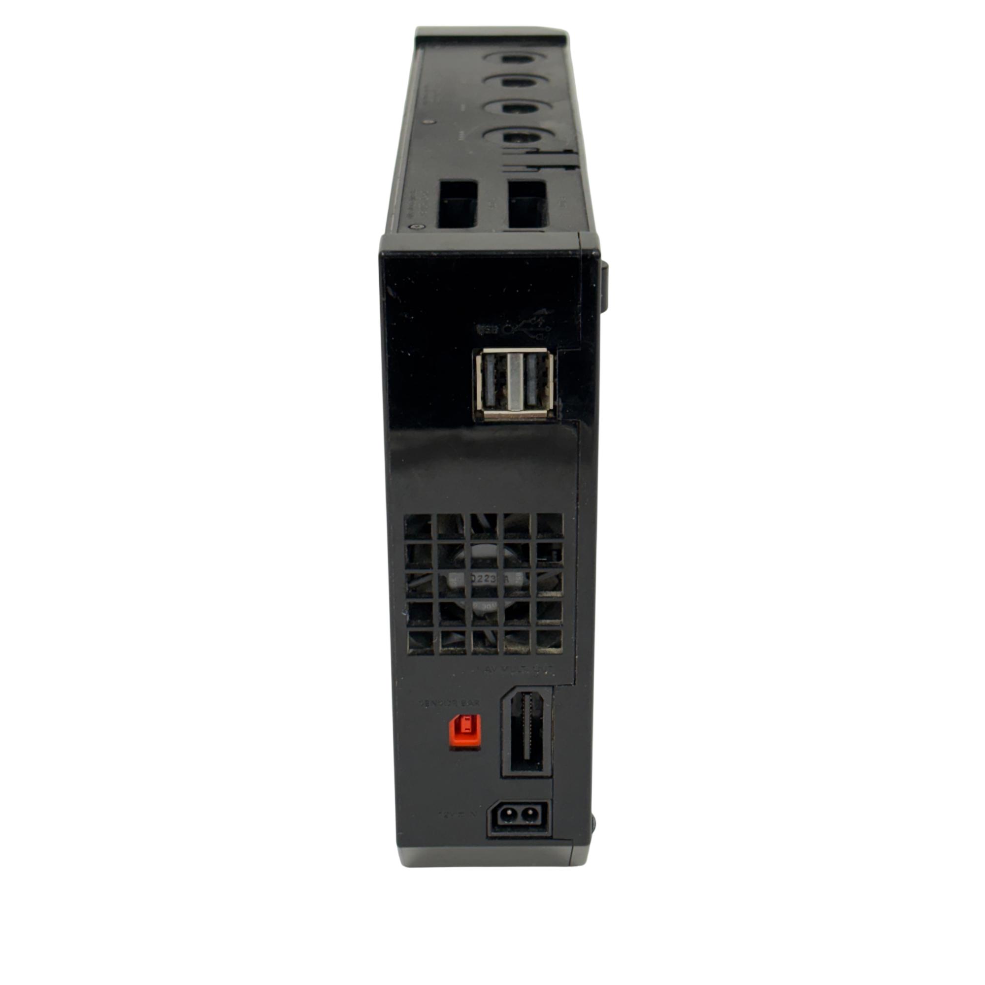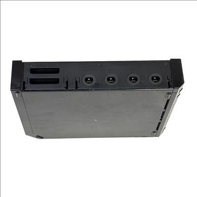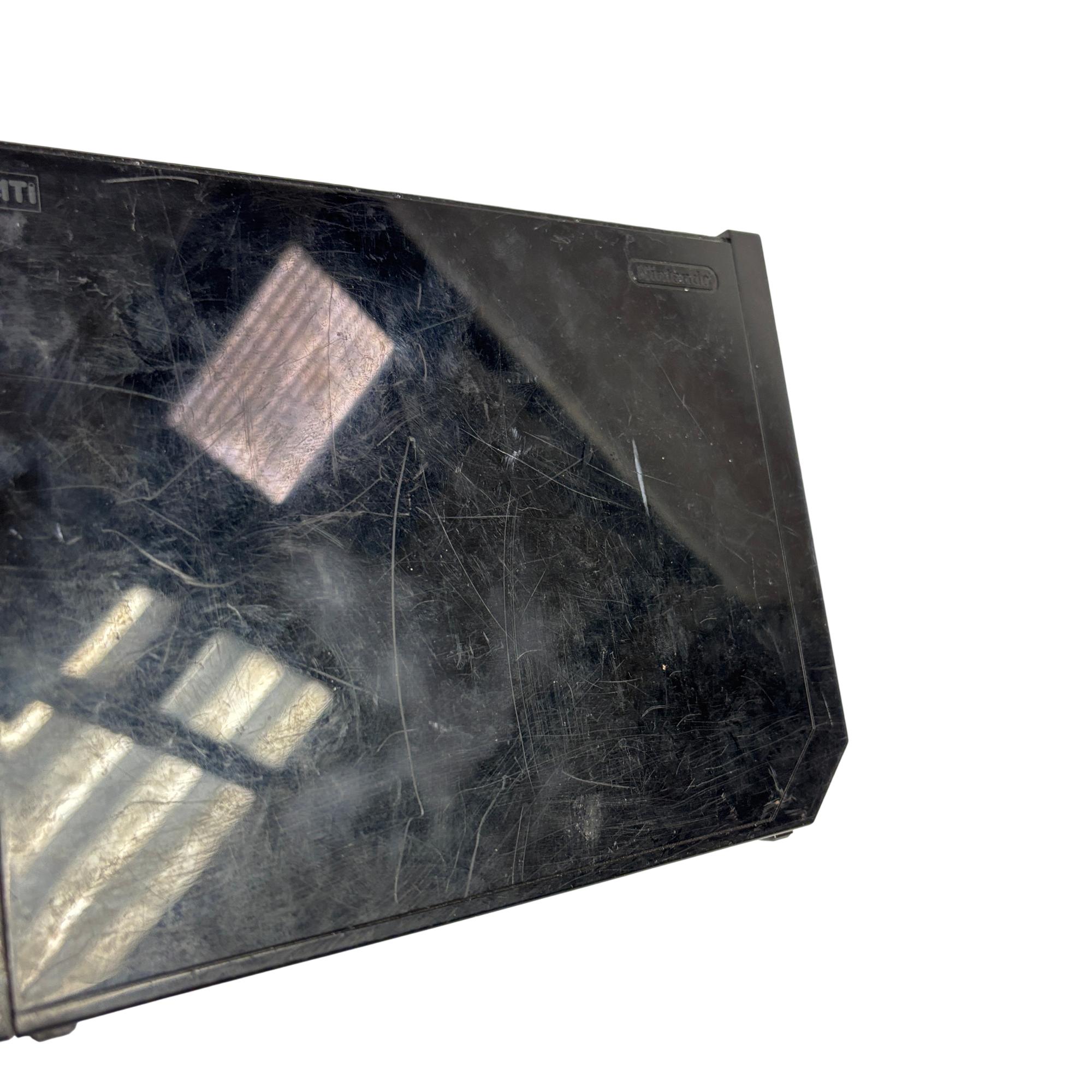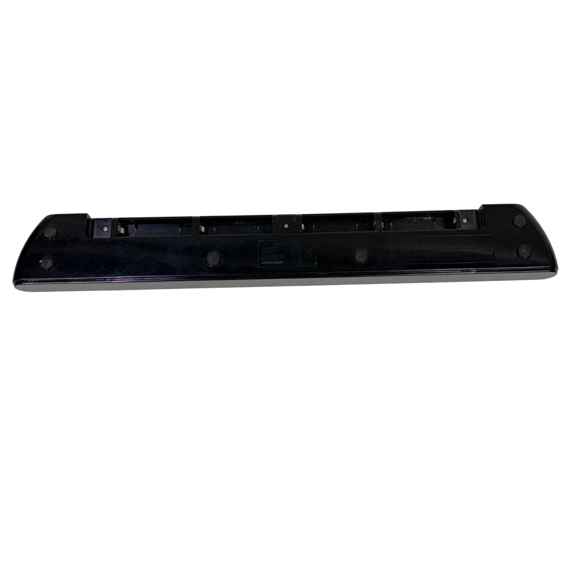 This Nintendo Wii RVL-001 is a sleek black video game console featuring multiple ports and buttons including power, reset, and eject. Designed for immersive gaming experiences, this model includes a sensor bar for accurate motion detection and enhanced control. Its compact rectangular design integrates a grey cable and metal components, making it a versatile addition to any entertainment setup.