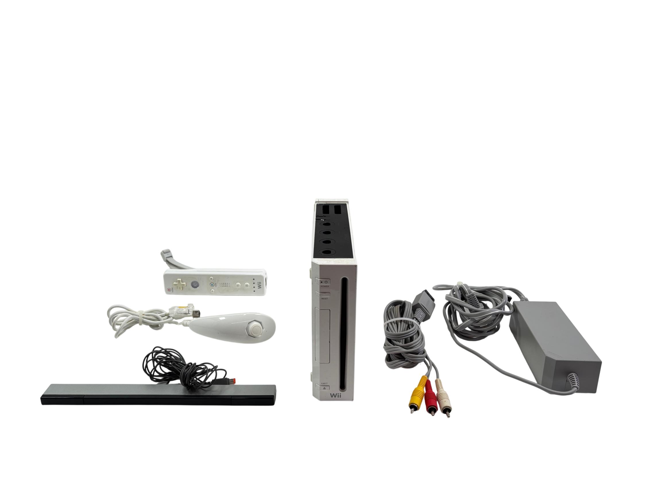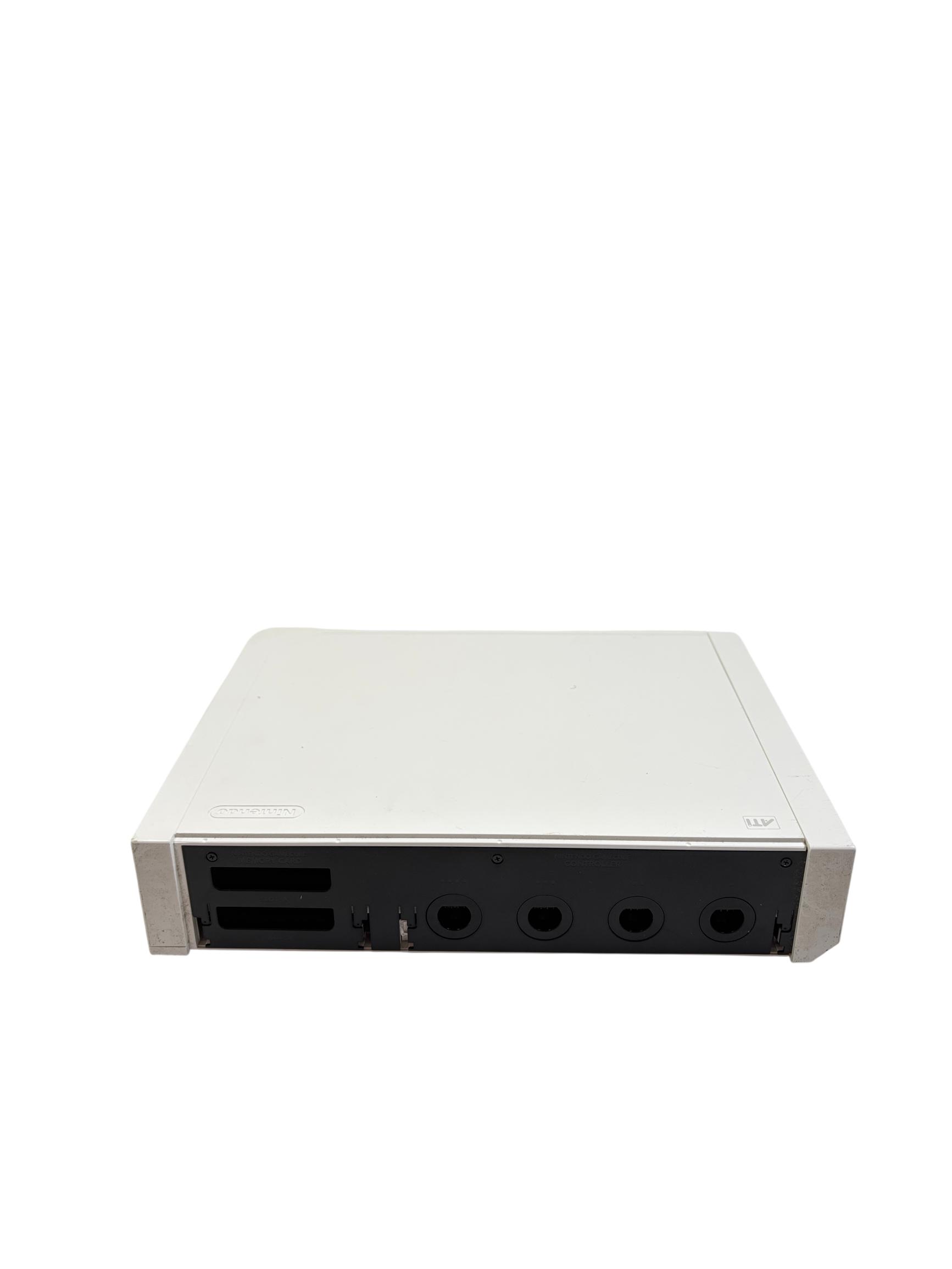 Nintendo Wii Console Bundle RVL-001 (White) is a compact gaming system designed for immersive interactive entertainment. This model features a sleek white rectangular design with multiple ports including AV multi-out, supporting classic GameCube compatibility and sensor bar connectivity for accurate motion detection.