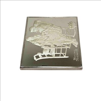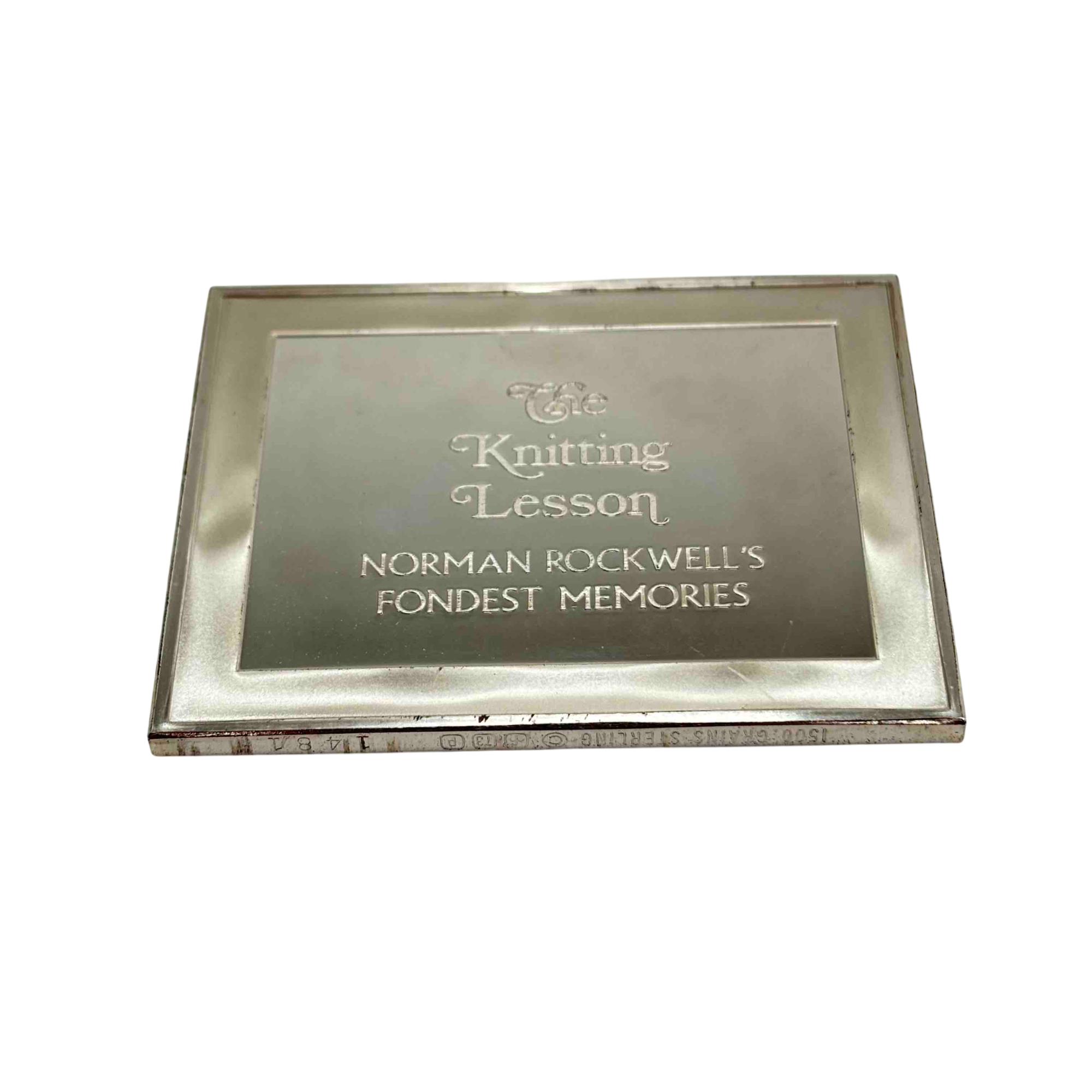 Celebrate the timeless art of Norman Rockwell with this 1973 Franklin Mint limited edition sterling silver art bar, featuring the cherished The Knitting Lesson from the Fondest Memories collection. Made of 150 grains of .925 sterling silver, this collectible piece beautifully captures the warmth of Rockwell's iconic imagery, making it a perfect addition for both art enthusiasts and silver collectors.