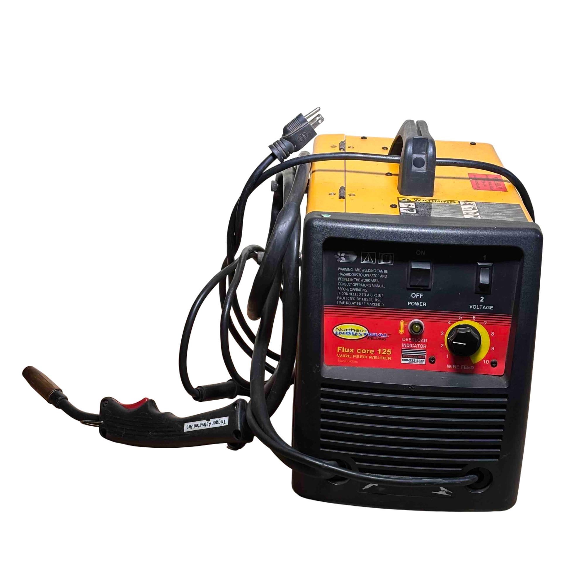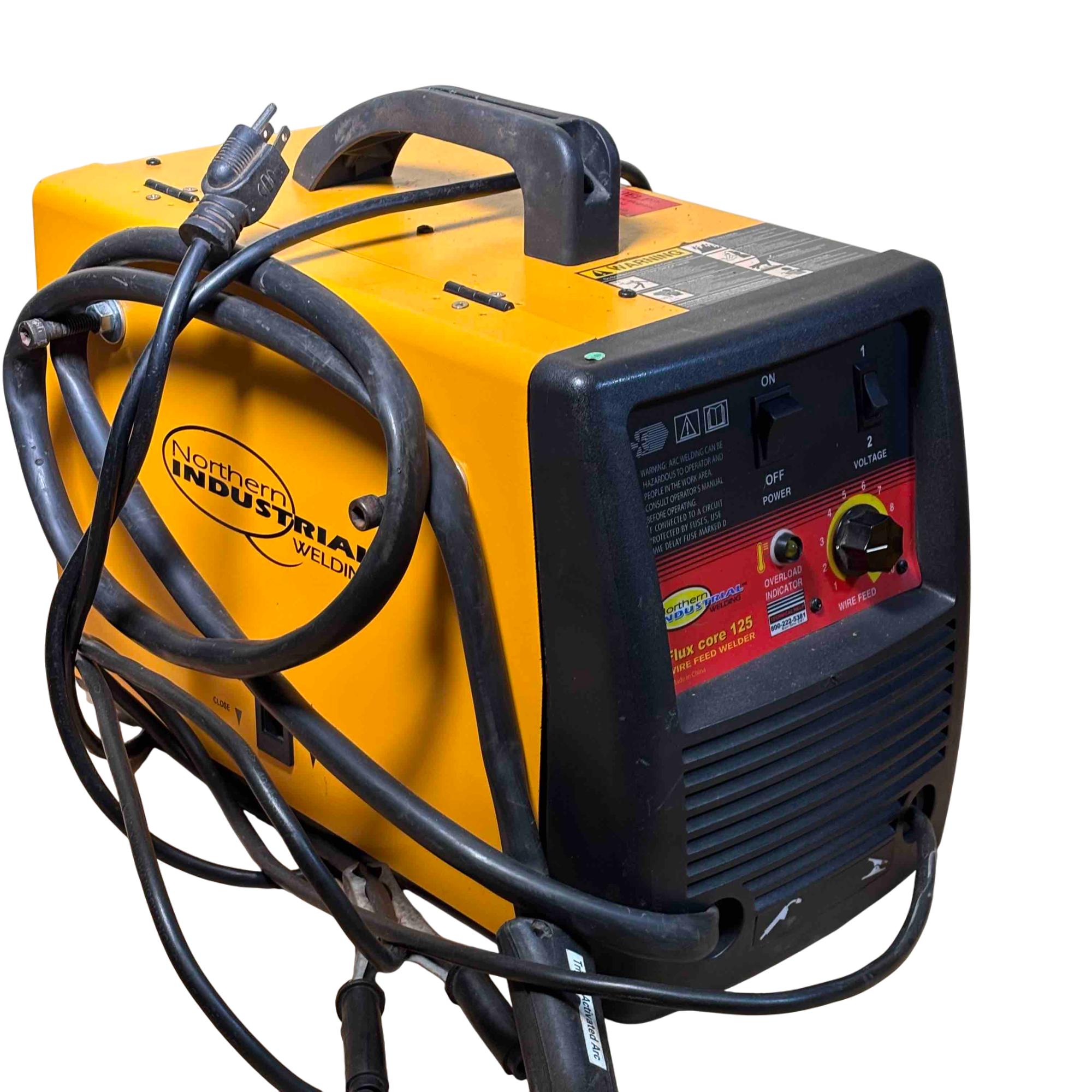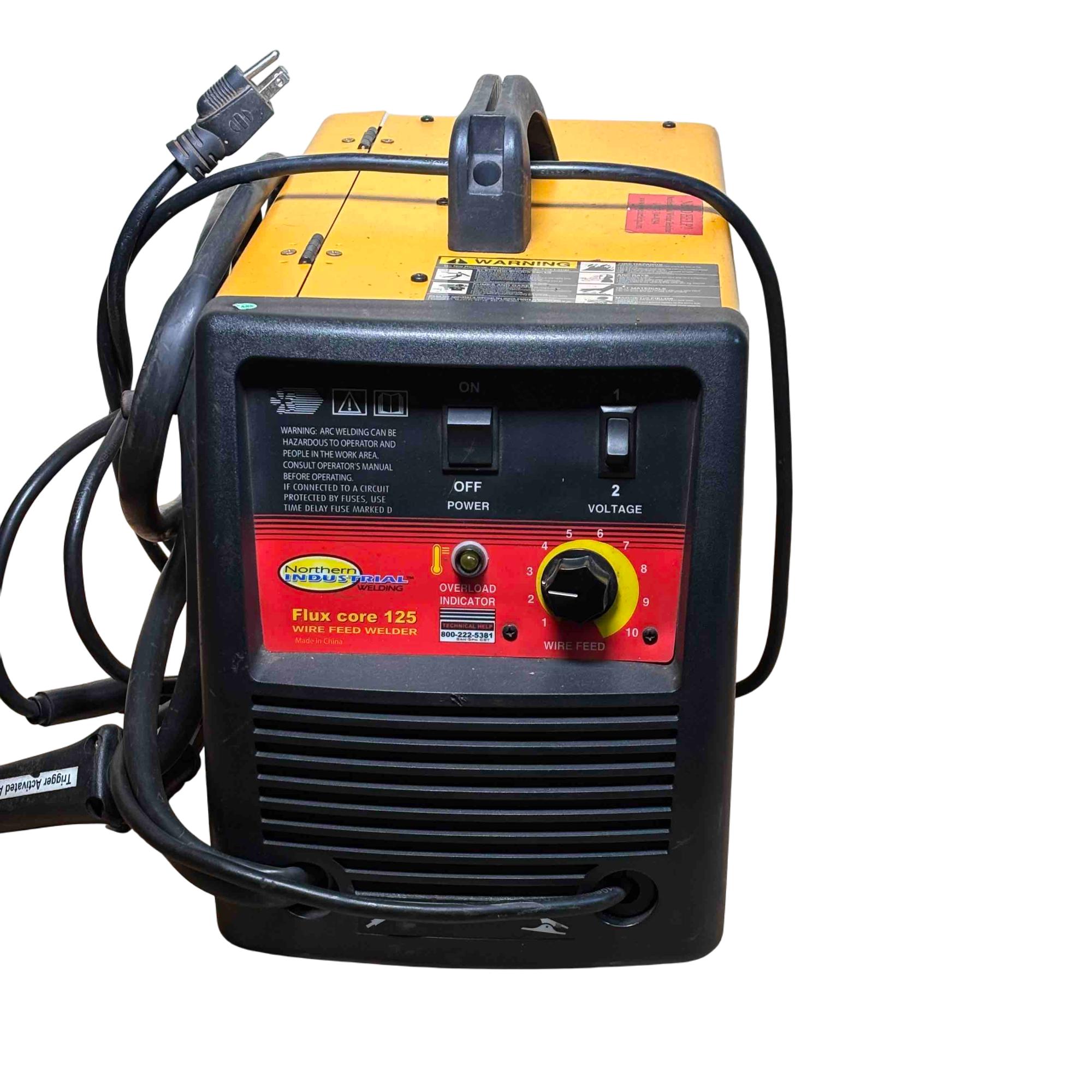 This Northern Industrial Welding Flux Core 125 Wire Feed Welder offers reliable gasless welding performance in a compact, rugged design. Perfect for light fabrication, repairs, or DIY work, it features adjustable wire feed speed and voltage control. With user-friendly controls and proven durability, its ideal for beginners and seasoned welders alike looking for portability and convenience.