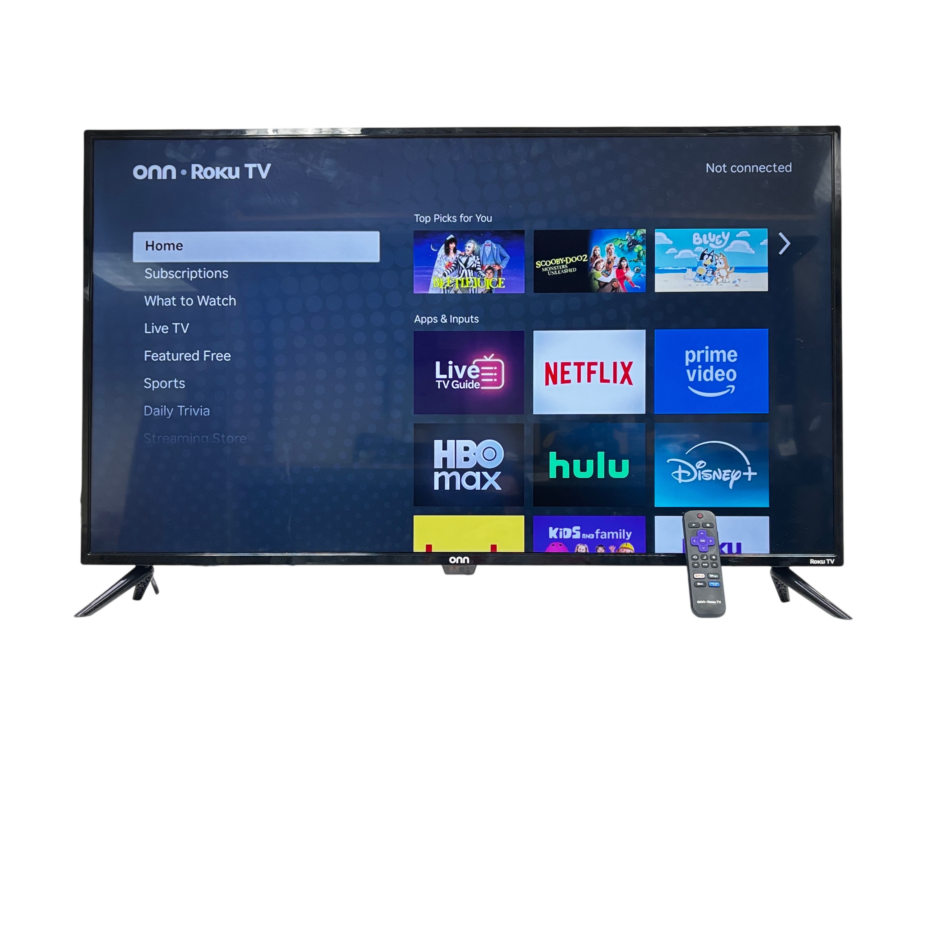 The ONN is a 43-inch Full HD Roku Smart TV that delivers vibrant picture quality and easy access to popular streaming services like Netflix, Hulu, and Disney+. Featuring a power-efficient design with 78W power input and USB connectivity, this TV is perfect for any living room or bedroom setup. The included remote control offers convenient navigation through Rokus user-friendly interface, making it simple to find your favorite shows and movies. Its slim black design and sturdy stand provide a modern look that fits well in most spaces.