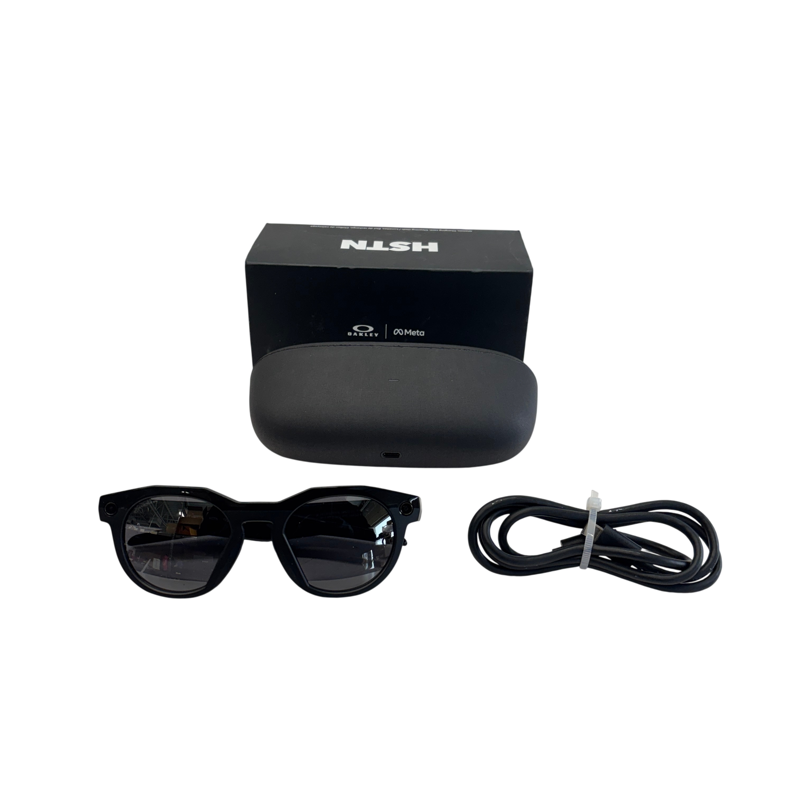 Oakley Meta HSTN Smart Glasses (Model 0W80020351) combine advanced audio technology with stylish black frames for a seamless wearable experience. Featuring Bluetooth connectivity and integrated microphones, these smart glasses allow hands-free calls and audio playback. The package includes a protective charging case and USB charging cable, making it convenient for on-the-go use. Lightweight and durable, these glasses are designed for comfort and everyday wear.