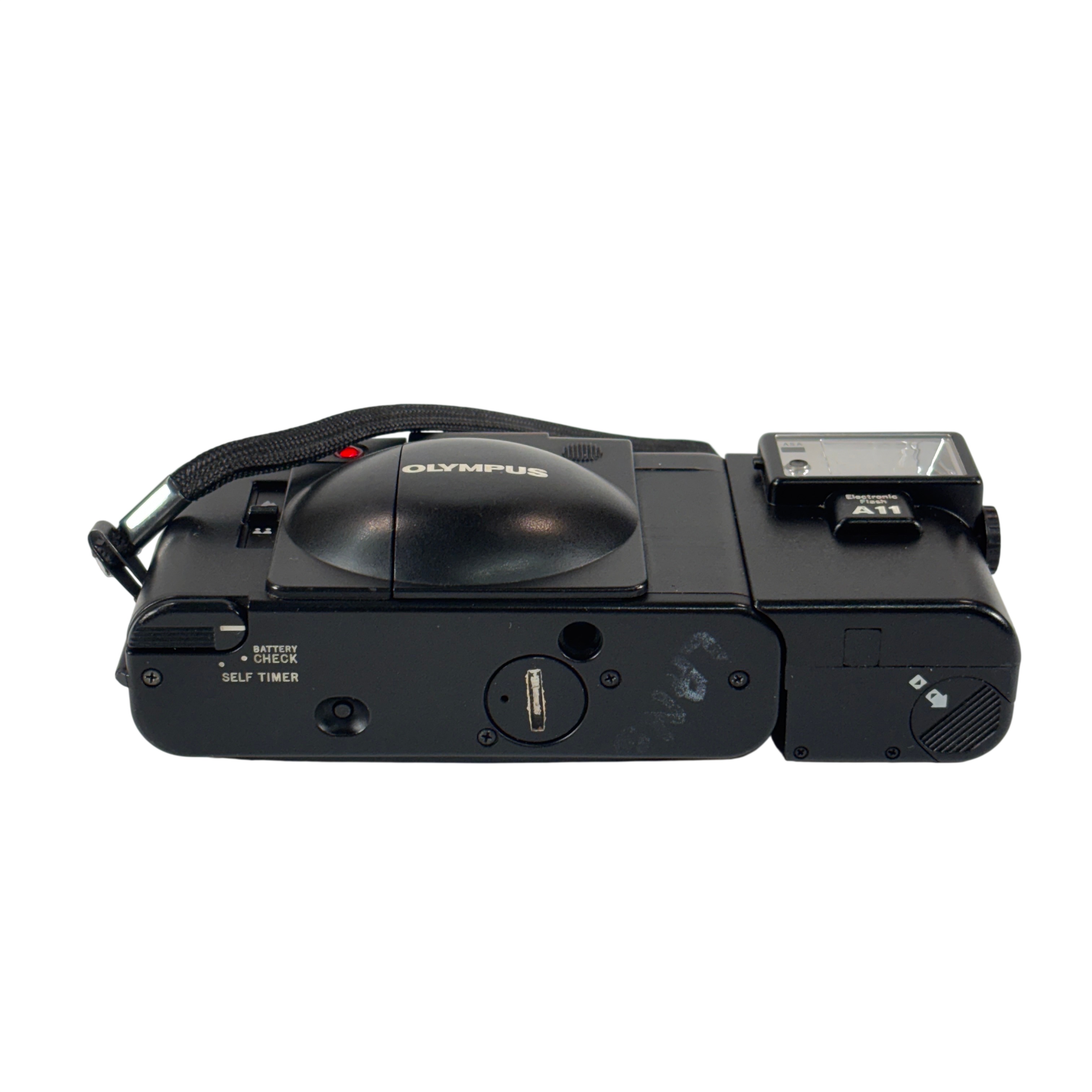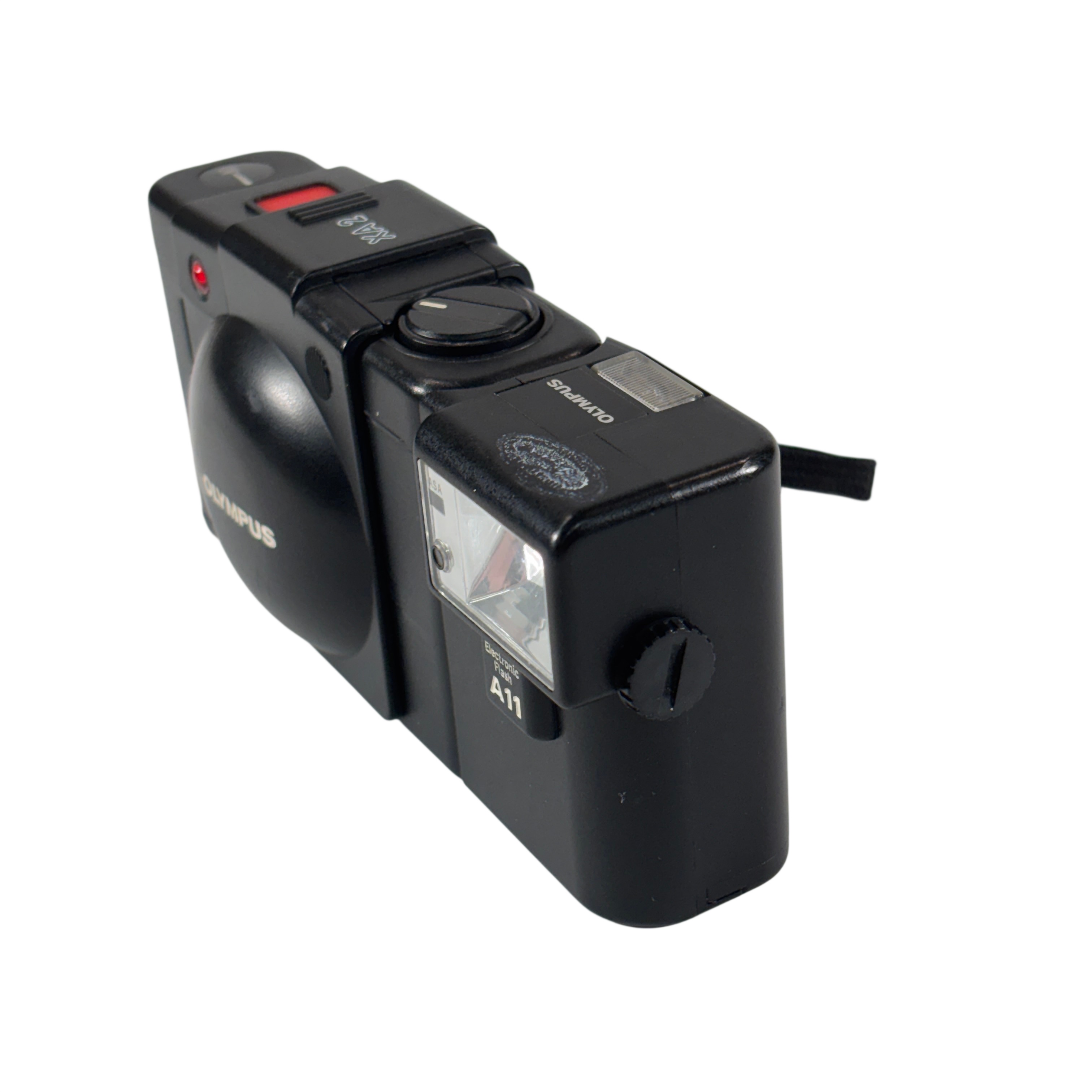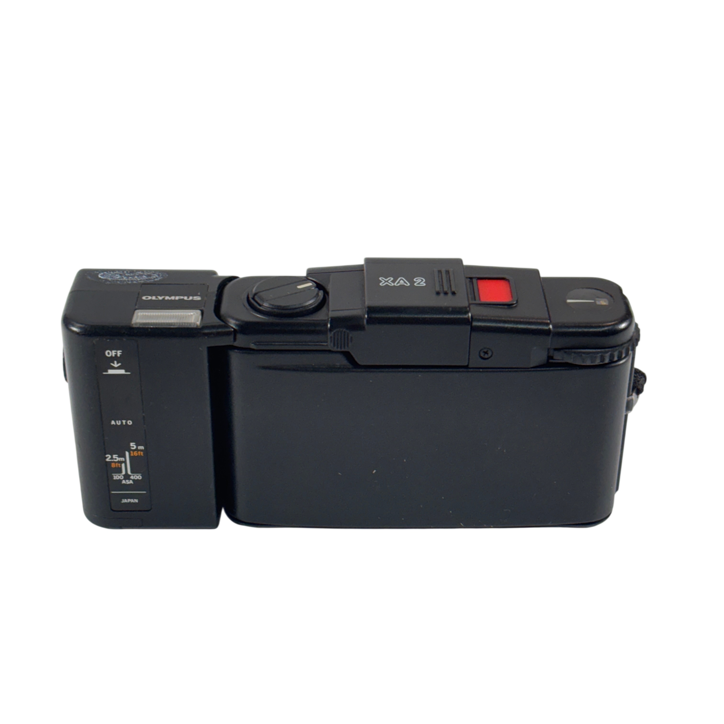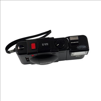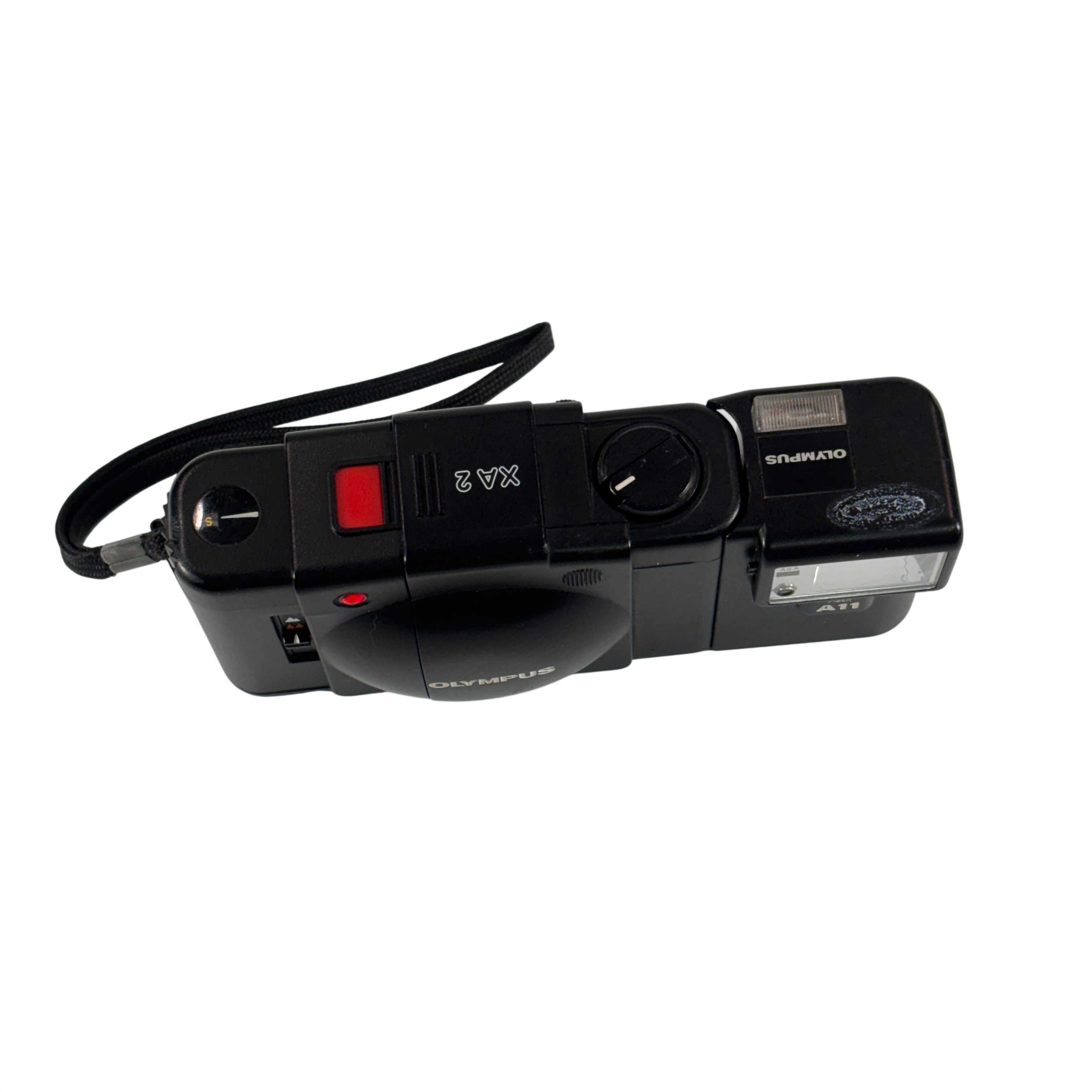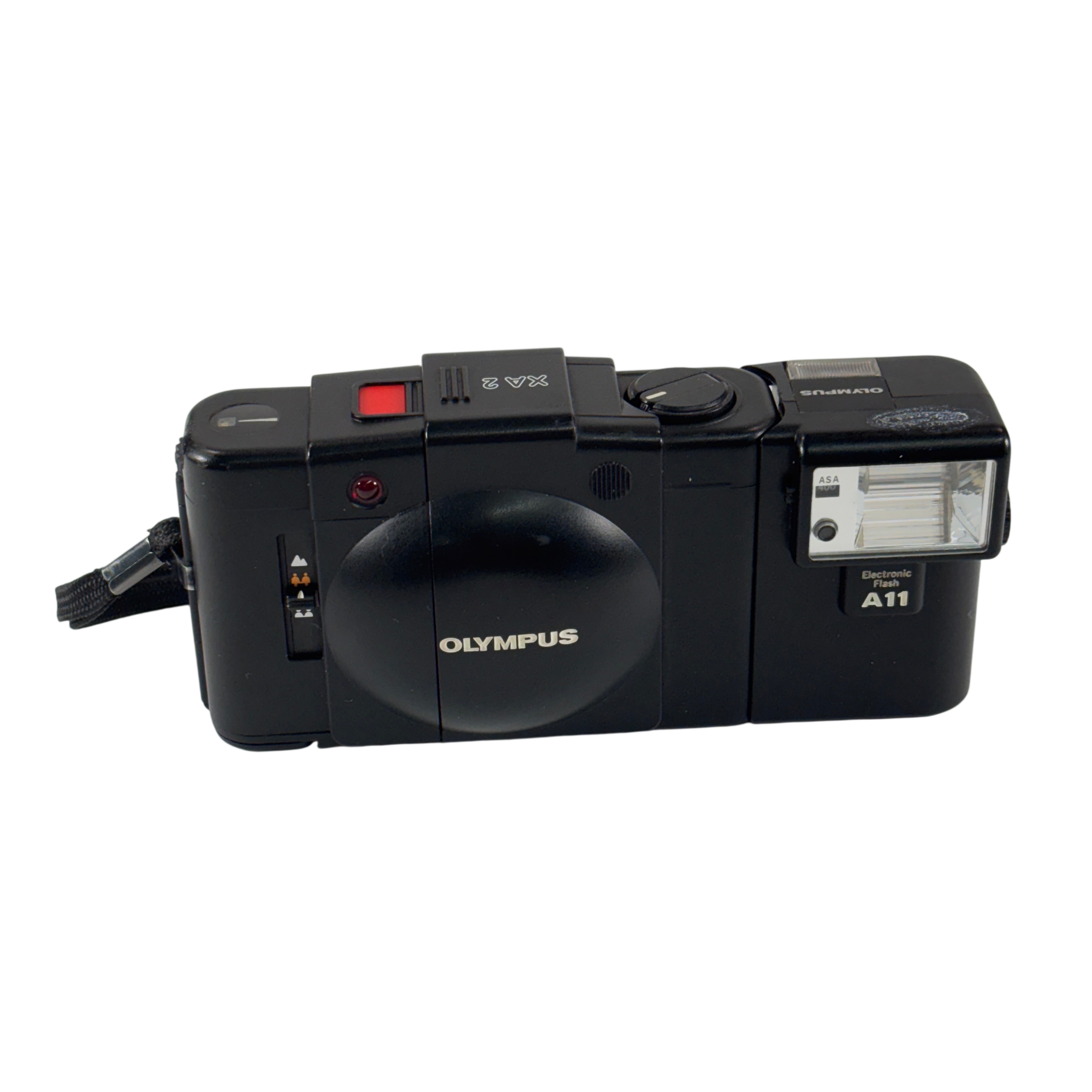 The Olympus XA2 is an ultra-compact 35mm point-and-shoot film camera introduced in 1980, designed for simple, everyday photography with impressive image quality. Its signature clamshell design makes it highly portable and protects the lens when not in use, making it ideal for travel and street shooting.