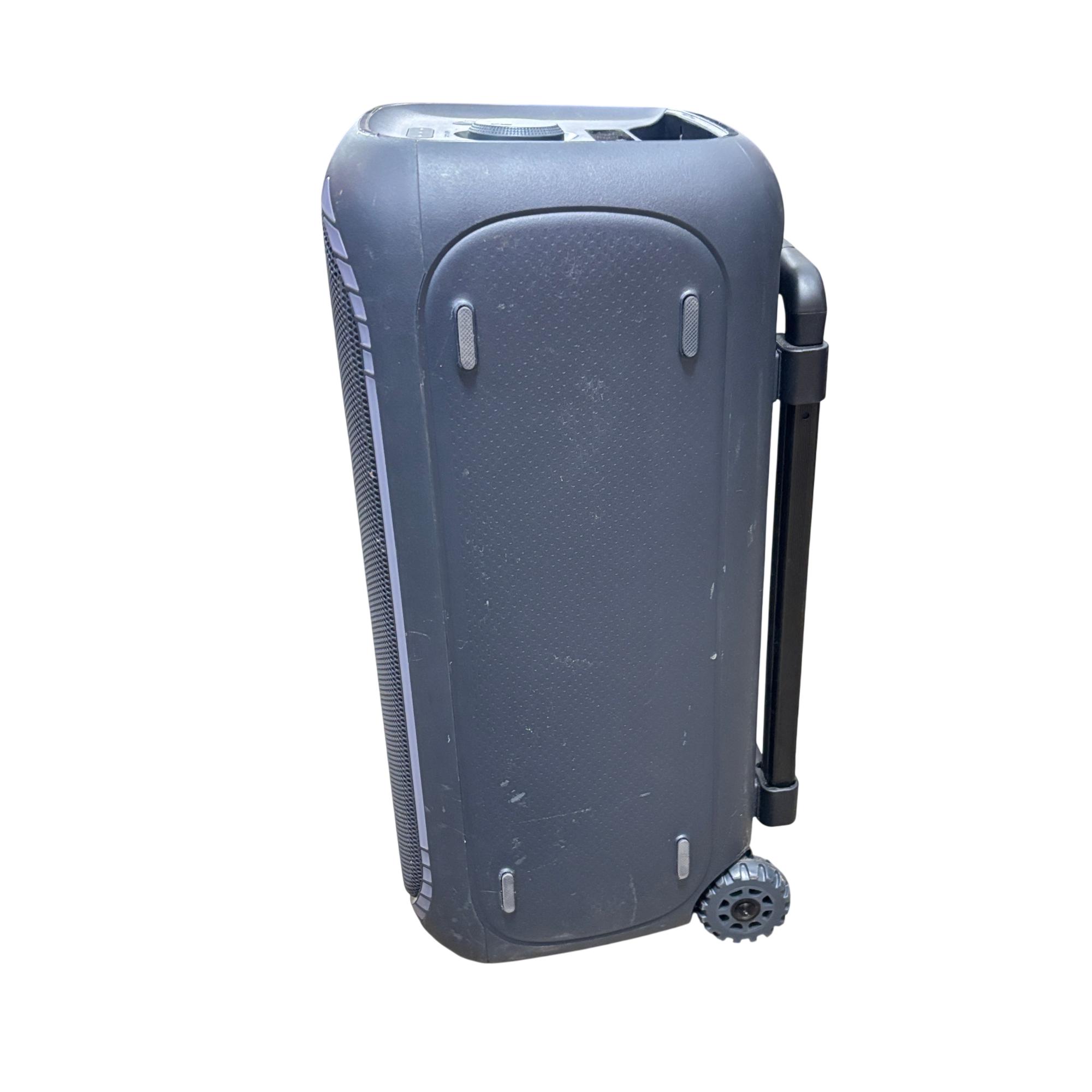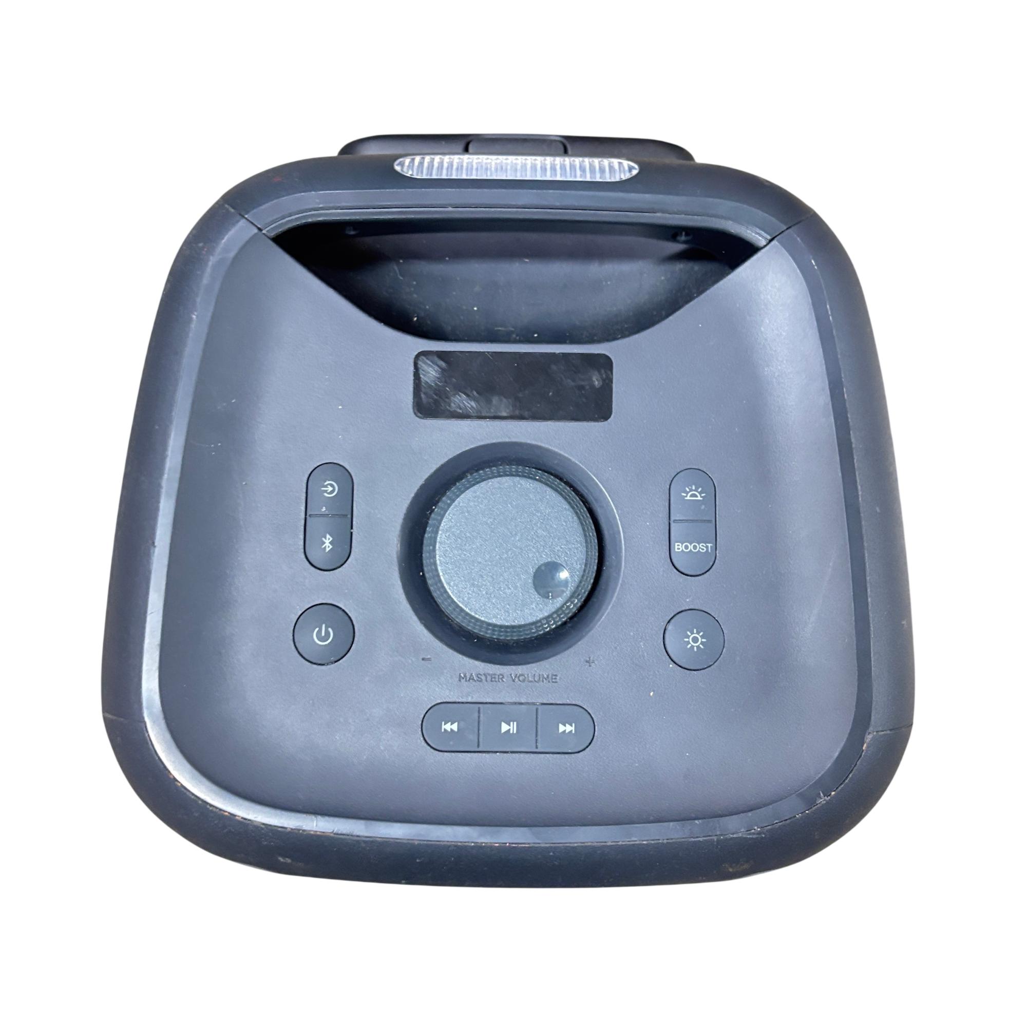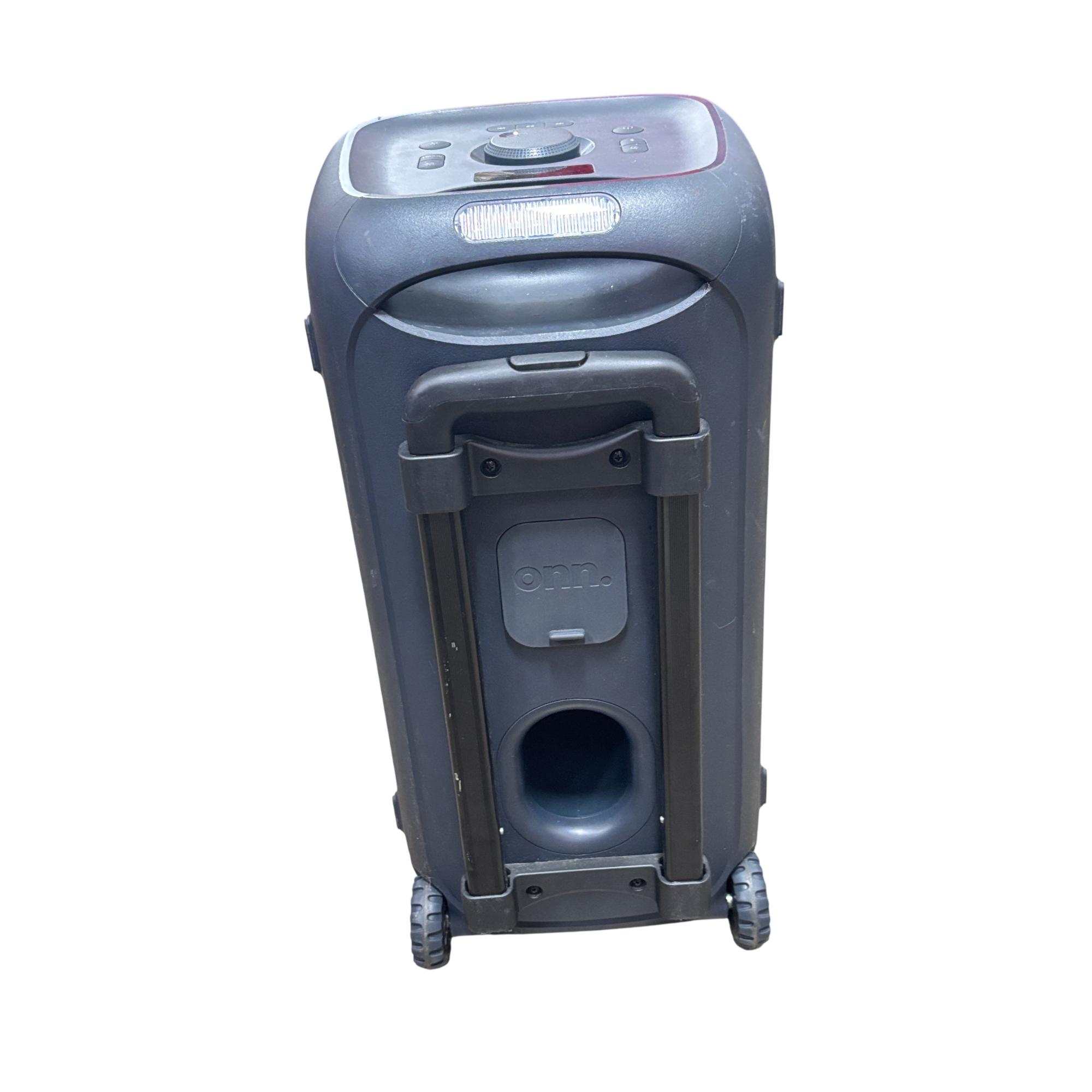 Bring the party anywhere with the Onn 100094813 Large Party Wireless Bluetooth Rolling Speaker. This portable 160W RMS system delivers booming sound with vibrating bass, 6 multicolor LED lighting effects. It features Bluetooth connectivity, FM radio, Bass Boost, and Party Sync Mode for pairing with other Onn speakers. Designed for convenience, it includes a telescoping handle, smooth-glide wheels, a USB charging port, AUX input, and a microphone/guitar port. With IPX4 water resistance, this speaker keeps the music going indoors or out.