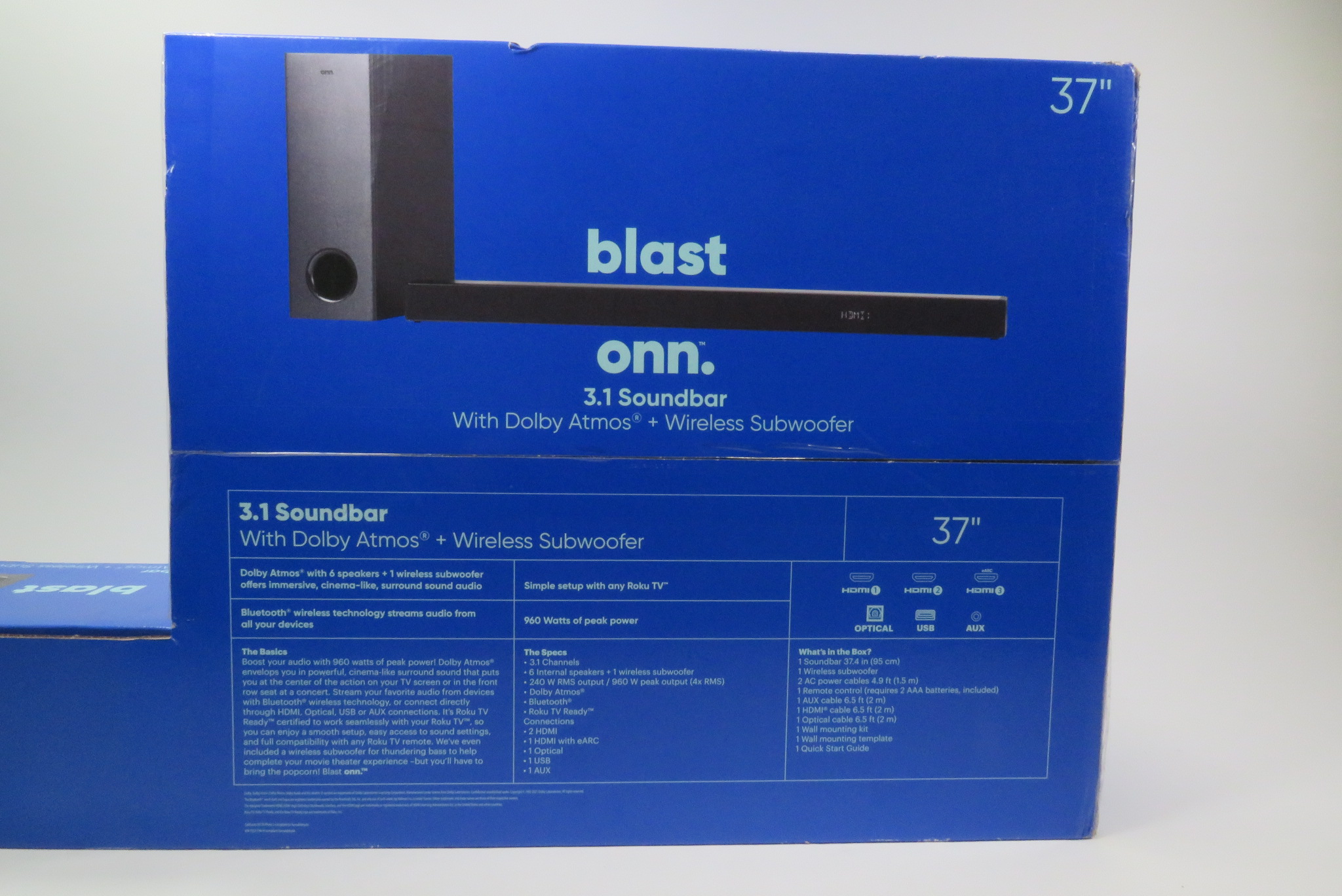 37" soundbar system with Dolby Atmos, 6 Internal speakers, and 1 wireless subwoofer