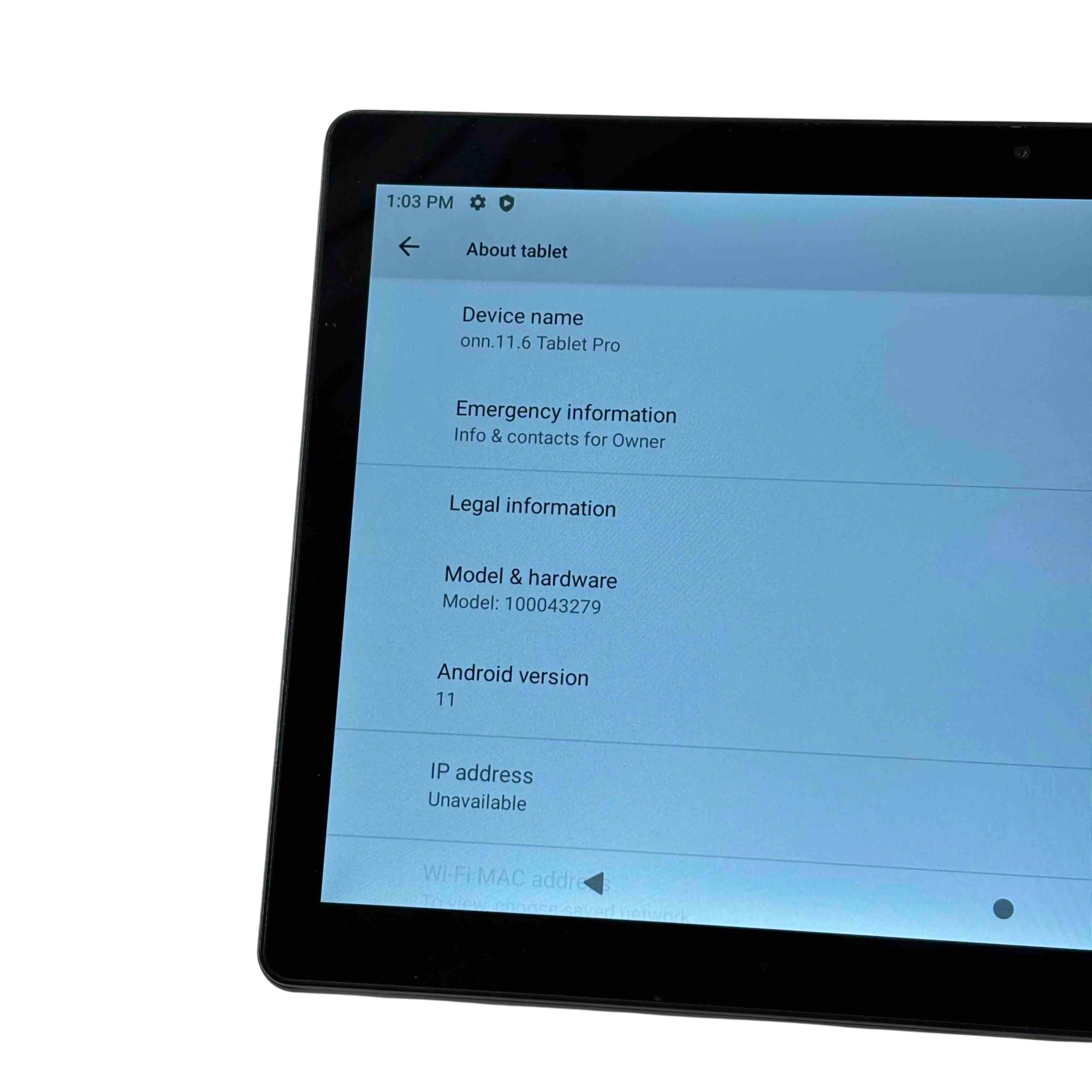 Onn Tablet Pro 100043279 features an 11.6-inch Full HD touchscreen display and runs on Android 11 for smooth performance. Powered by a 2.0 GHz octa-core processor with 4 GB RAM, it offers 64 GB of storage with microSD expansion and 5 MP front and rear cameras for everyday use.