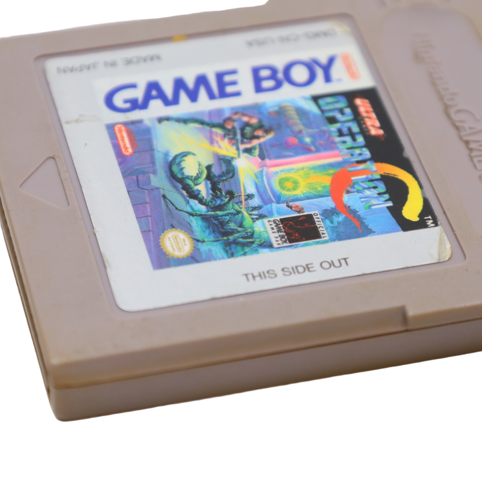 A 1991 release for the Nintendo Game Boy featuring five stages that share design similarities with earlier titles in the series. The odd-numbered stages utilize a side-view perspective, while the even-numbered stages are presented from a top-view perspective. Audio consists primarily of arranged background music from the original game, excluding specific themes such as the Area 2 theme, the Stage Select theme, the sub-boss theme in Area 3, and the ending theme. Auto-fire is enabled as a default feature, removing the Machine Gun power-up found in prior entries. Players utilize the Spread Shot and Fire Gun, alongside a new Homing Gun that targets enemies. The Spread Shot starts as a three-way shot and upgrades to a five-way version upon secondary pickup. The Fire Gun lacks chargeable shots, and the Barrier and Rapid Bullets power-ups are not included. The objective involves a character neutralizing an enemy force secretly storing an alien cell. Details on the antagonists vary by region, identifying them as a hostile nation or a force working for an entity named Black Viper. The player takes the role of Bill Rizer, and the character identity designation was adapted from a Player 1 character in previous titles to a Player 2 character in this installment.