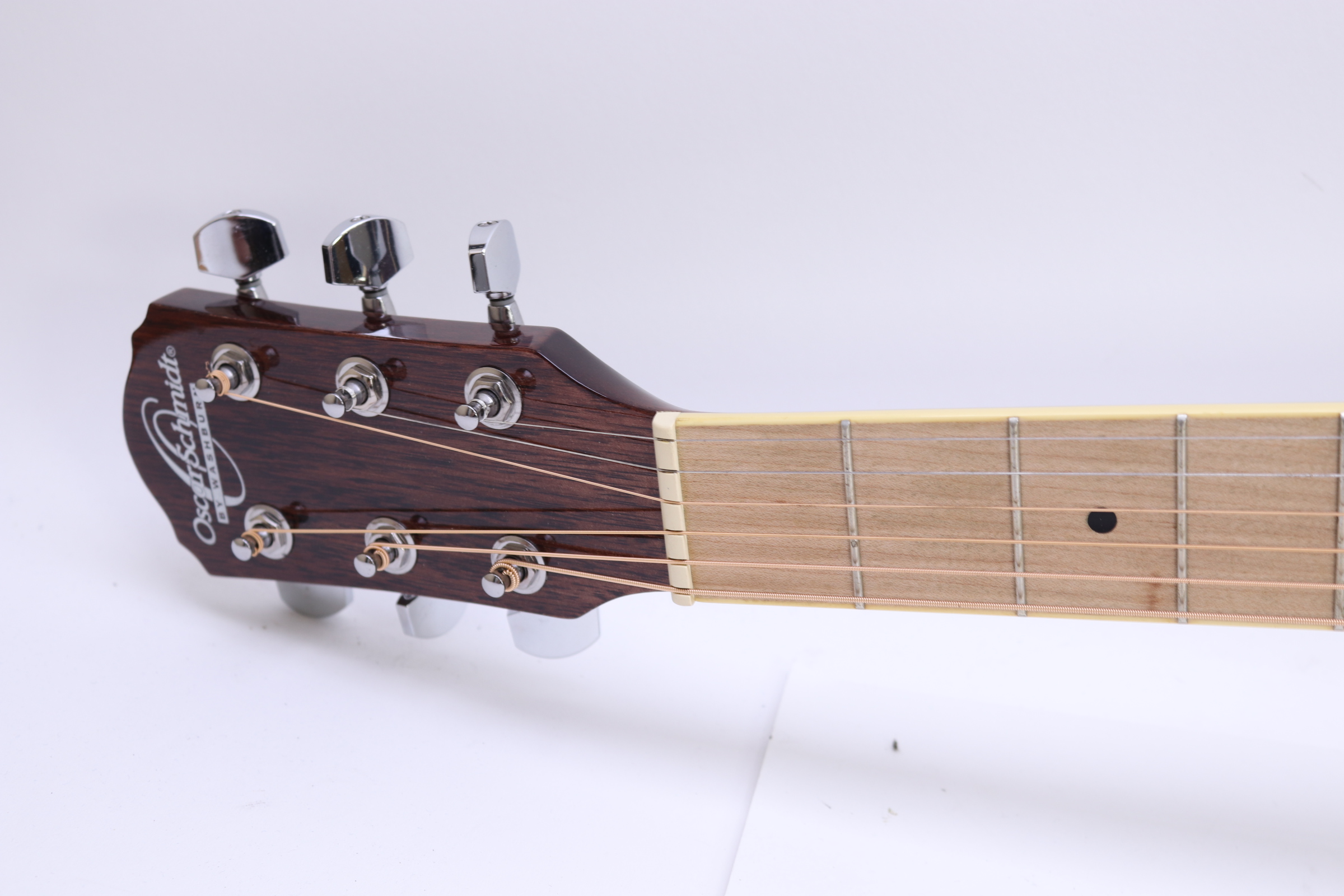 The Traditional leader in folk music since 1886 presents its complete line of acoustic guitars. Distinctive headstock bridge and pickguard designs give Oscar Schmidt instruments a professional look and identity. Premium quality hardware and modest prices make these instruments an exceptional value... a tradition Oscar Schmidt prides themselves upon. The Oscar Schmidt OG2 provides excellent tone for price and features a select spruce top, beautiful mahogany back and sides, rosewood fingerboard, diecast tuners and an adjustable truss rod.