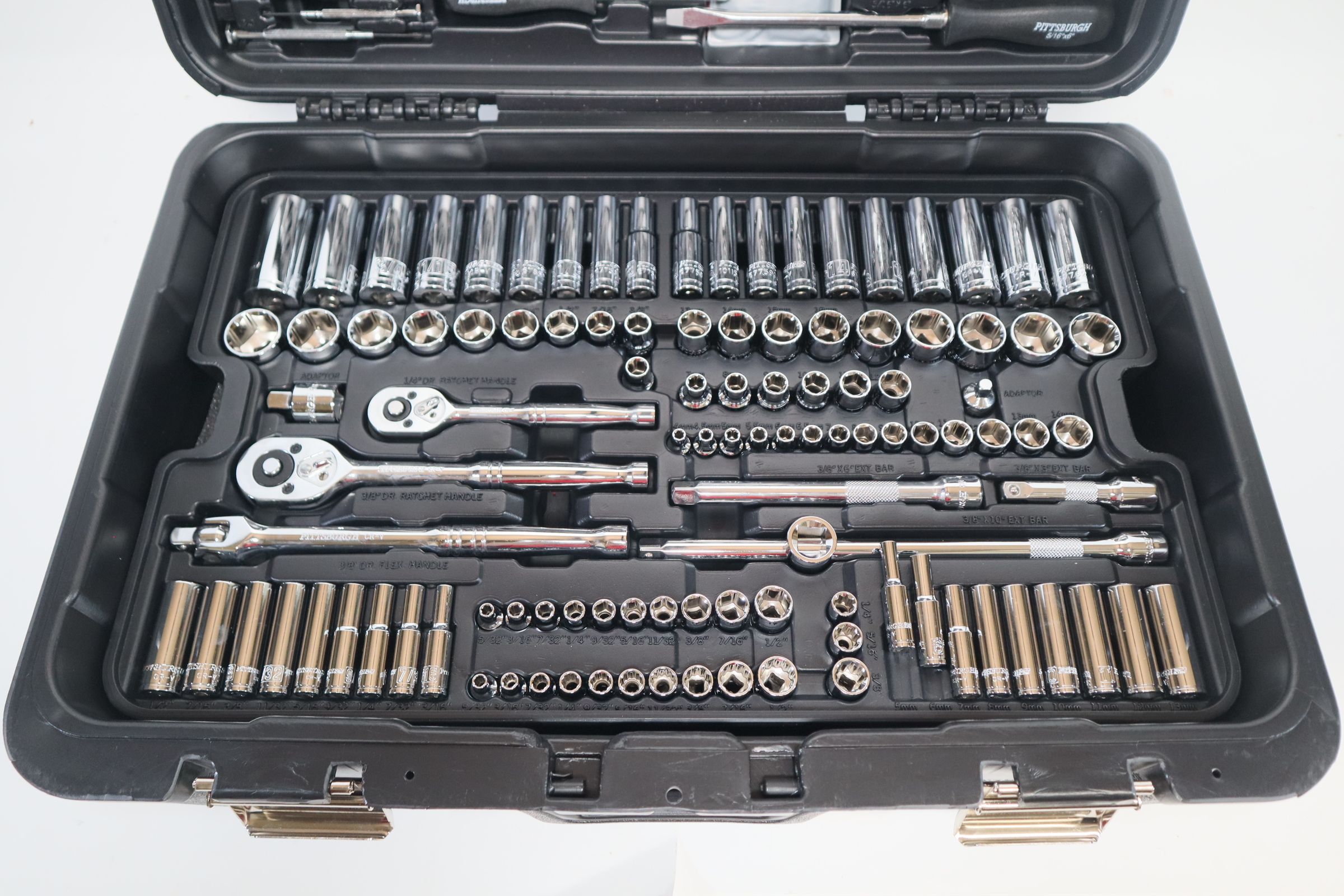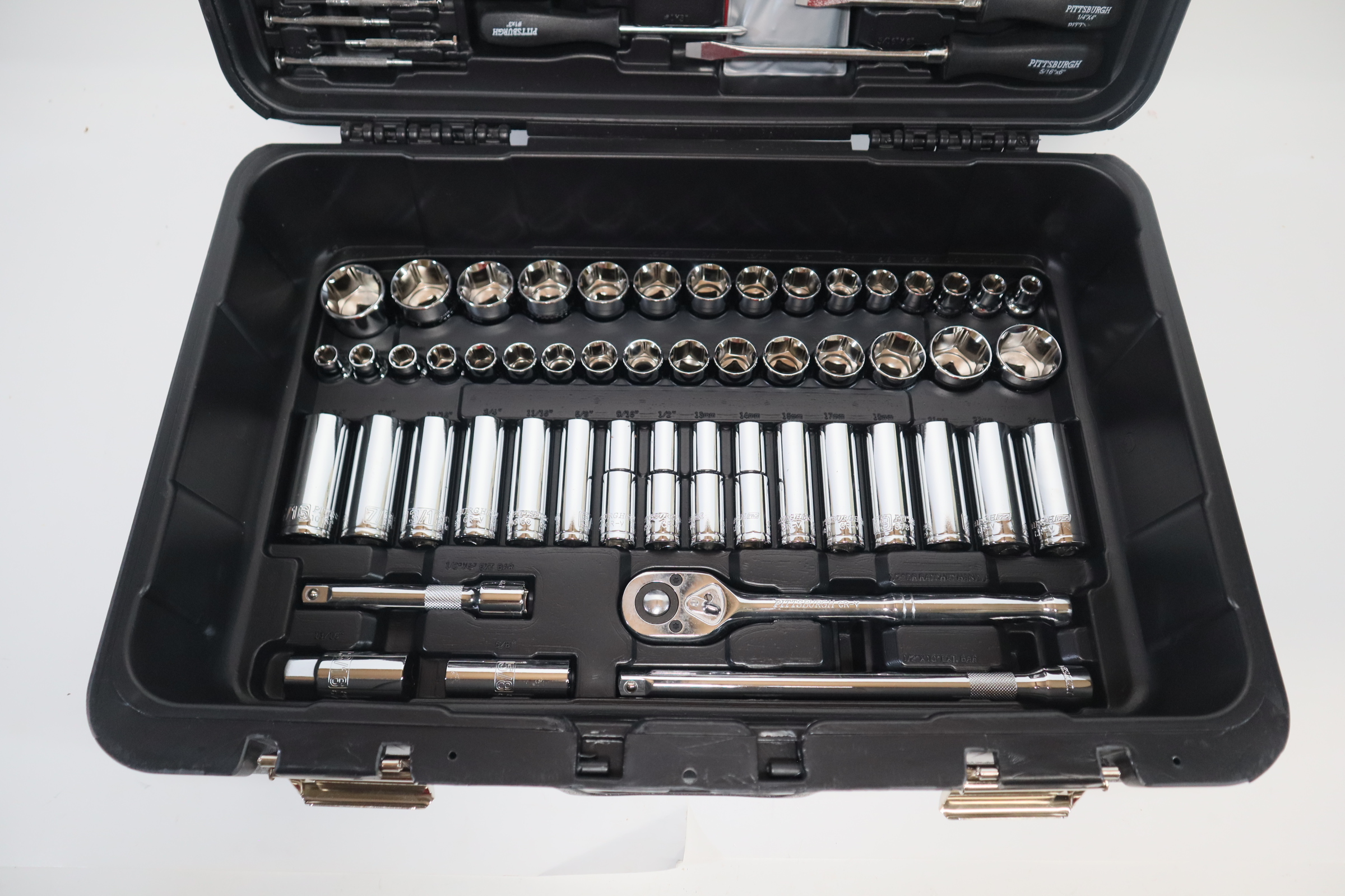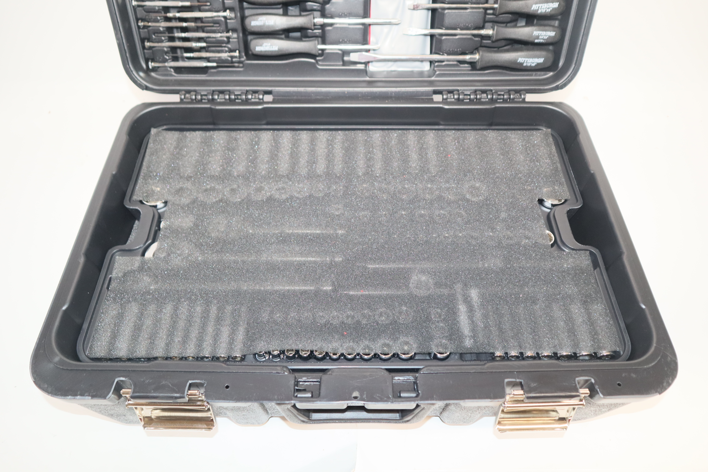 This 301 Piece Mechanics Tool Set includes the most-used automotive and mechanic's tools, such as adjustable wrenches, pliers, and sockets in SAE and metric measurements. Constructed of durable chrome vanadium, this mechanic's tool set is built to last. Includes a custom storage case to keep tools organized and protected.