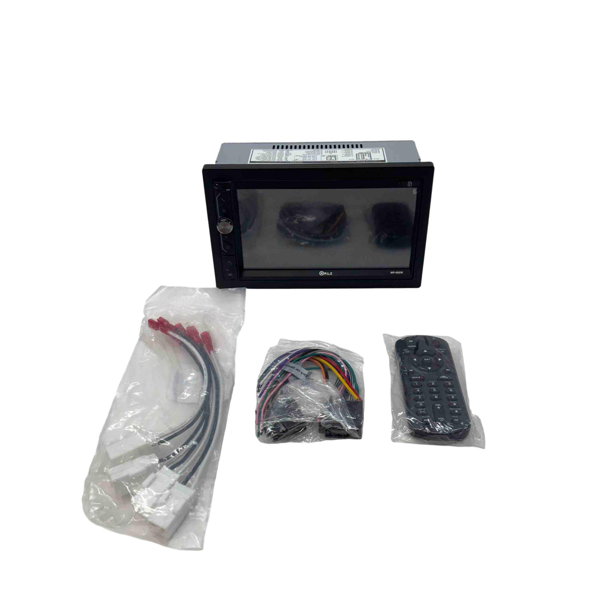 Upgrade your drive with the P.L.Z MP-902W double din car stereo system featuring a sleek touchscreen display and intuitive controls. This versatile multimedia receiver supports Bluetooth connectivity, hands-free calling, and seamless audio streaming, making every journey enjoyable. Complete with a wiring harness, connectors, and remote control, its the perfect solution for modernizing your vehicles entertainment system.