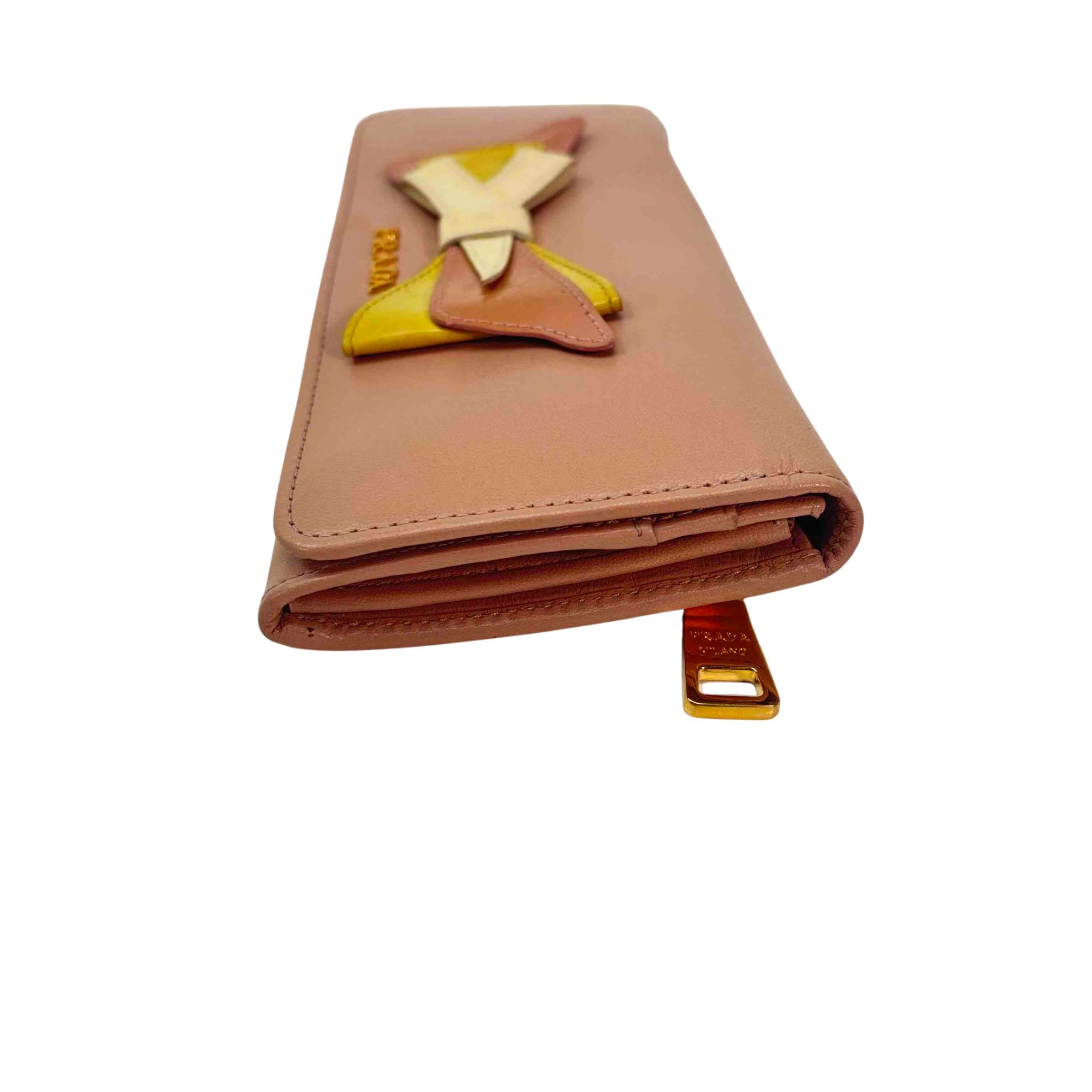 Elevate your style with this stunning Pink Prada Bow Wallet, a true statement piece that combines luxury and elegance. Crafted from premium leather, this fashion accessory features a chic multicolor bow, adding a playful touch to its sophisticated design. Perfect for securing your essentials with grace, this wallet is a must-have addition to any fashion-forward collection.