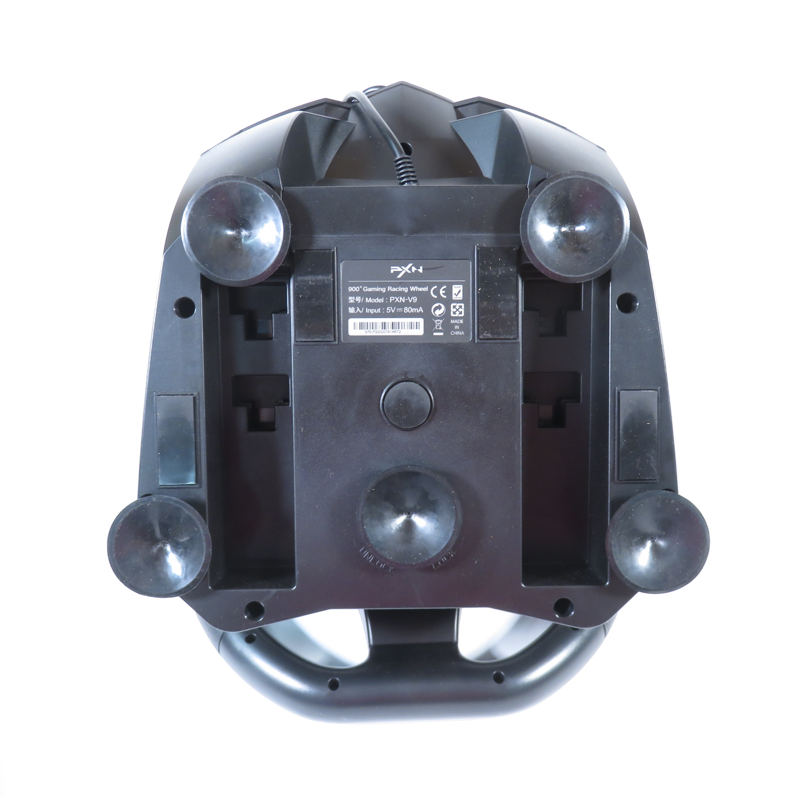 Steering wheel with USB connection port, is compatible with Xbox One / Xbox Series X&S/PC / PS3/ PS4 /P5 Nintendo Switch platform, and compatible with Windows 7/8/10 operating system (Please download the application: PXN Play or V9 Tool to test the function and mapping buttons). PXN-V9 game steering wheel can provide PC platform with European truck simulation, truck life, Maxthon China, Shenli Corsa and other games; Xbox can be adapted to Horizon 4, Dust 2.0, Forza Motorsport series, Racing Project 2 and other games; PS platform includes Need for Speed 20, F1 2019, Super Touring Car, Driving Club, etc.; Switch includes Asphalt, Sonic Racing, Mario Kart and other games. The racing wheel is made of non-slip ABS matte non-slip material, with real dual vibration motors, with 7 powerful suction cups and C-shaped fixing frame, which can maintain a more comfortable and long-lasting gaming experience. It is convenient for players to use PXN V9 racing wheels. We have prepared the "V9 Assistant" APP. Players can search for "V9 Assistant" in the Apple App Store to download and install. Racing wheel provides 270/900° rotation switching function, toggle the button under the steering wheel to switch. The handbrake shift lever of the steering wheel is designed for professional racing games, 6-in-one manual gearshift lever allows players to experience the sense of presence brought by manual braking and shifting, and supports forward and R reverse gears; handbrake and high-low performance modes adopt button design to reduce false contacts.