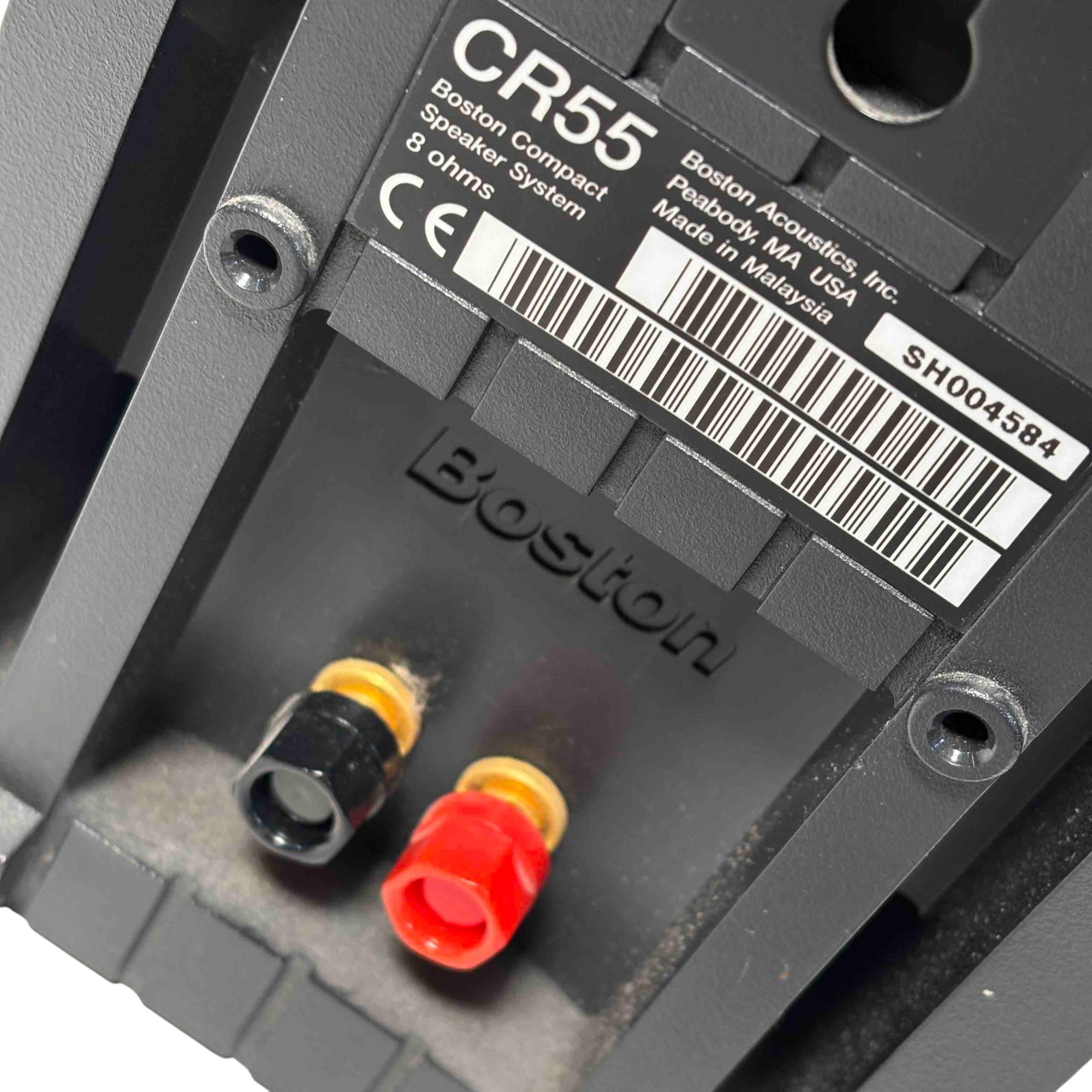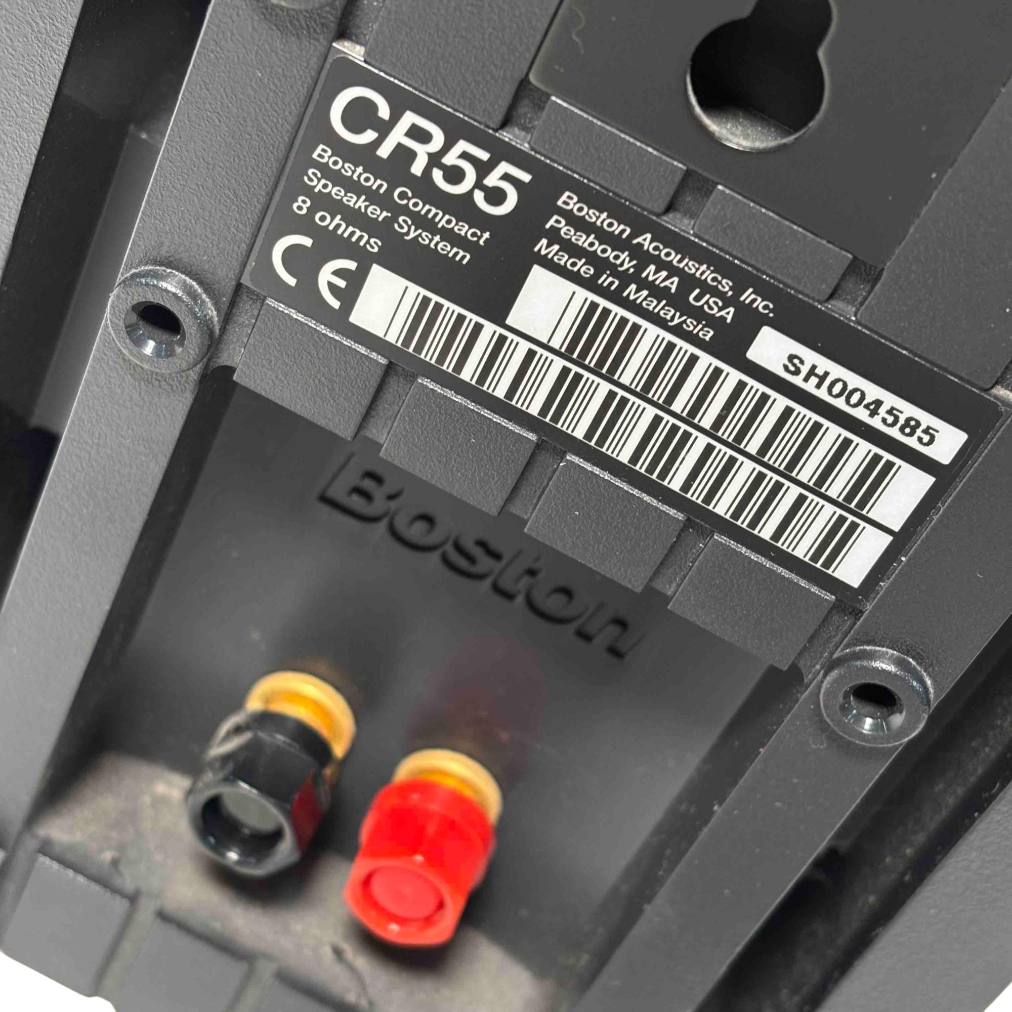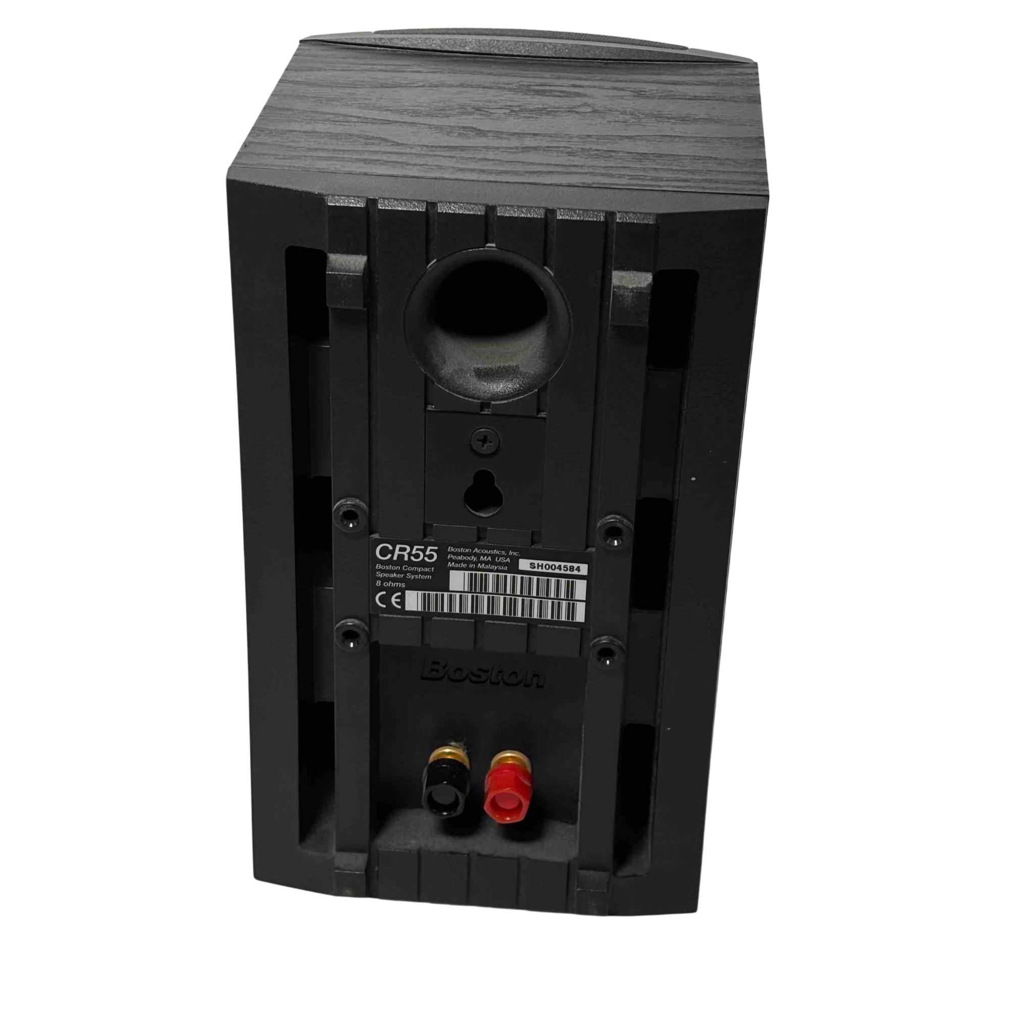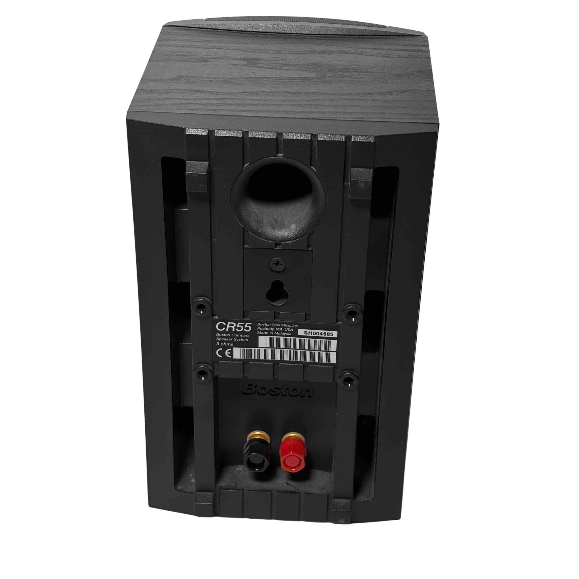 Experience superior sound quality with the Boston Acoustics CR55 Compact Speaker System. Designed for audiophiles, this sleek black speaker system delivers an immersive audio experience with its powerful 8-ohm output, making it perfect for your home entertainment needs. Its compact design combines elegance with acoustic excellence, ideal for any setting.