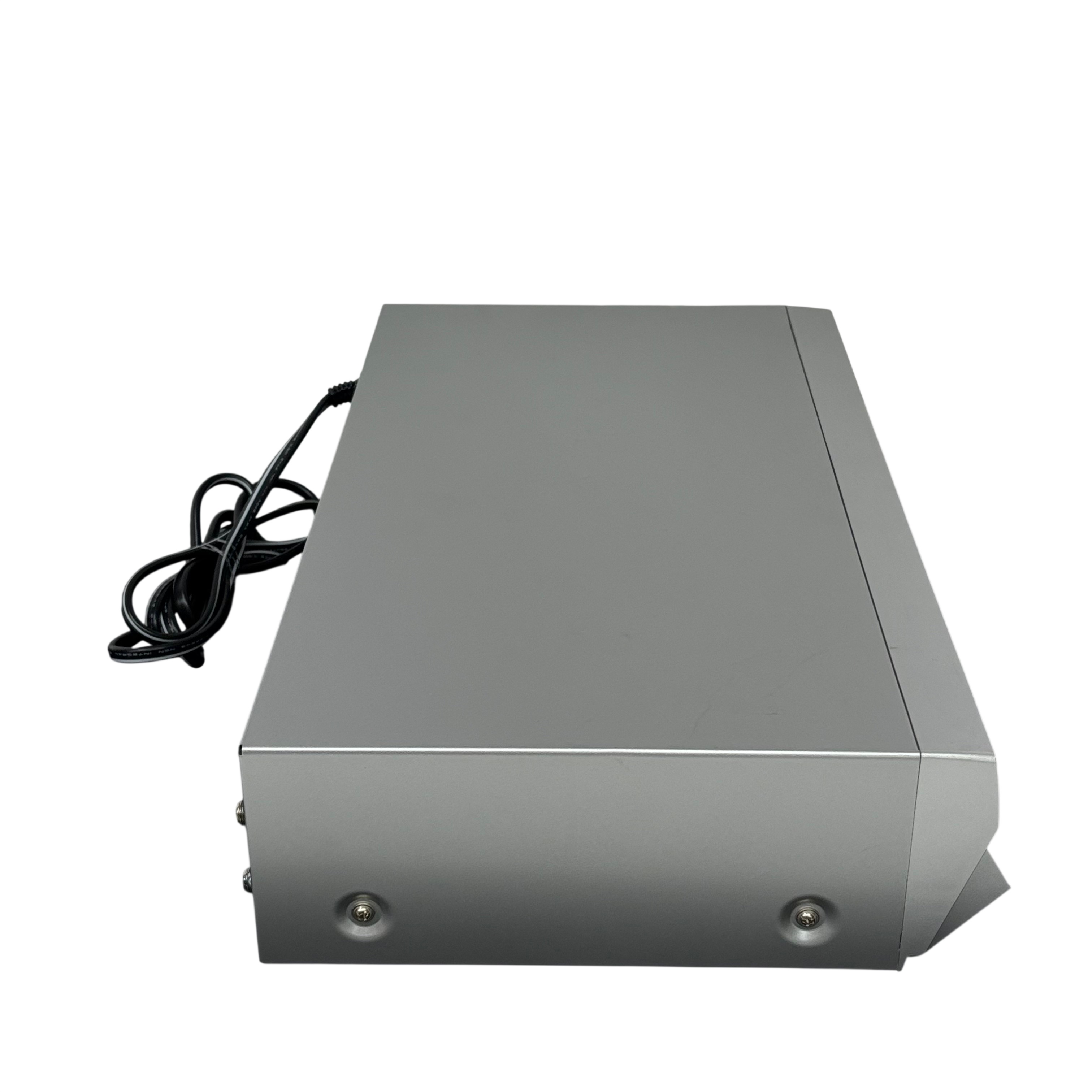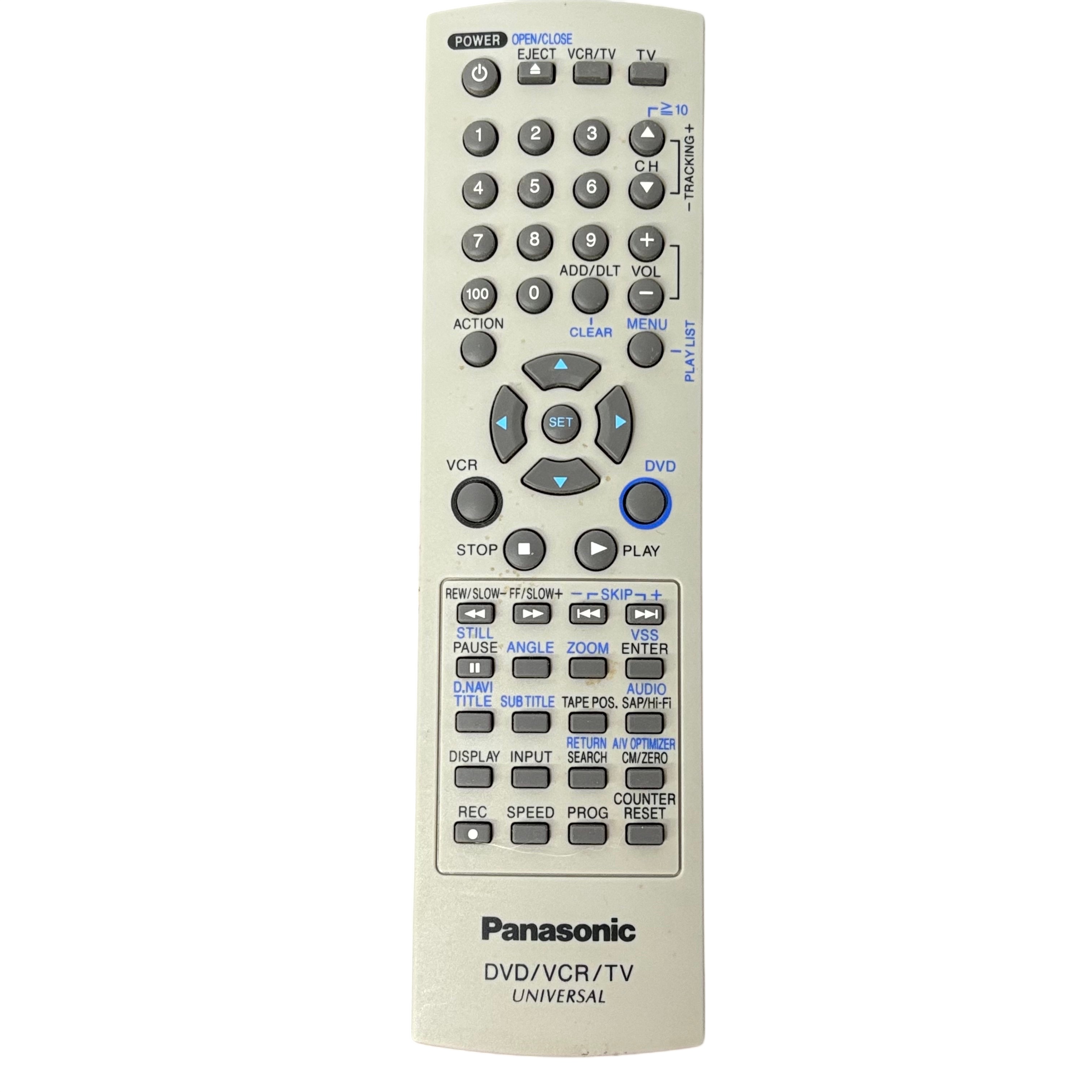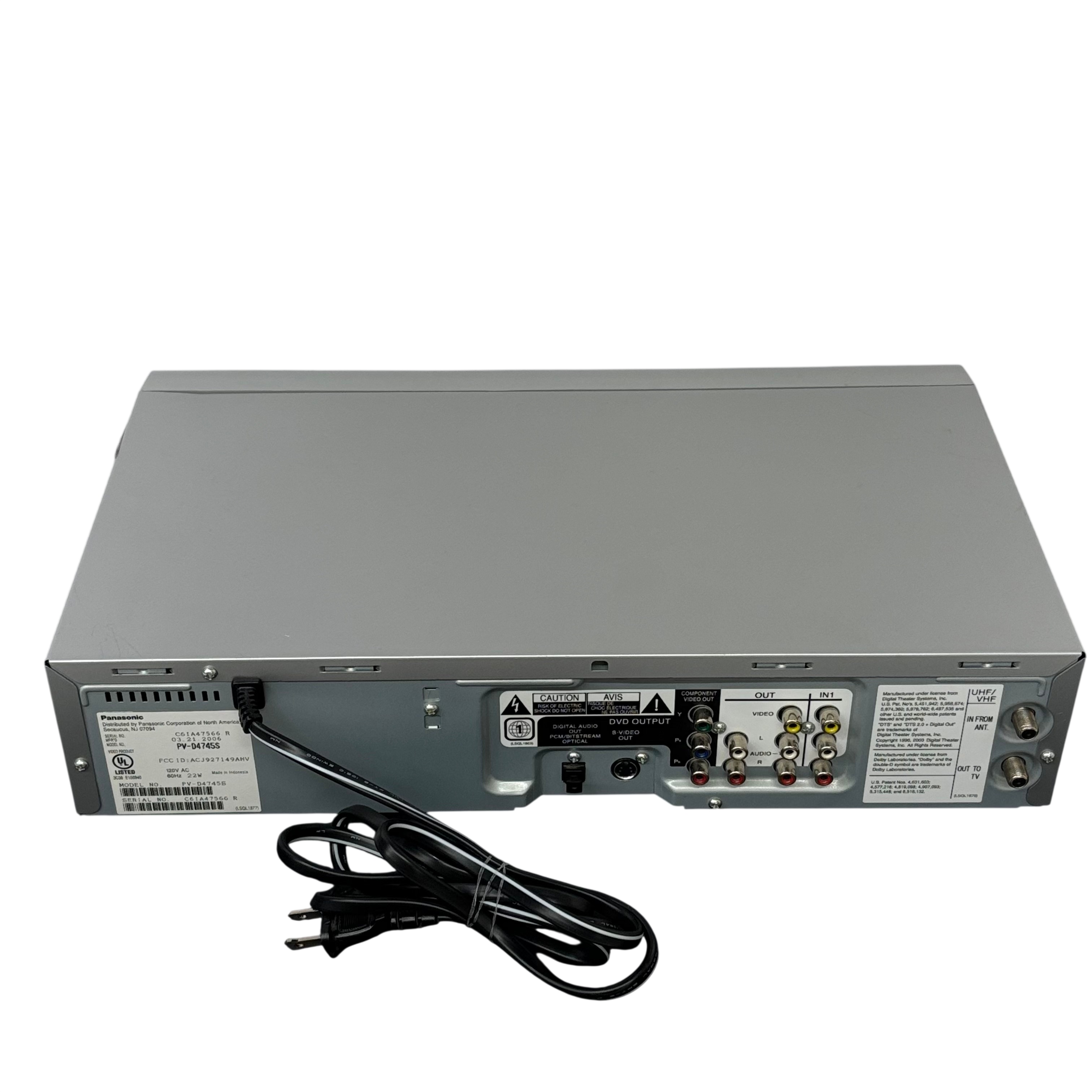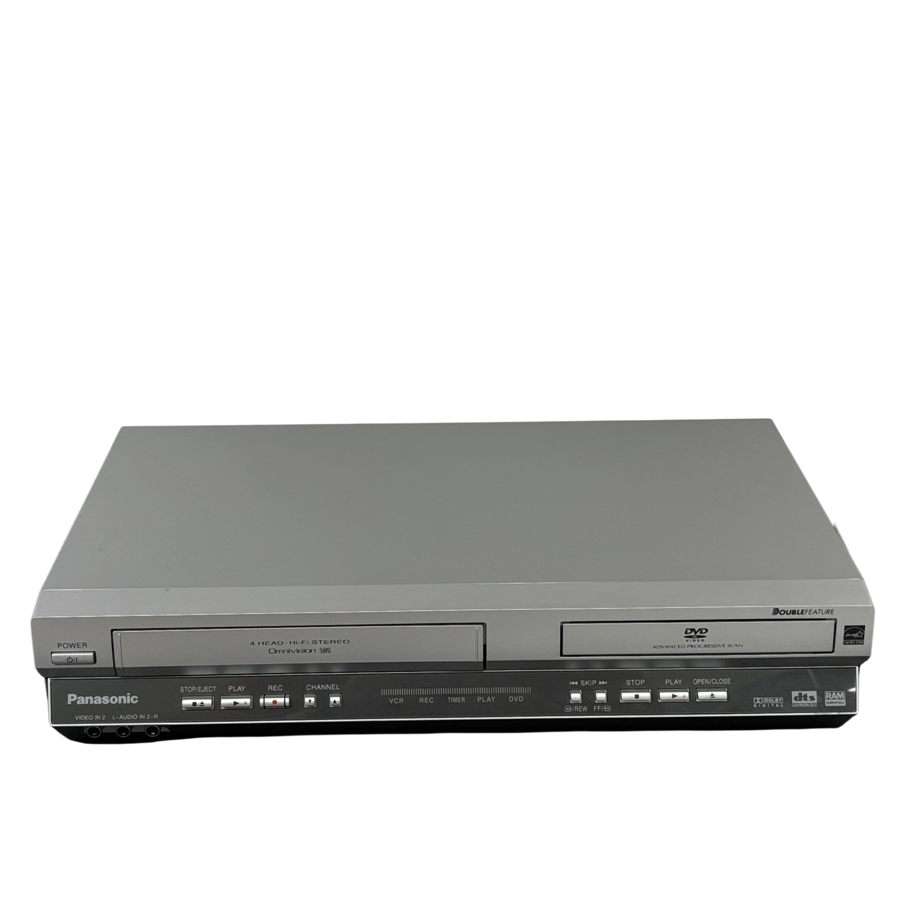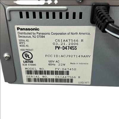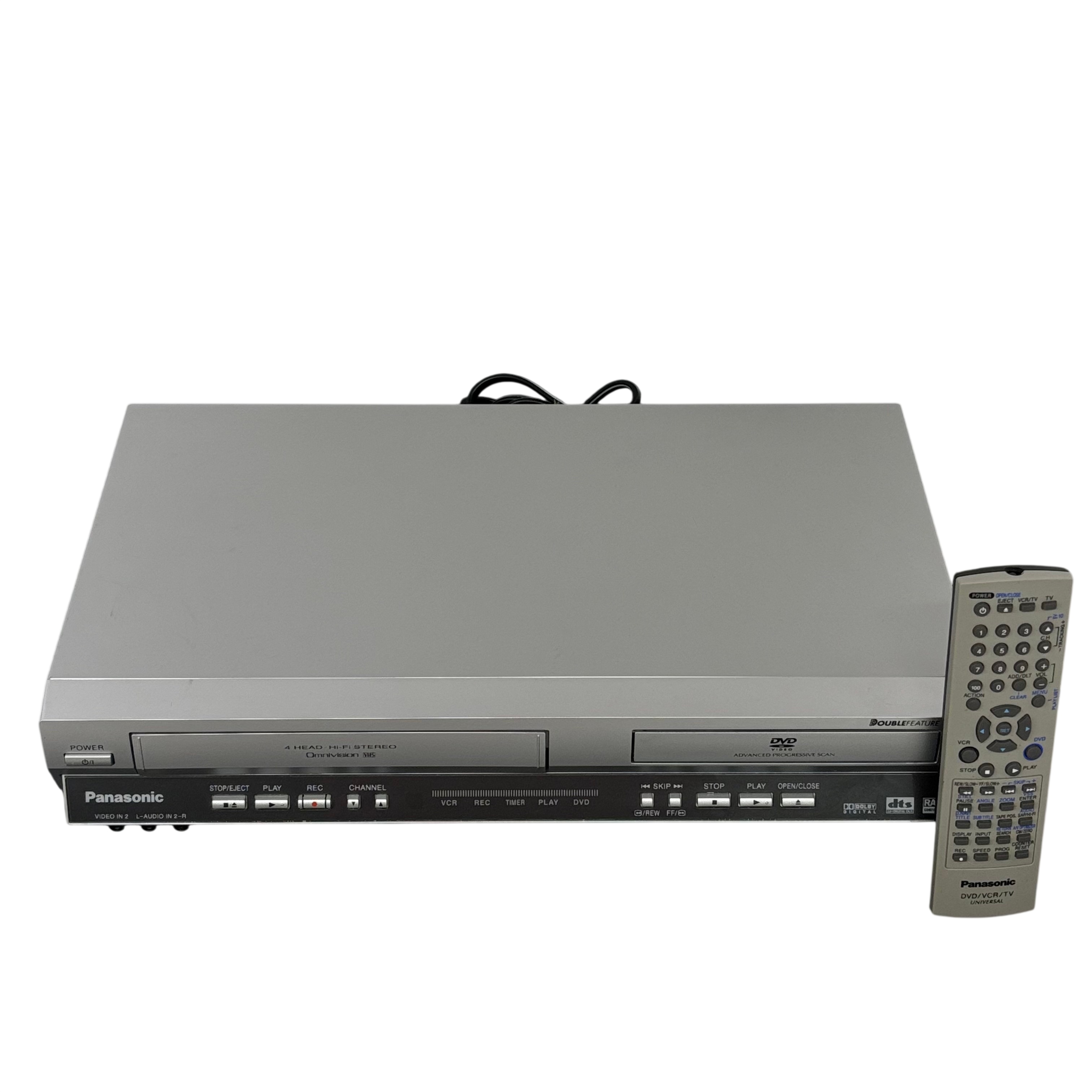 The Panasonic PVD4745S DVD Player offers a versatile entertainment solution with its DVD and VCR combo functionality. This model includes a convenient remote control, making it easy to navigate your favorite media. Its sleek silver design complements any home theater setup, providing both style and functionality. Ideal for those who enjoy a mix of modern and classic media formats.