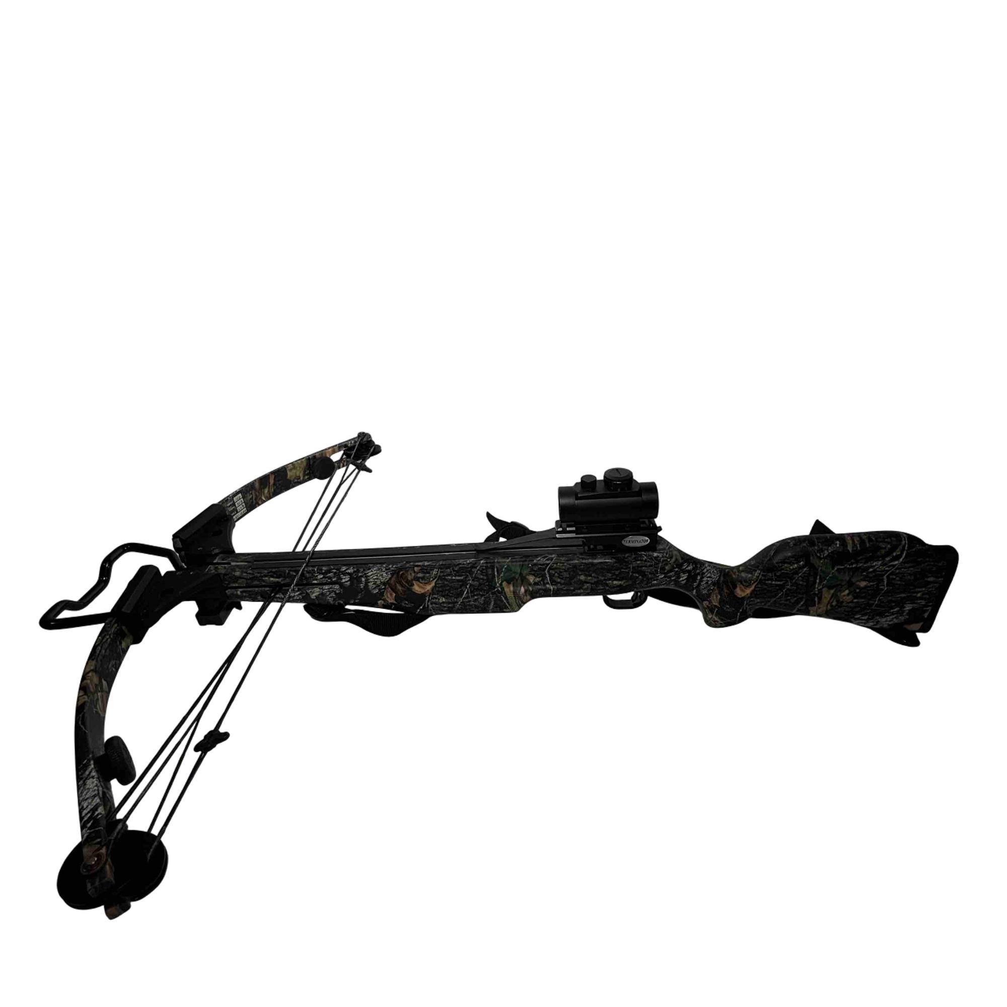 Unleash your inner archer with the Parker TERMINATOR Crossbow, featuring an advanced camo design perfect for stealth in the wild. Equipped with a scope and a sturdy strap, this crossbow combines precision and power to elevate your hunting or target shooting experience. Lightweight yet robust, the TERMINATOR promises exceptional performance, making it an essential companion for any outdoor adventure.