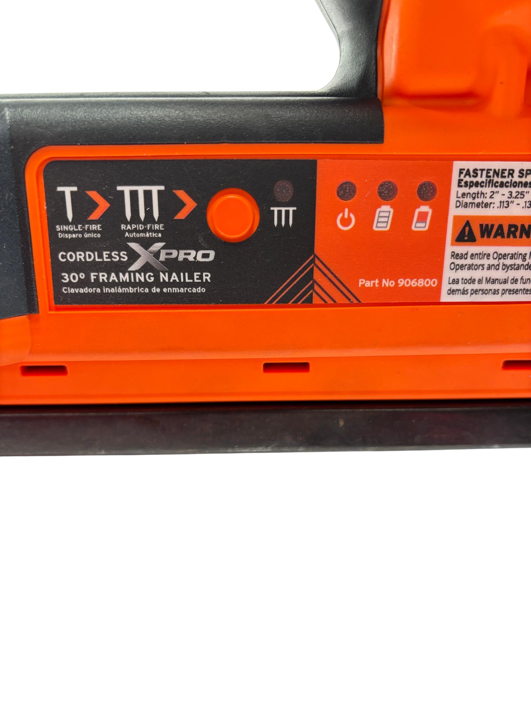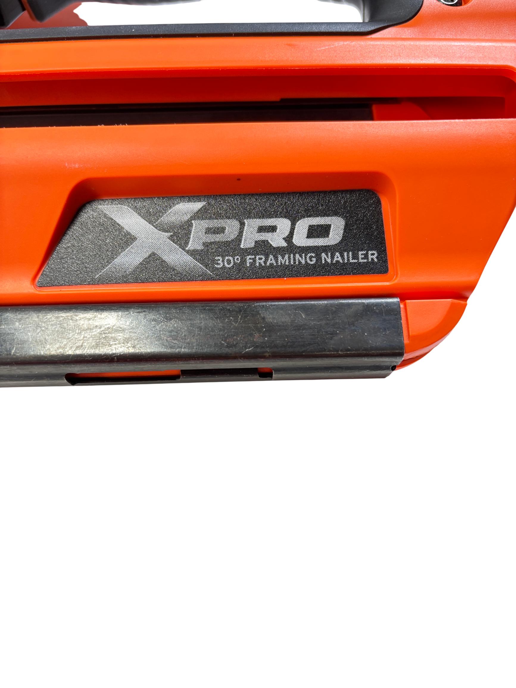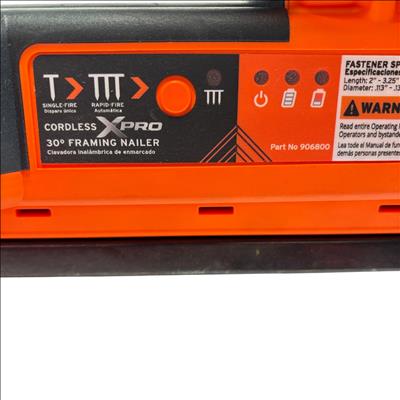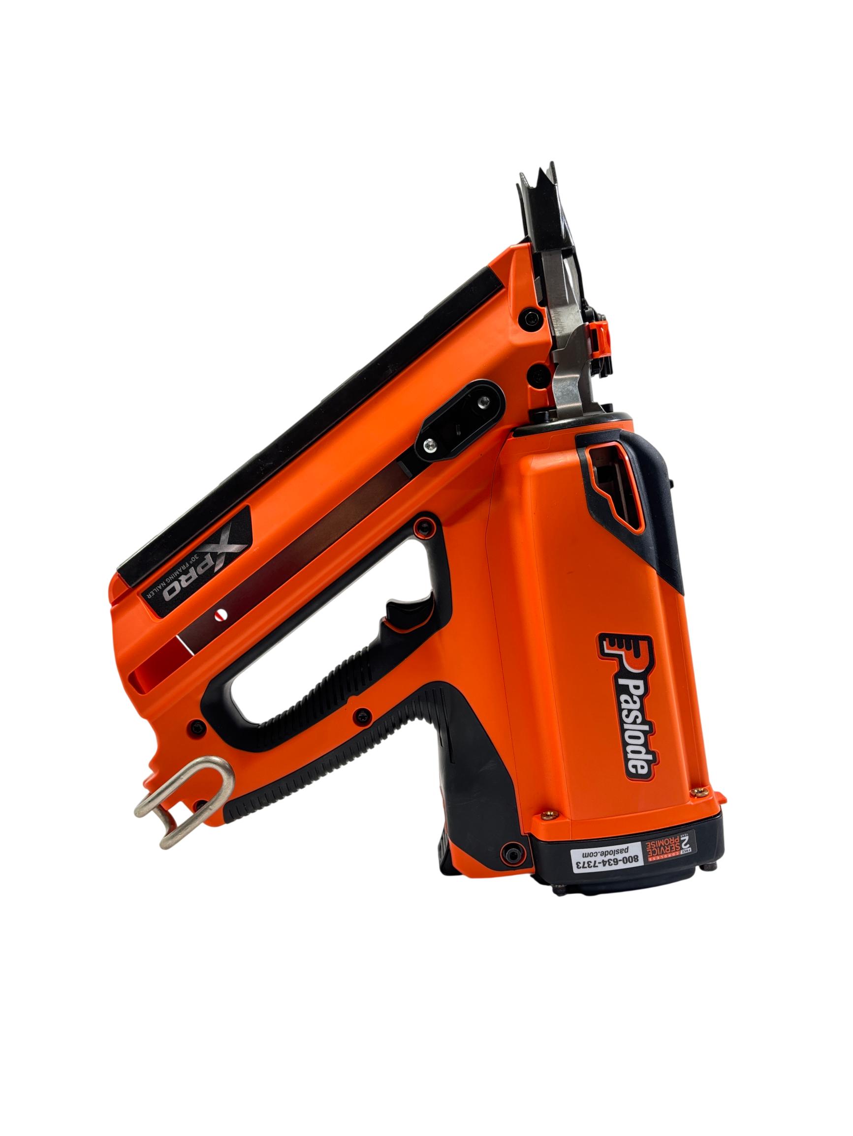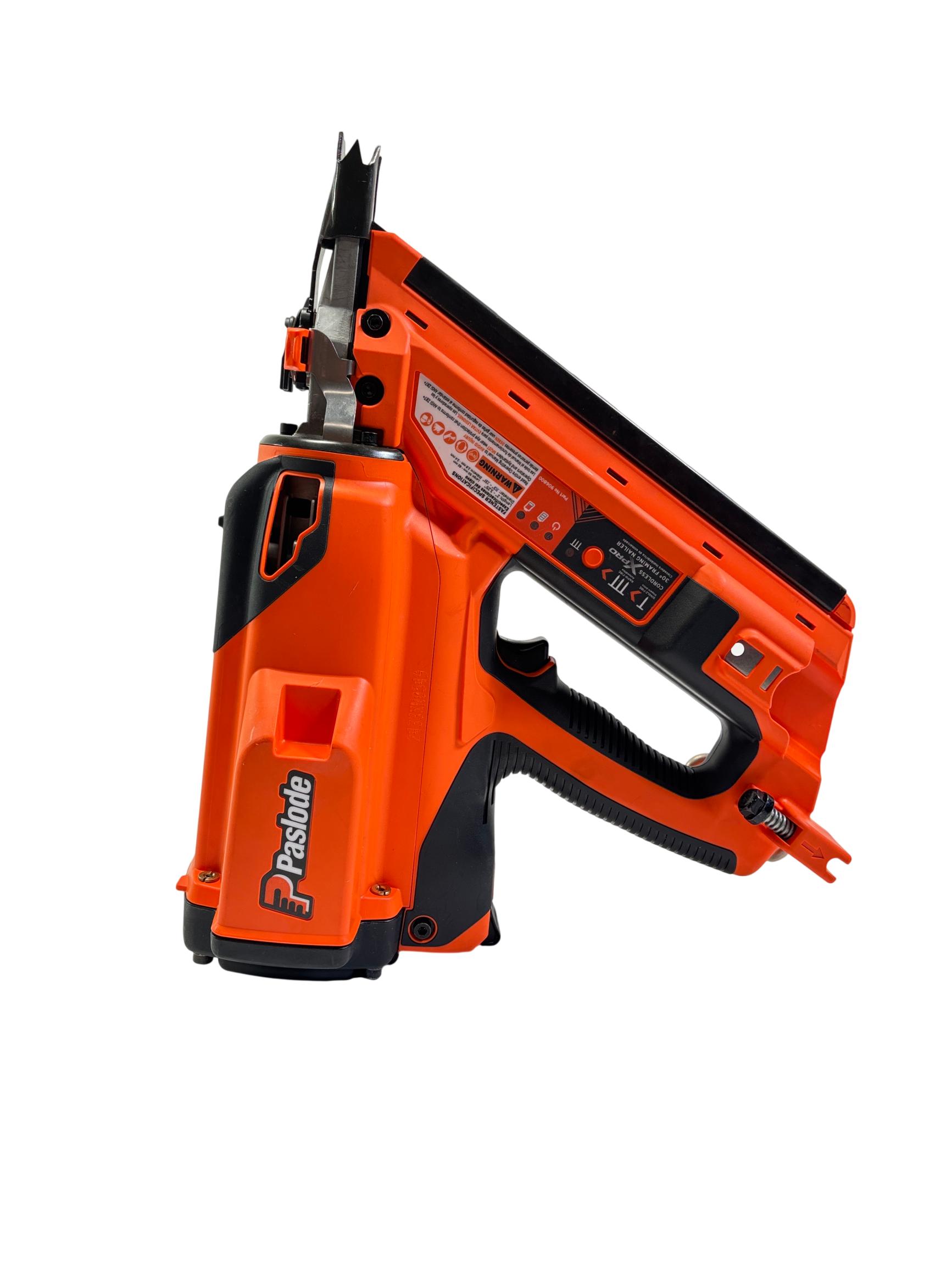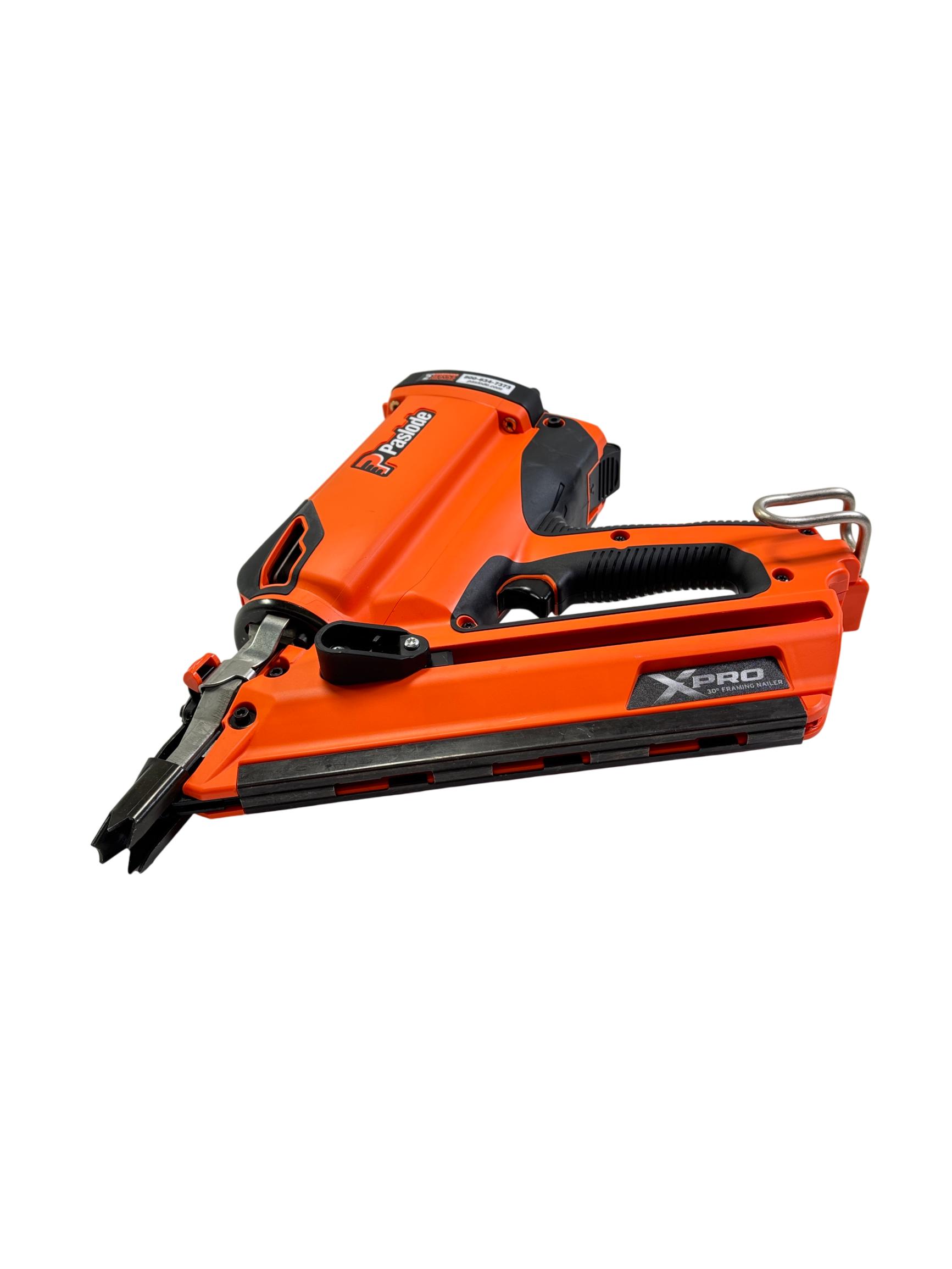 Paslode XPRO 3-1/4-in 30-Degree Cordless Framing Nailer is a powerful and efficient tool designed for framing applications. Featuring a compact orange and black design, this cordless nailer operates at 40 volts for seamless mobility and optimal performance on construction sites. Built specifically for use with Paslode nails, it ensures precise and reliable fastening during heavy-duty carpentry tasks.