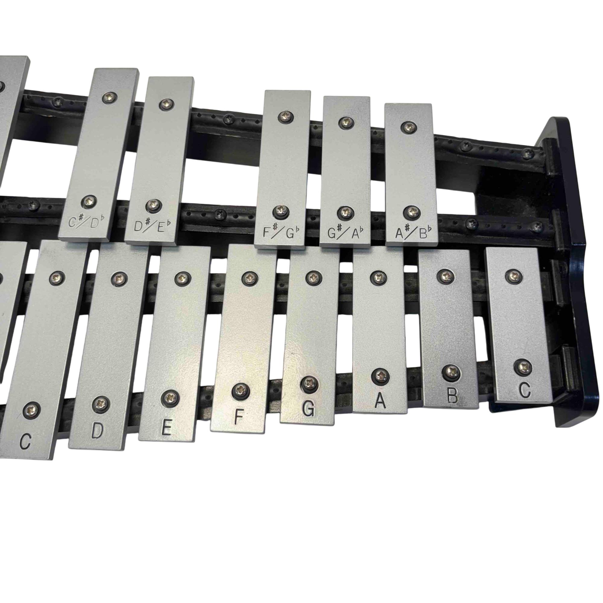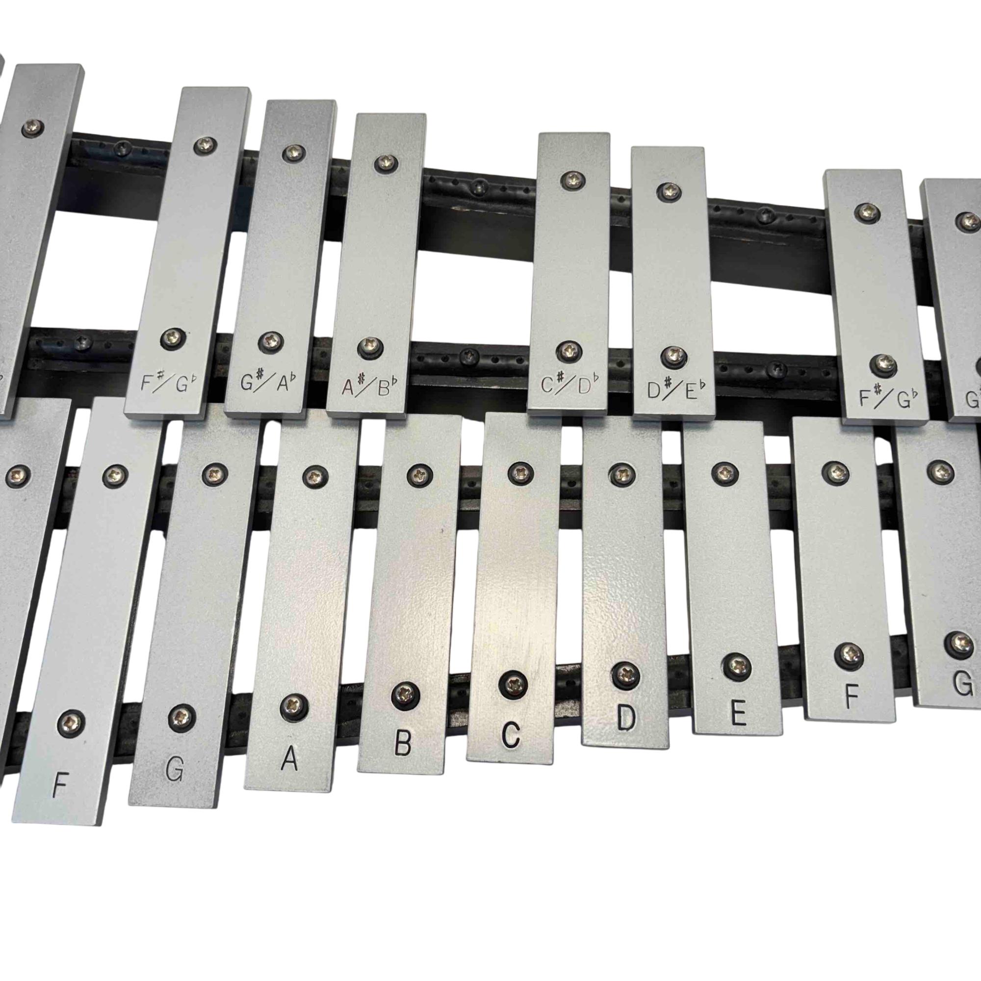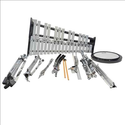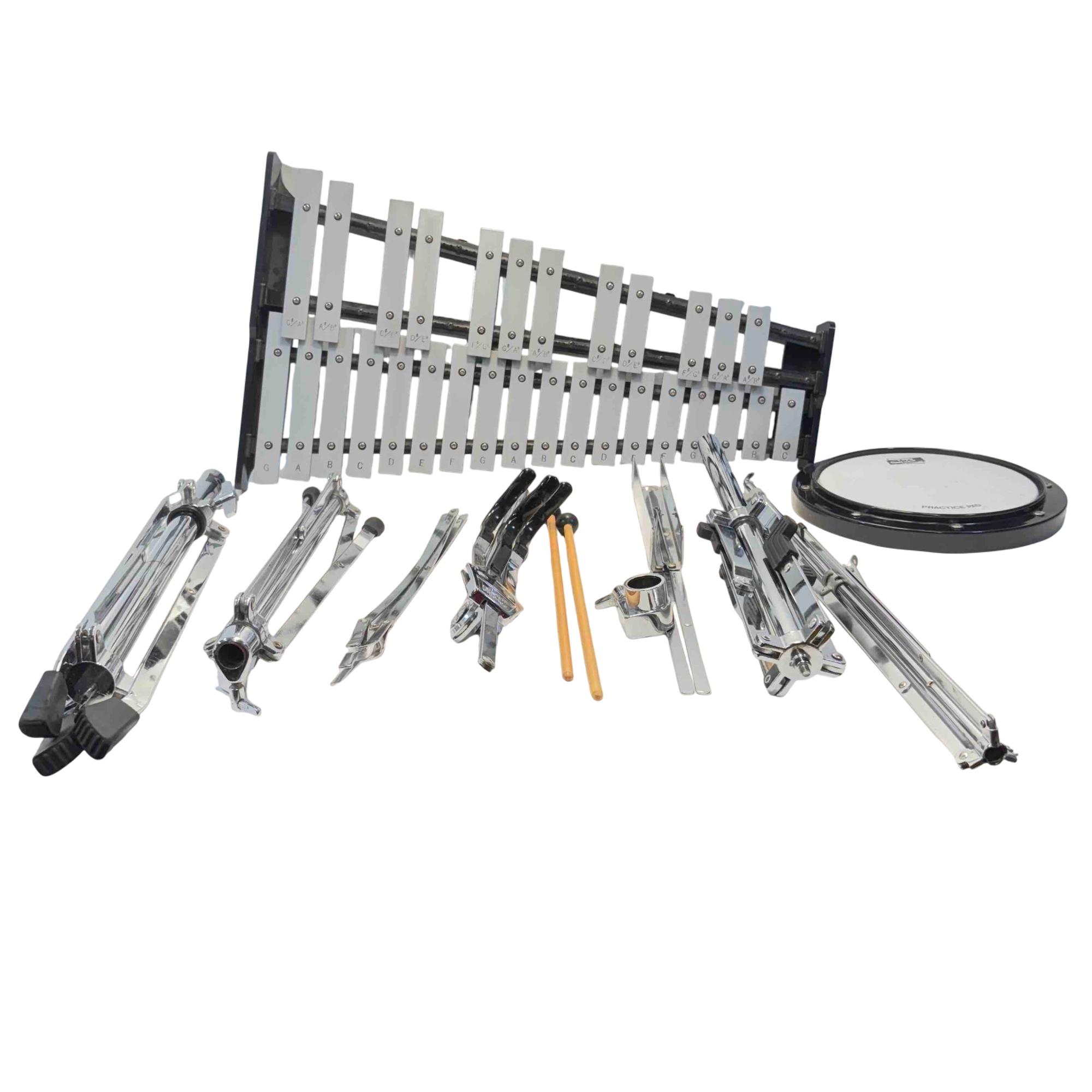 The Pearl PL910C Educational Xylophone Kit features a professional percussion setup including a metal xylophone (glockenspiel) with numerous metal bars, a practice pad, and mallets. Designed for educational use, this durable kit offers a complete playing experience ideal for beginners and students learning pitched percussion instruments.