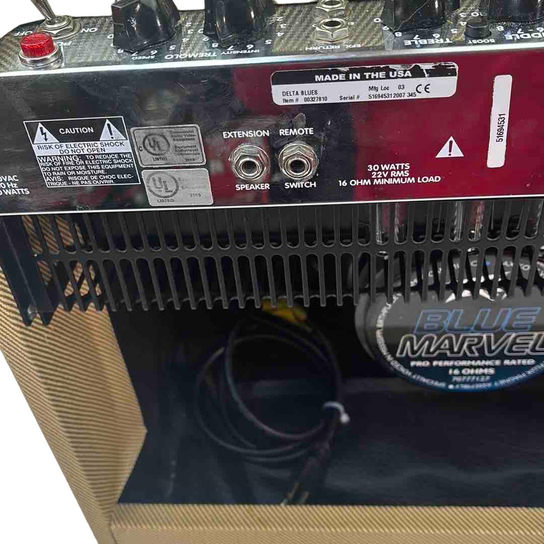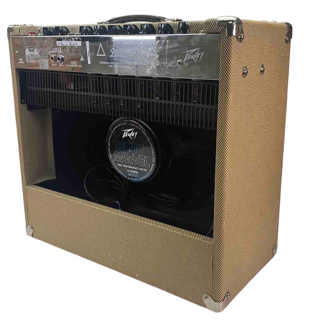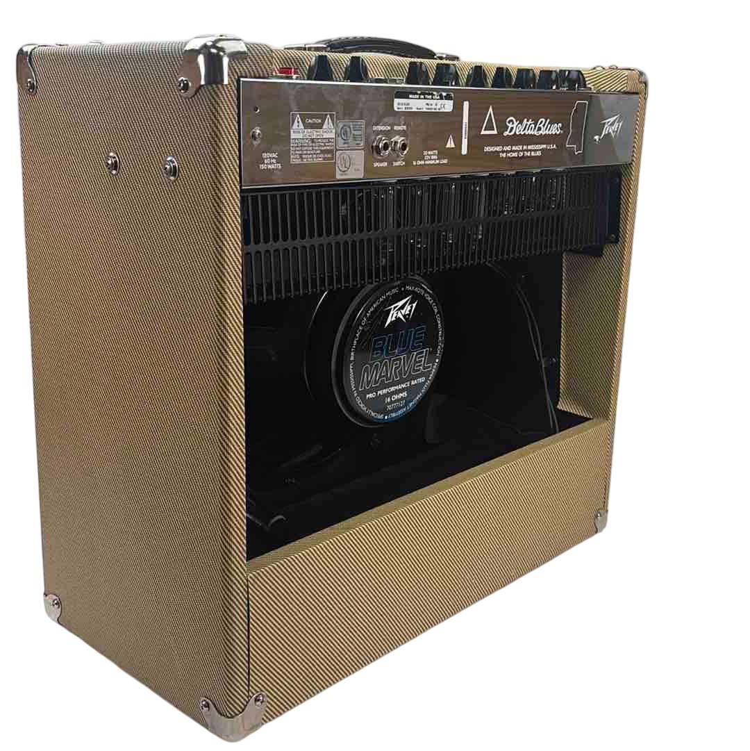 Experience the rich, authentic tones of the classic Peavey Delta Blues 115 Tube Combo Guitar Amplifier. Featuring the renowned Blue Marvel Speaker and a footswitch, this amp delivers powerful sound with a vintage feel. Perfect for blues enthusiasts and guitarists looking for a versatile and reliable performance tool.
