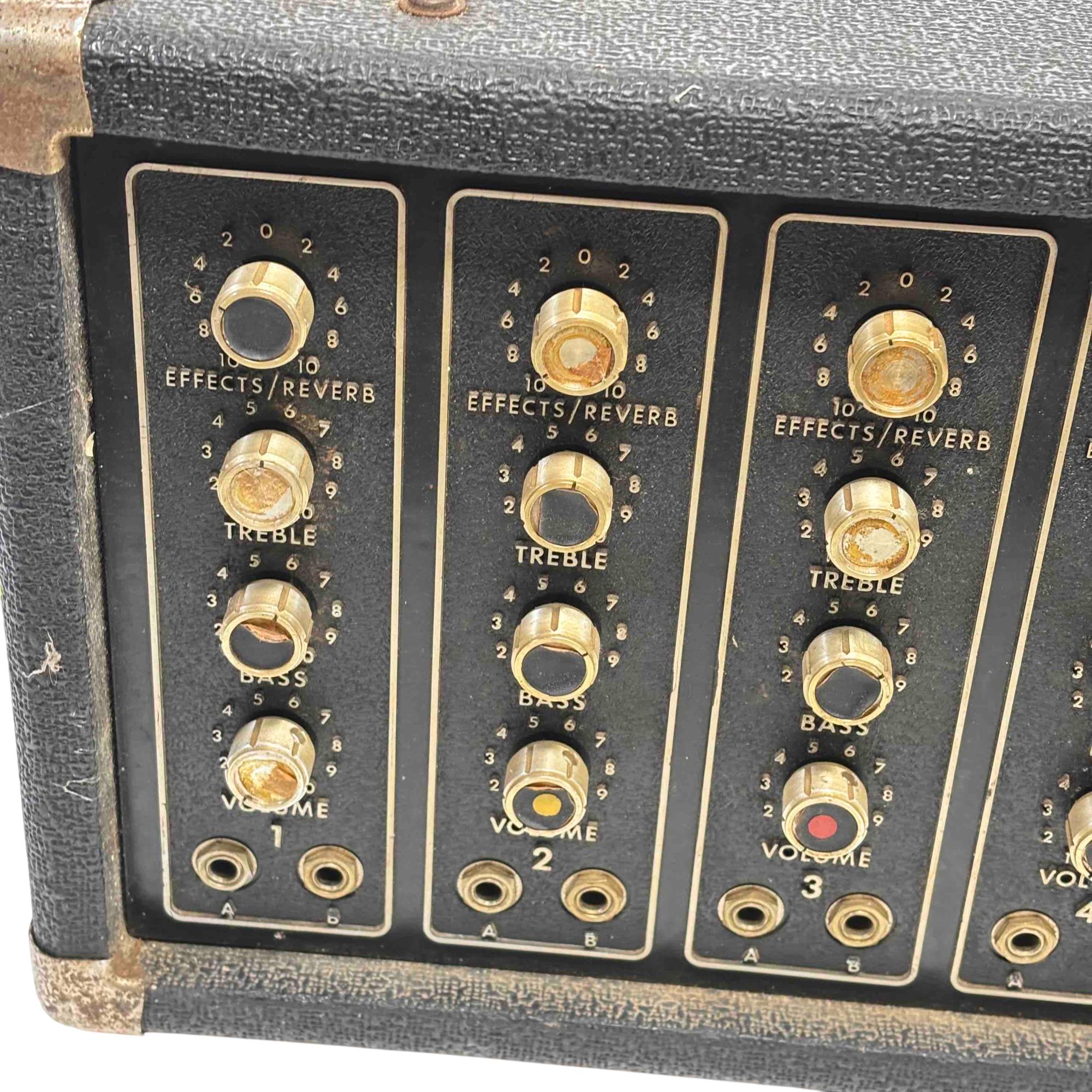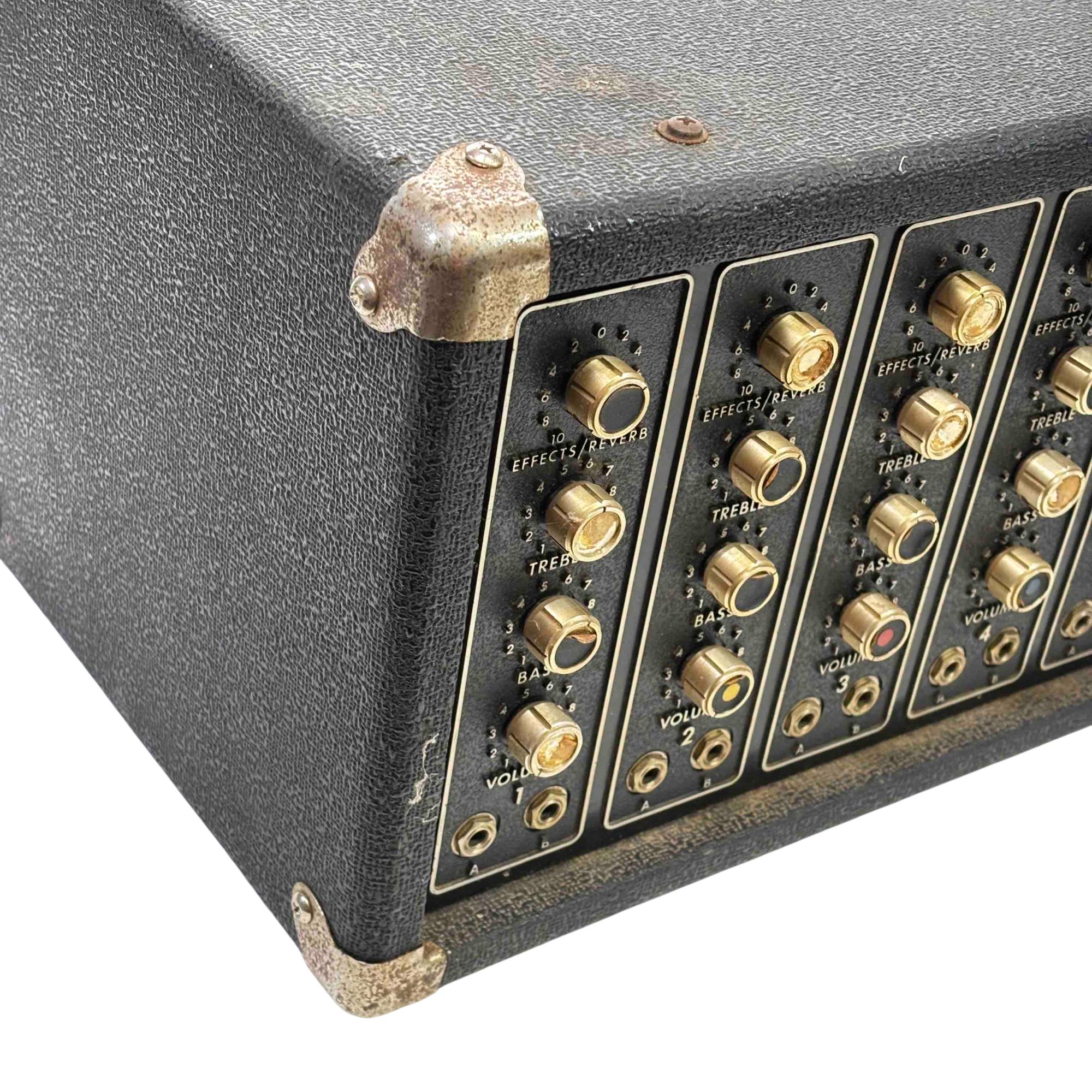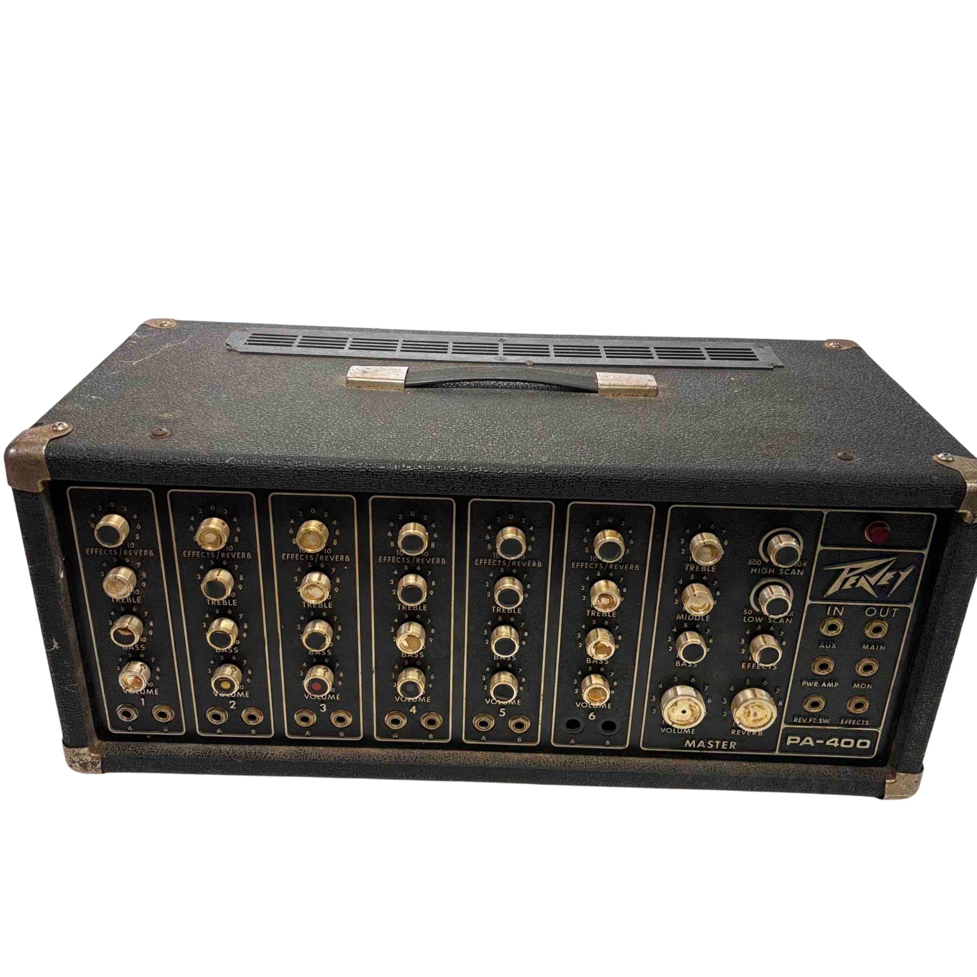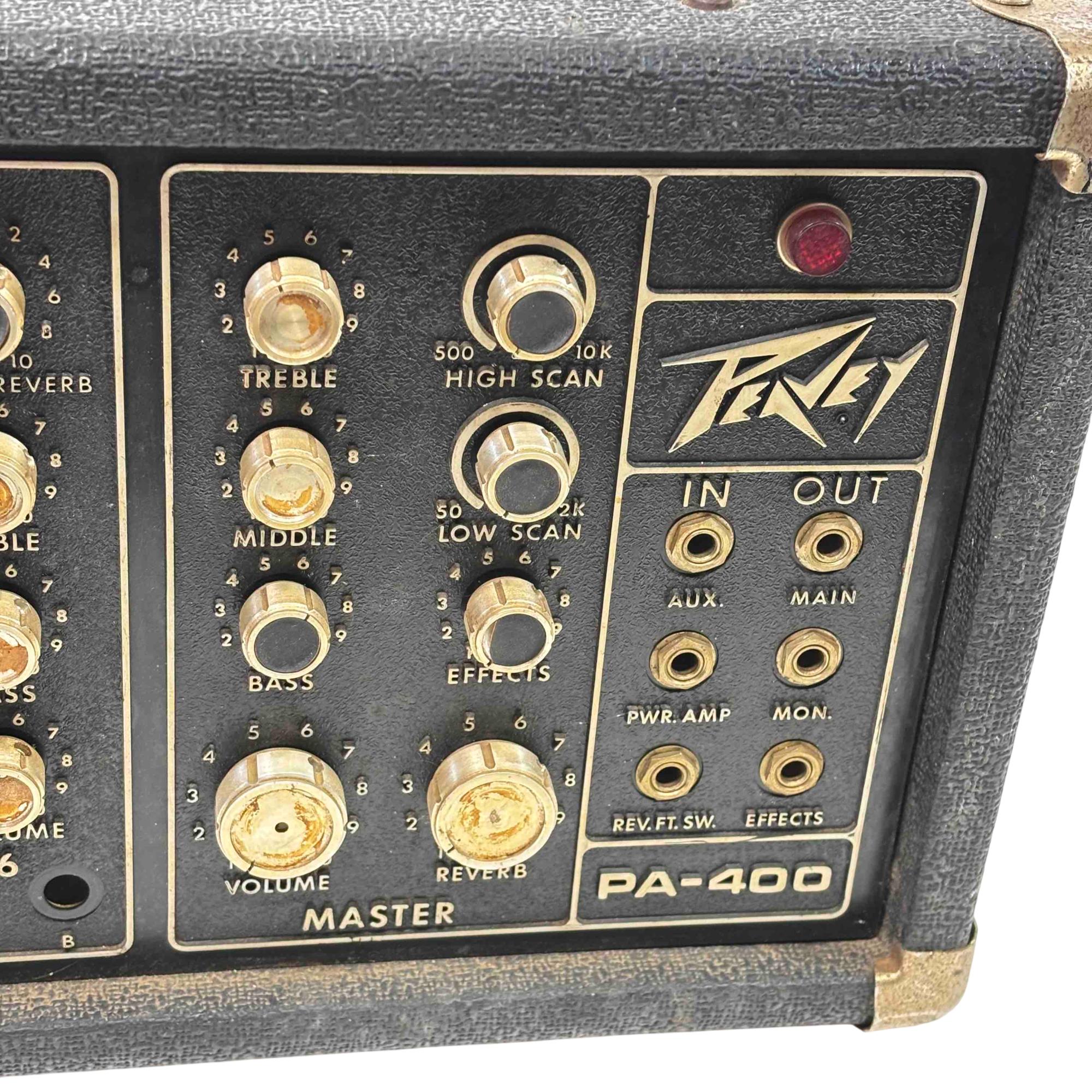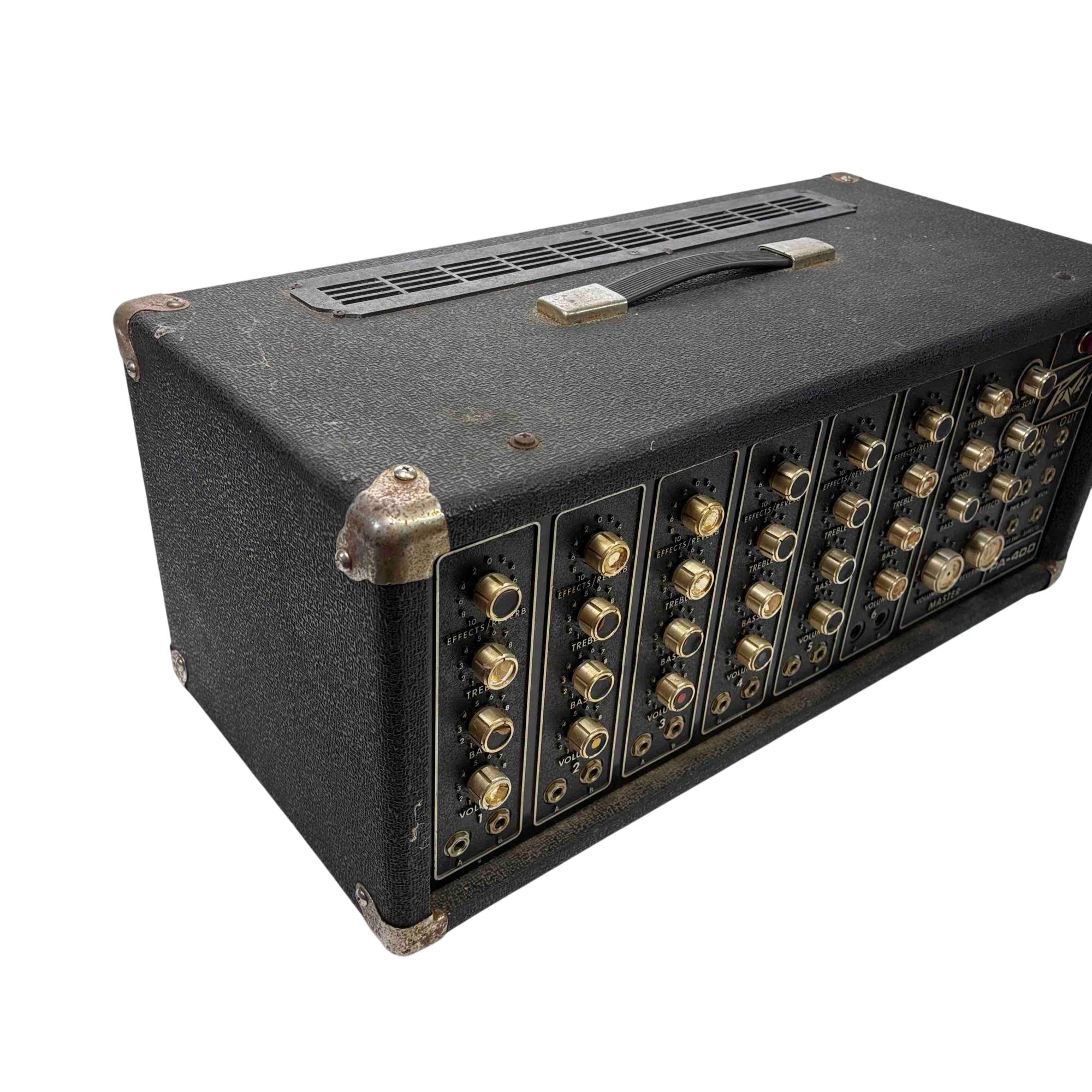 Unleash the power of sound with the Peavey PA-400 Stereo Amplifier. This sleek, black and gold amplifier features intuitive controls for reverb, treble, and bass, offering a customizable sound experience to suit any musical style. Perfect for both vintage enthusiasts and modern musicians, this device guarantees high-quality performance and legendary Peavey durability.
