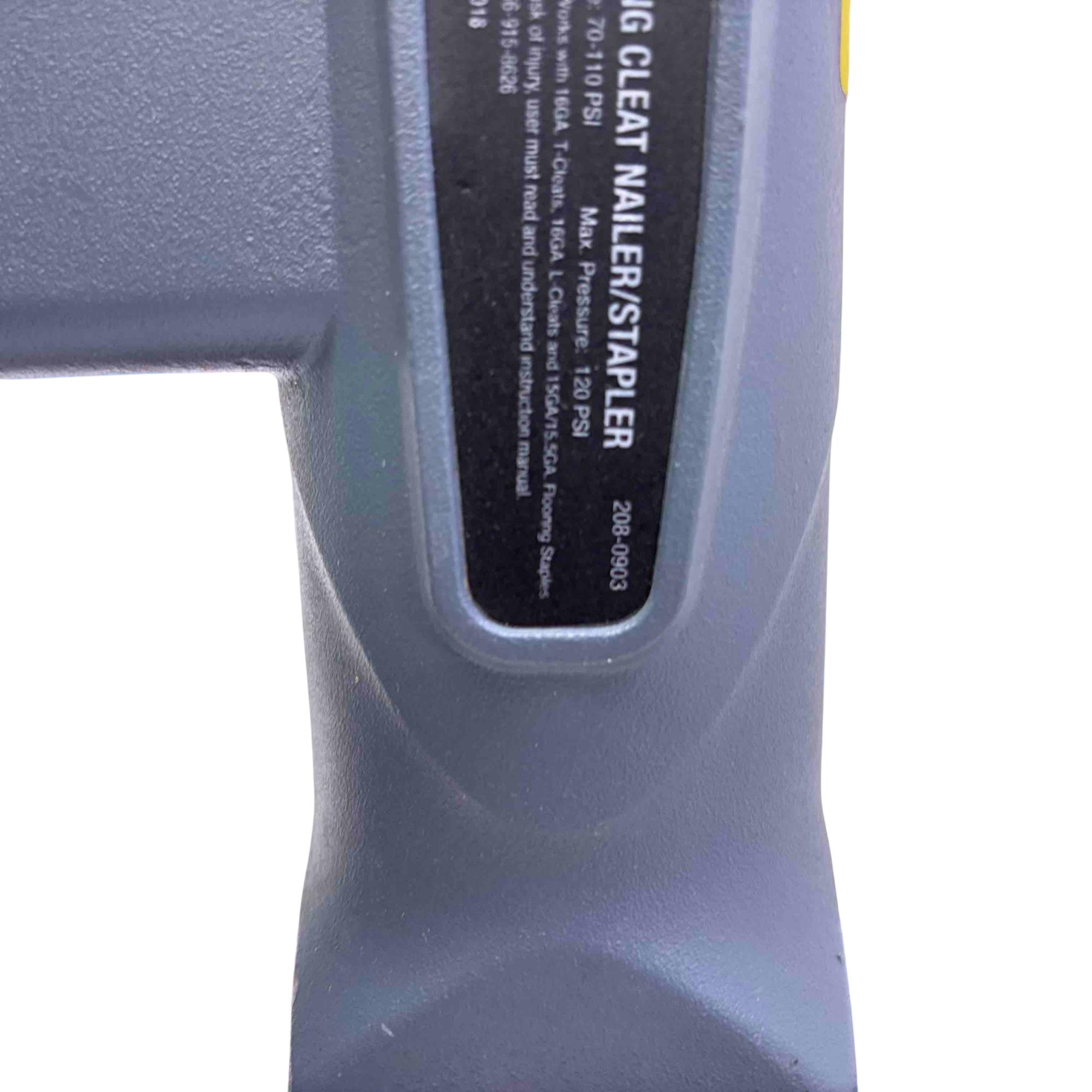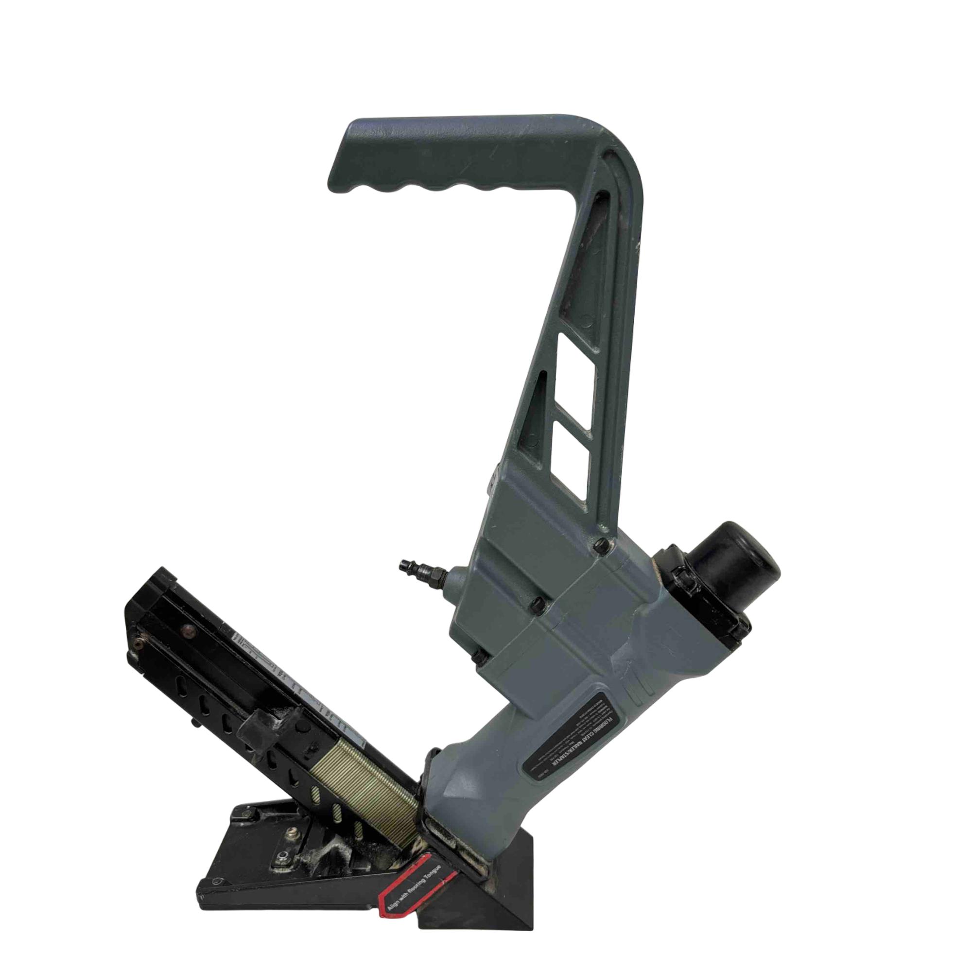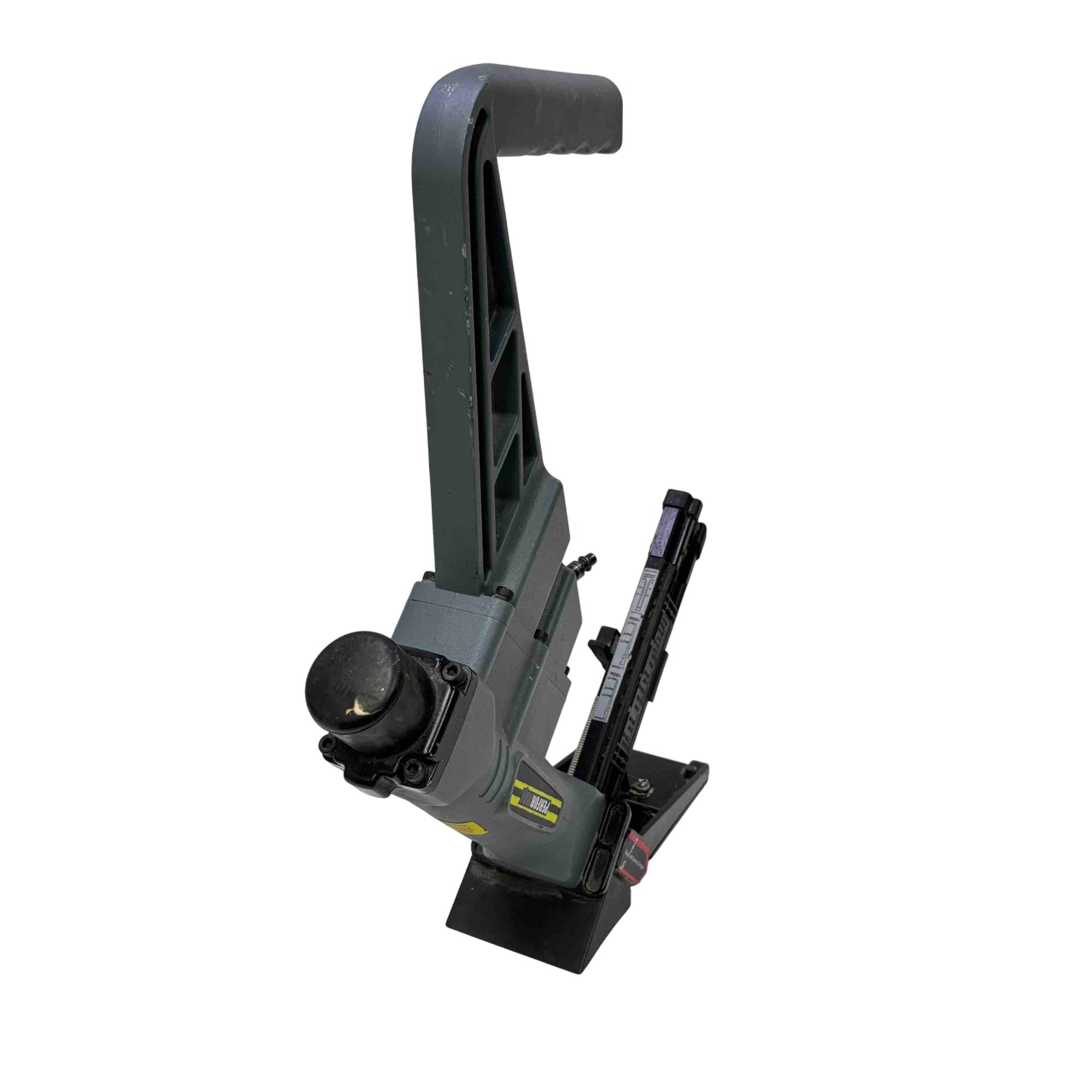 The Performax 2080903 Pneumatic Flooring Nailer is a professional-grade tool designed for efficiently installing hardwood flooring. Featuring a durable grey and black build with ergonomic handle, this nail gun delivers powerful performance for consistent and secure fastening. Ideal for contractors and DIY enthusiasts, it enhances your workflow with smooth operation and precision.
