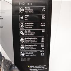 RECOVER 25.3" | 64cm for every turn of the crank. Slow oscillation gearing and a Total Line Control system reduces twists, wind knots and provides greater control over all lines. Gear ratio of 5.2:1. Features an Aluminum spool.