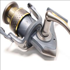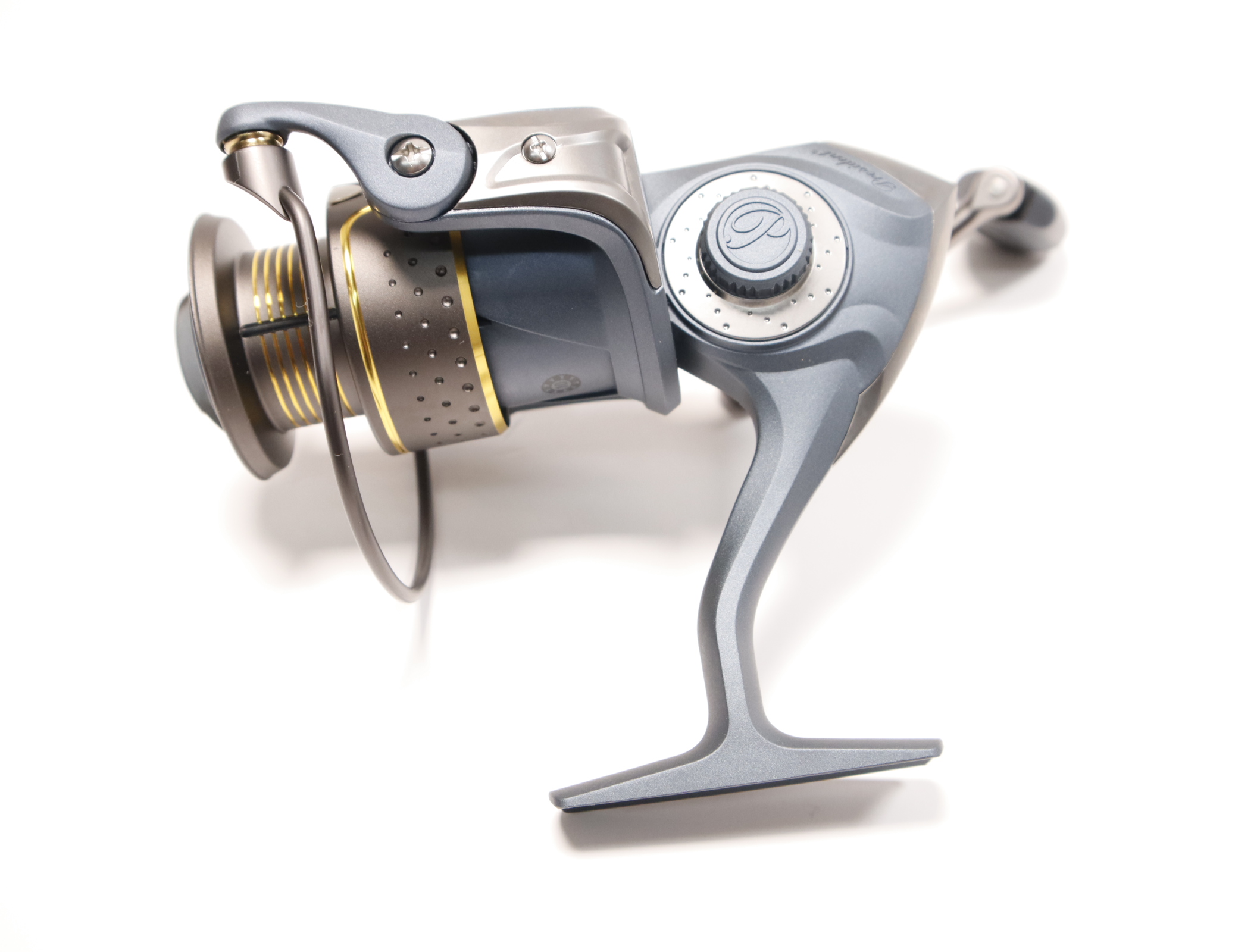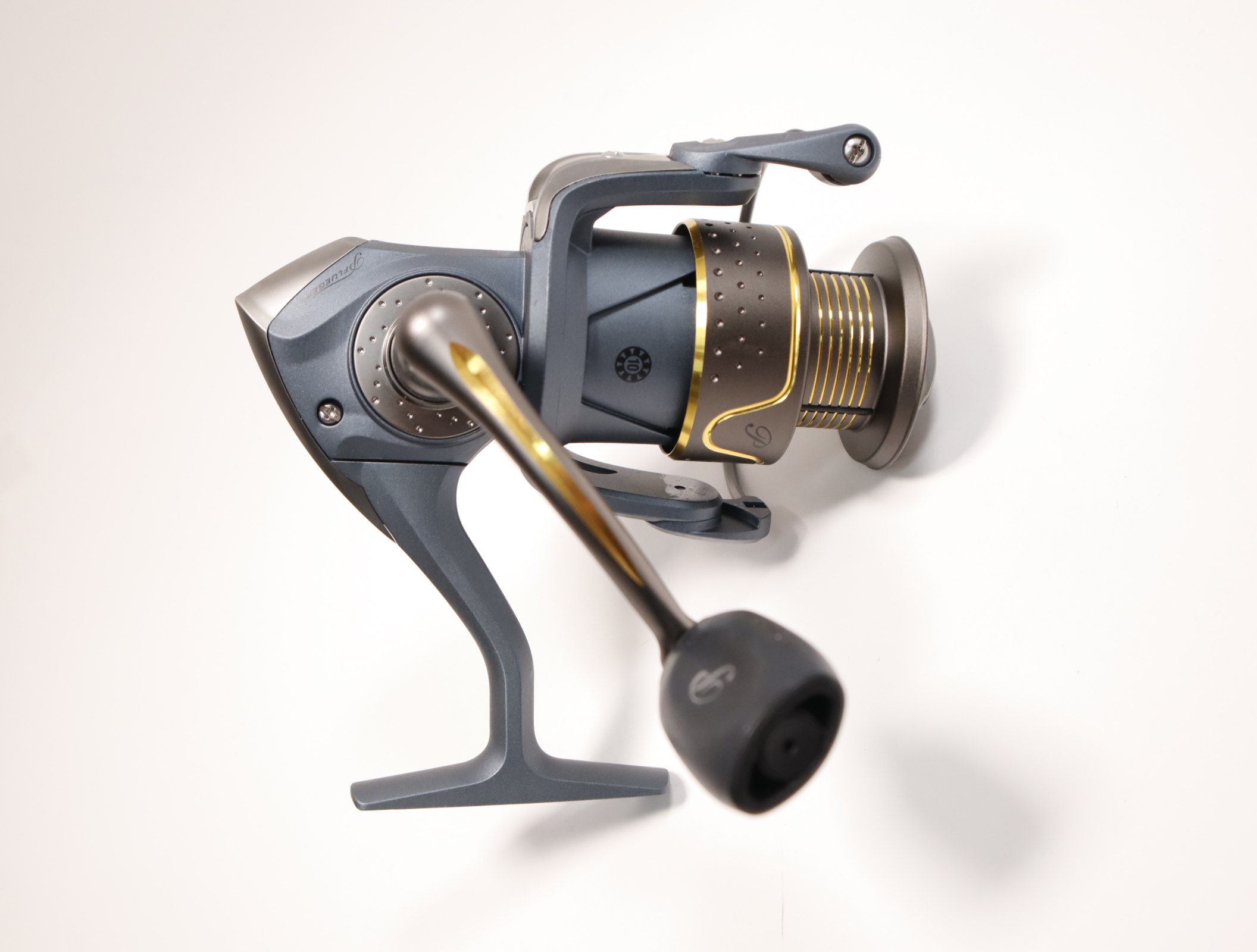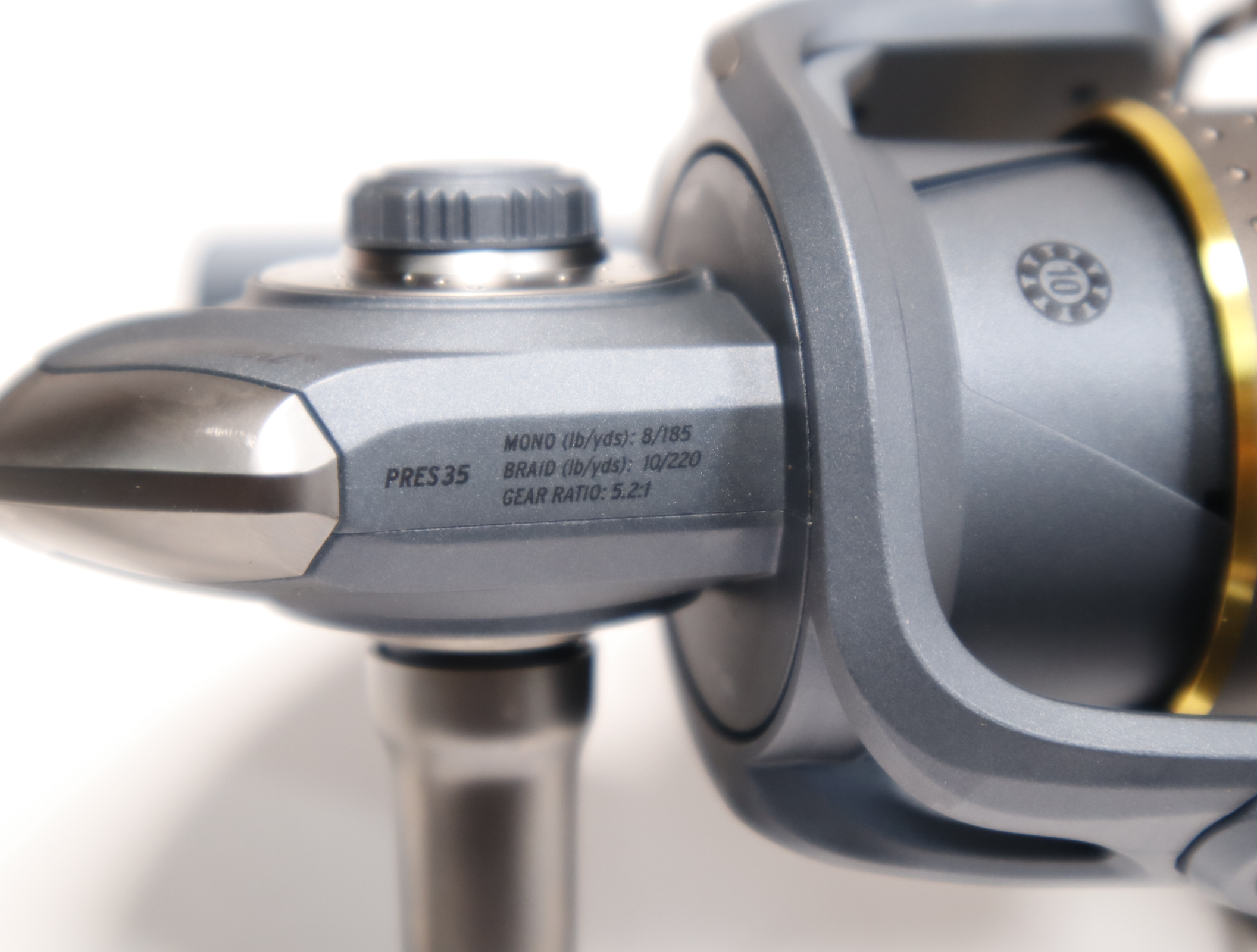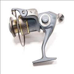 SIZE 35 SPINNING REEL: Features a graphite body and rotor for lightweight, corrosion-resistant fishing reels. The aluminum handle and soft touch rubber knob are suitable for Right/Left handed anglers.