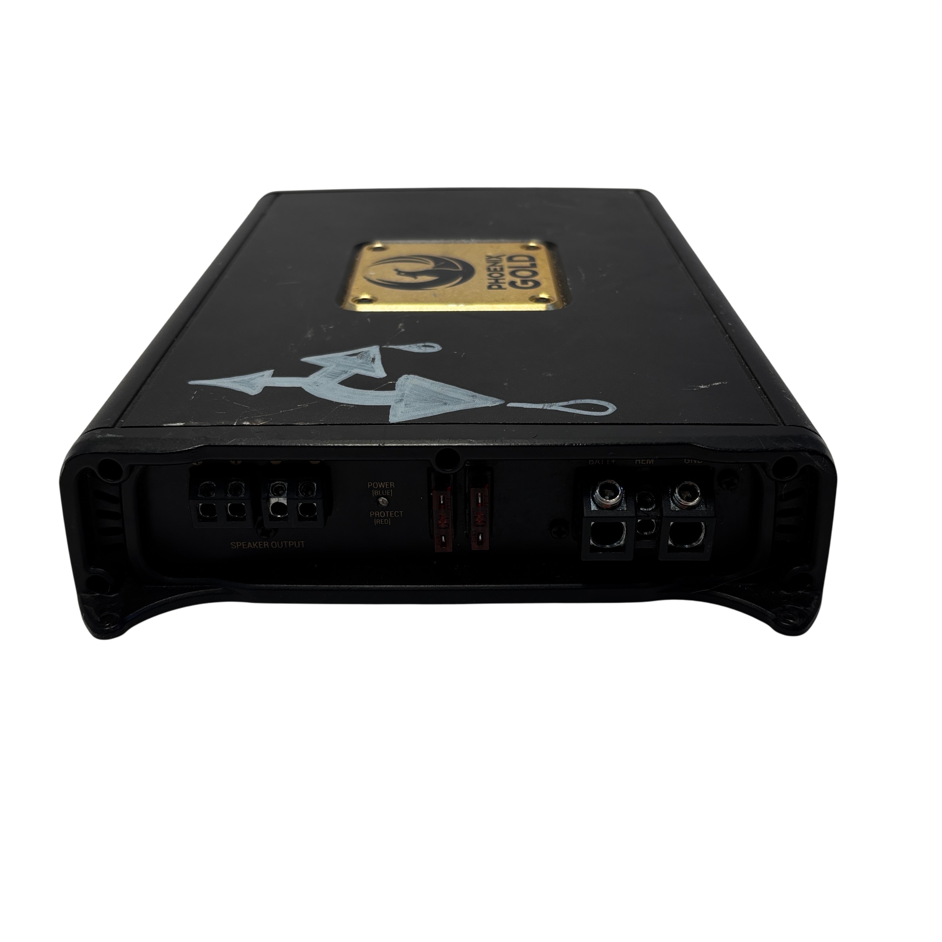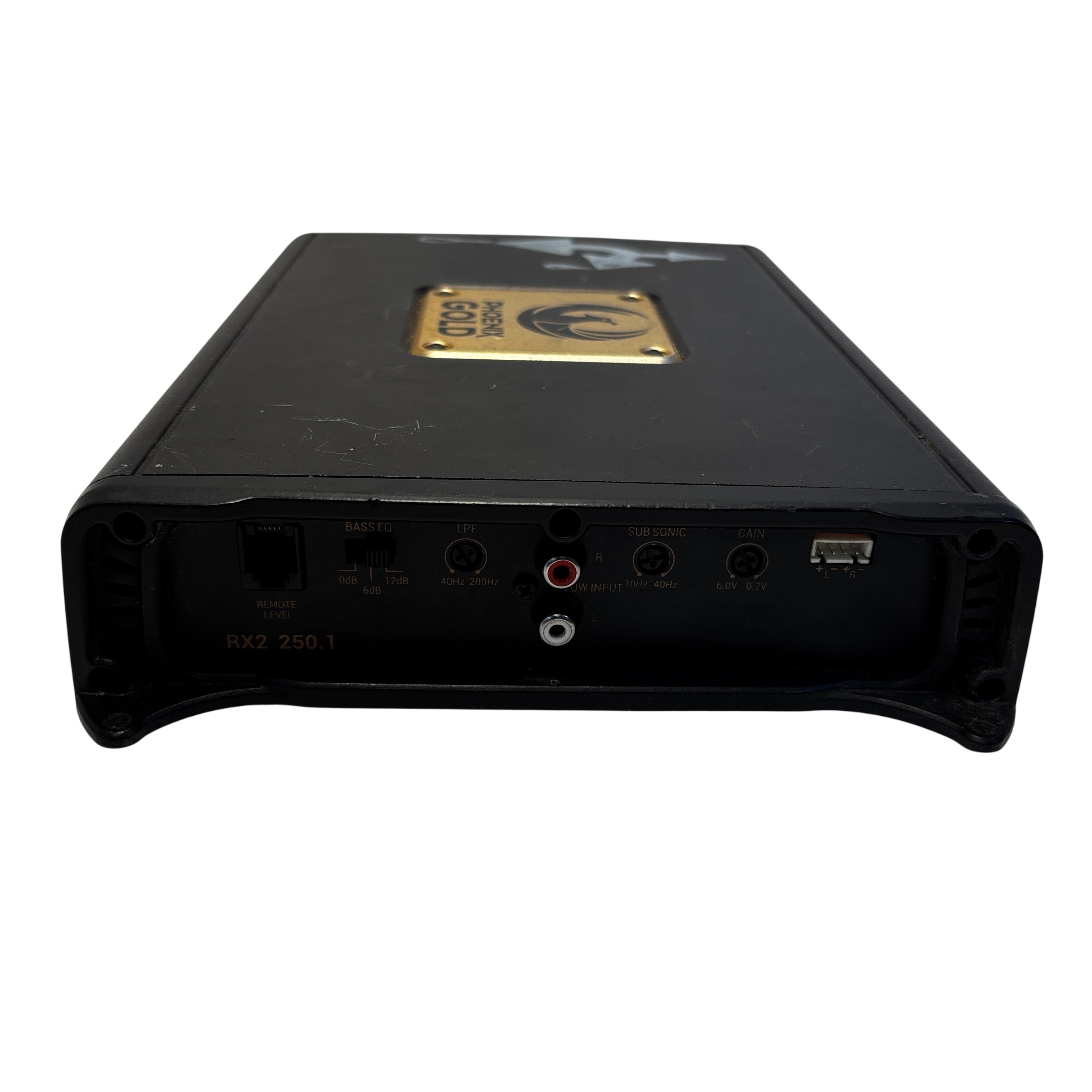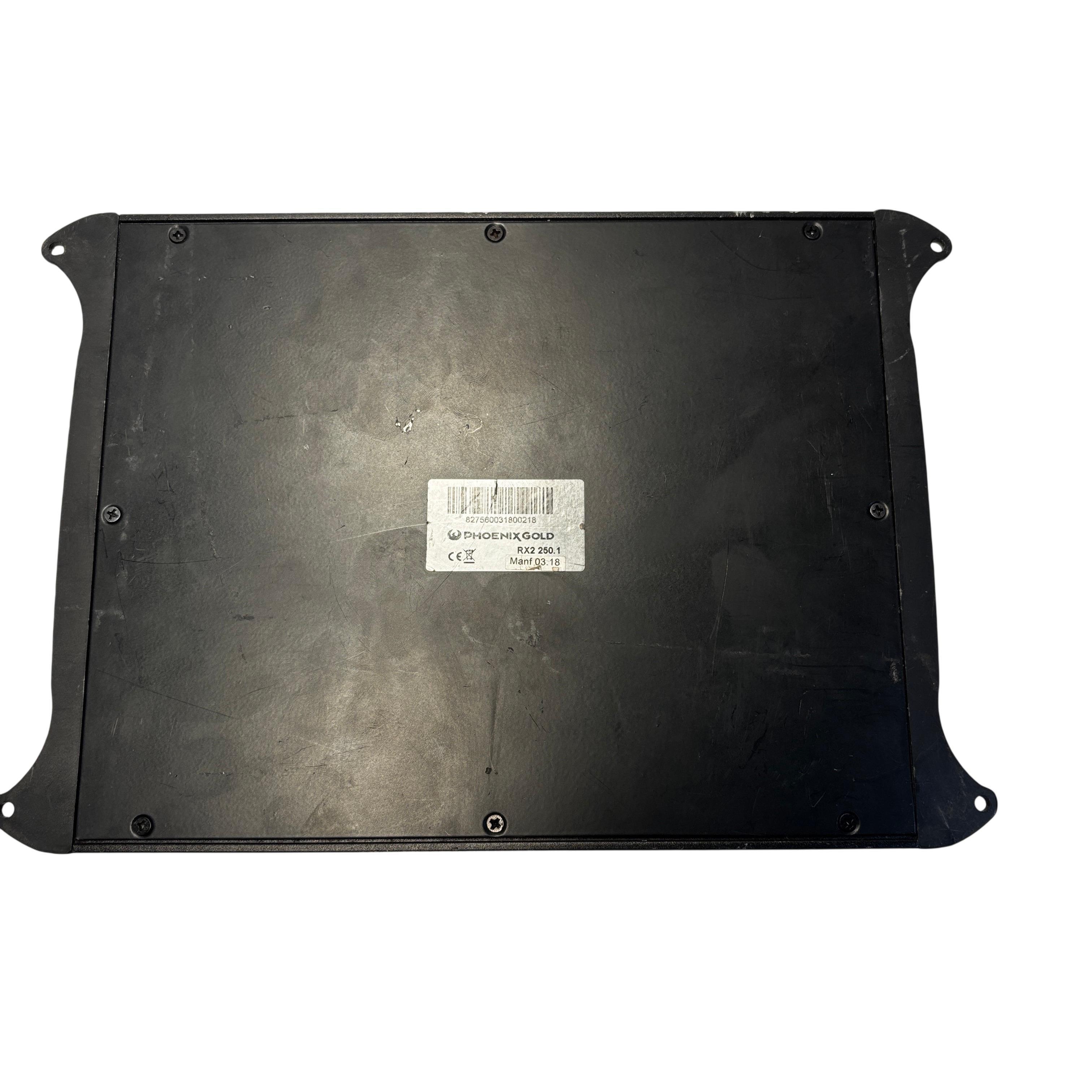 The Phoenix Gold RX2250 RX2 250.1 Mono Car Audio Amplifier delivers 250 watts RMS power output, designed for high-quality subwoofer performance in car audio systems. This amplifier features adjustable bass EQ, sub sonic filter, and gain control for precise sound tuning. It includes remote level control capability for convenient volume adjustments. The robust metal casing with a distinctive gold plate adds durability and style to your audio setup. Ideal for audiophiles seeking powerful and customizable bass amplification.