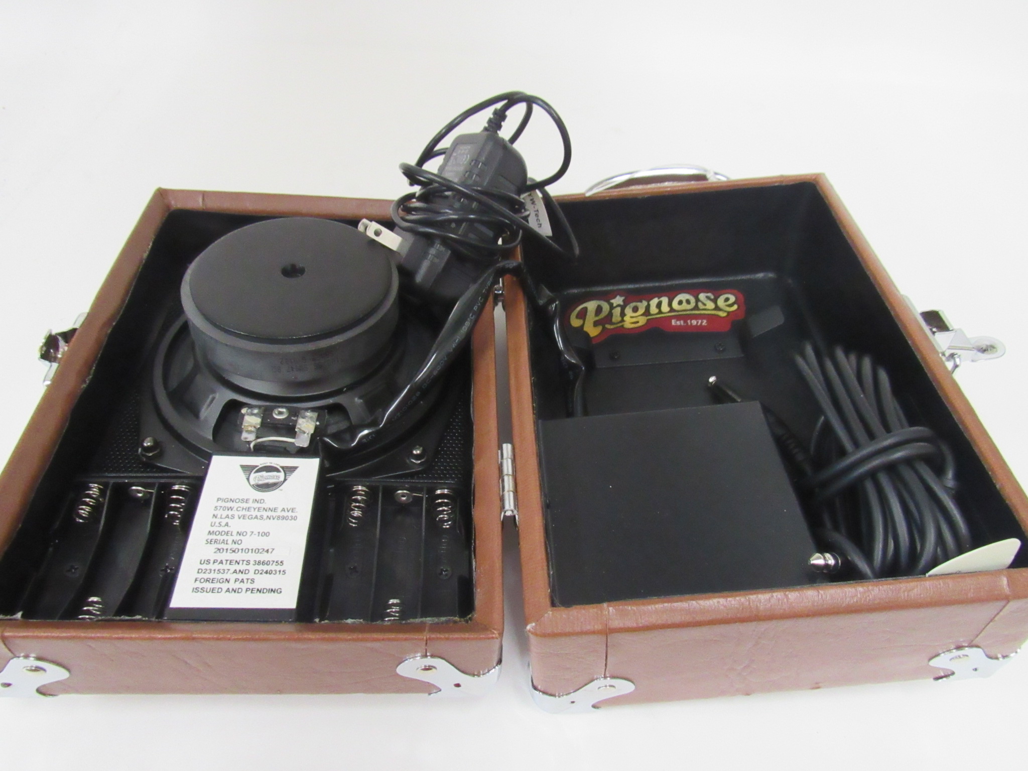 The Pignose Legendary 7-100 portable amp can be perfect for musicians at any level. Perhaps you're an aspiring street performer who loves playing your music for different audiences. Or maybe you’re a beginner musician who just needs something simple to practice to become like legendary musicians. The Pignose Legendary 7-100 portable amp is an icon in the realm of portable guitar amps. It can allow you to rock out with your electric guitar anywhere that you want. This amp features five watts of power and a five inch speaker that can work with any guitar. The Legendary 7-100 sports a very simple console with the “Pig Snout” on/off switch that doubles as volume control.The enclosure itself also affects the overall tone and sound output. You can achieve a bass driven and bluesy style of tone by simply leaving the enclosure closed. By leaving the case open, you can experience a more full range rock and roll sound. Accordingly, you can have one of your friends open and close the case itself. This can create a unique wah effect right when you want it. This feature can spice up your riffs while you are playing your songs live. The Pignose amplifier can be an efficient preamp that can work with any of your chosen guitars. It can offer a preamp jack outlet for plugging guitar pedals in for that great distortion and reverb music that everyone can love. This mini Pignose amplifier can be used with accessories to really enhance your songs. This Pignose combo amp is an exclusive tweed collector’s edition. This combo can be powered by a battery or an external power supply. It can also be plugged into a larger PA. This convenient little amp can work with or without an adapter and specialized gear. The product can be perfect audio that you will want to record. With this guitar amplifier, you can meet all of your recording needs. This amp can be perfect for both acoustic and electric guitars. One of the more significant features of the Pig nose guitar amplifier is its size. It is compact enough to fit into a backpack, a locker, or other small space. Its small size can make it ideal for travel and can beat many of the other amps that are on the market because of all of this benefit. The Pignose guitar amp can not only an affordable option but can also be durable and reliable. You do not have to worry about anything as you travel. What can blow you away is that this simple Pignose amp has good sound and really accentuates your playing. You can sound great no matter what type of music you play. You can take your performance to the next level. With this amp, you have the potential to earn money and make a living by playing music. This is an amp that you can rely on for years to come. You can enjoy playing well known rock, blues, or classic rock songs. You can turn heads wherever you go. You can complement your playing with this Pig nose amplifier that can be ideal for home studios and professionals that play on the go.