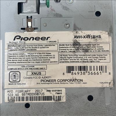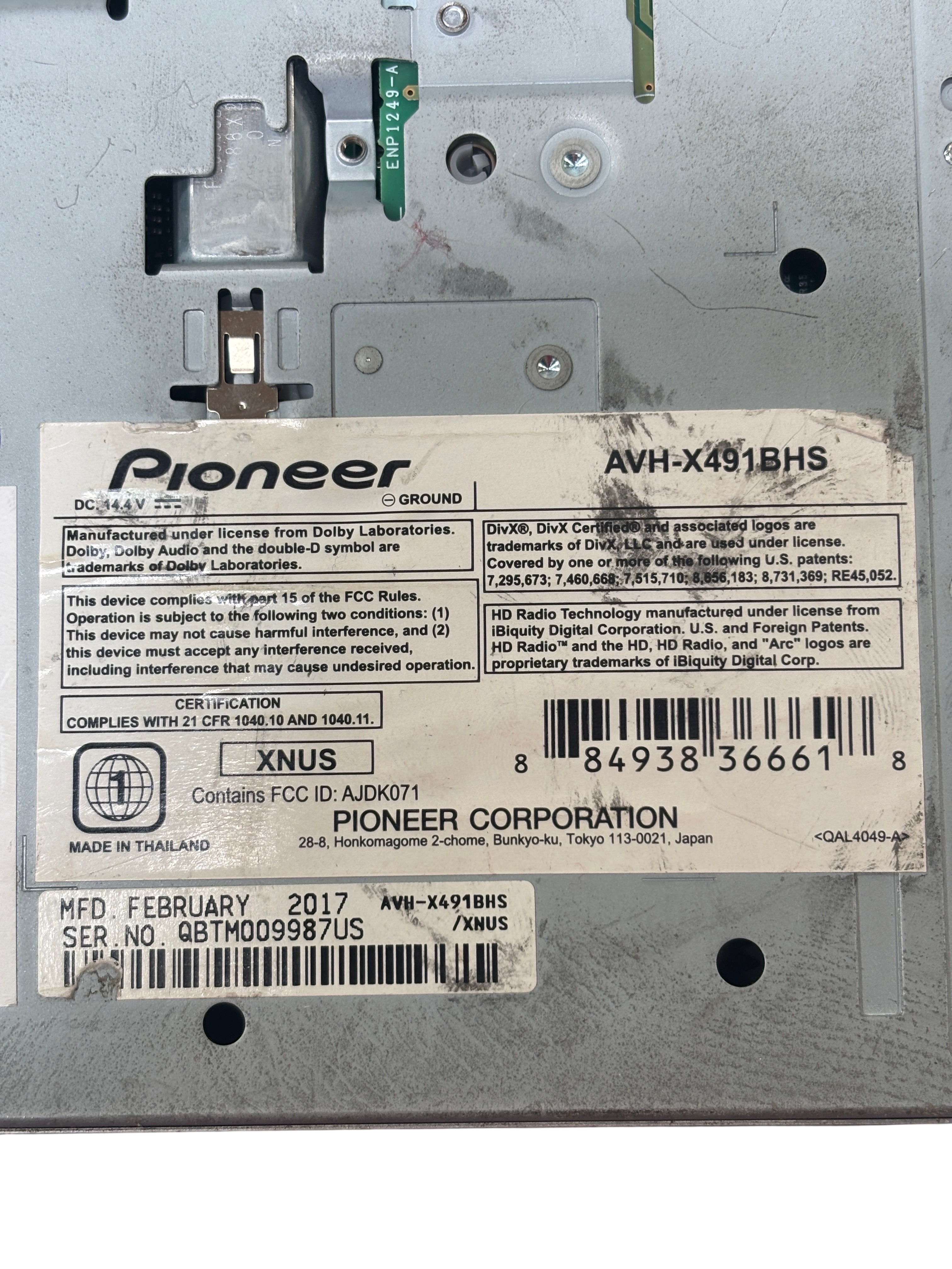 The Pioneer AVH-X491BHS is a versatile car stereo receiver featuring a 7" touchscreen display and advanced Mixtrax technology for seamless DJ-style music playback. Operating at 14.4V DC vehicle power, it supports HD Radio, DivX video playback, and Dolby Audio for enhanced sound quality. This unit is designed for easy integration into most vehicles and offers a range of connectivity options for modern in-car entertainment. Ideal for users looking to upgrade their factory stereo with a feature-rich multimedia receiver.