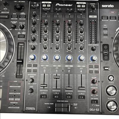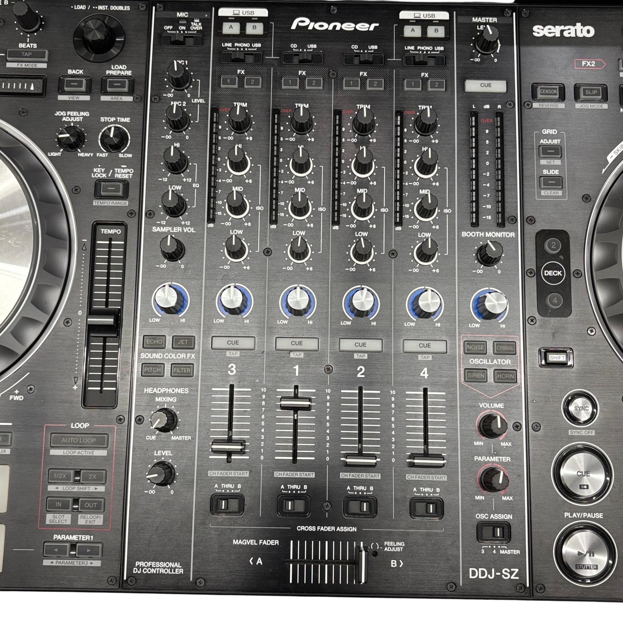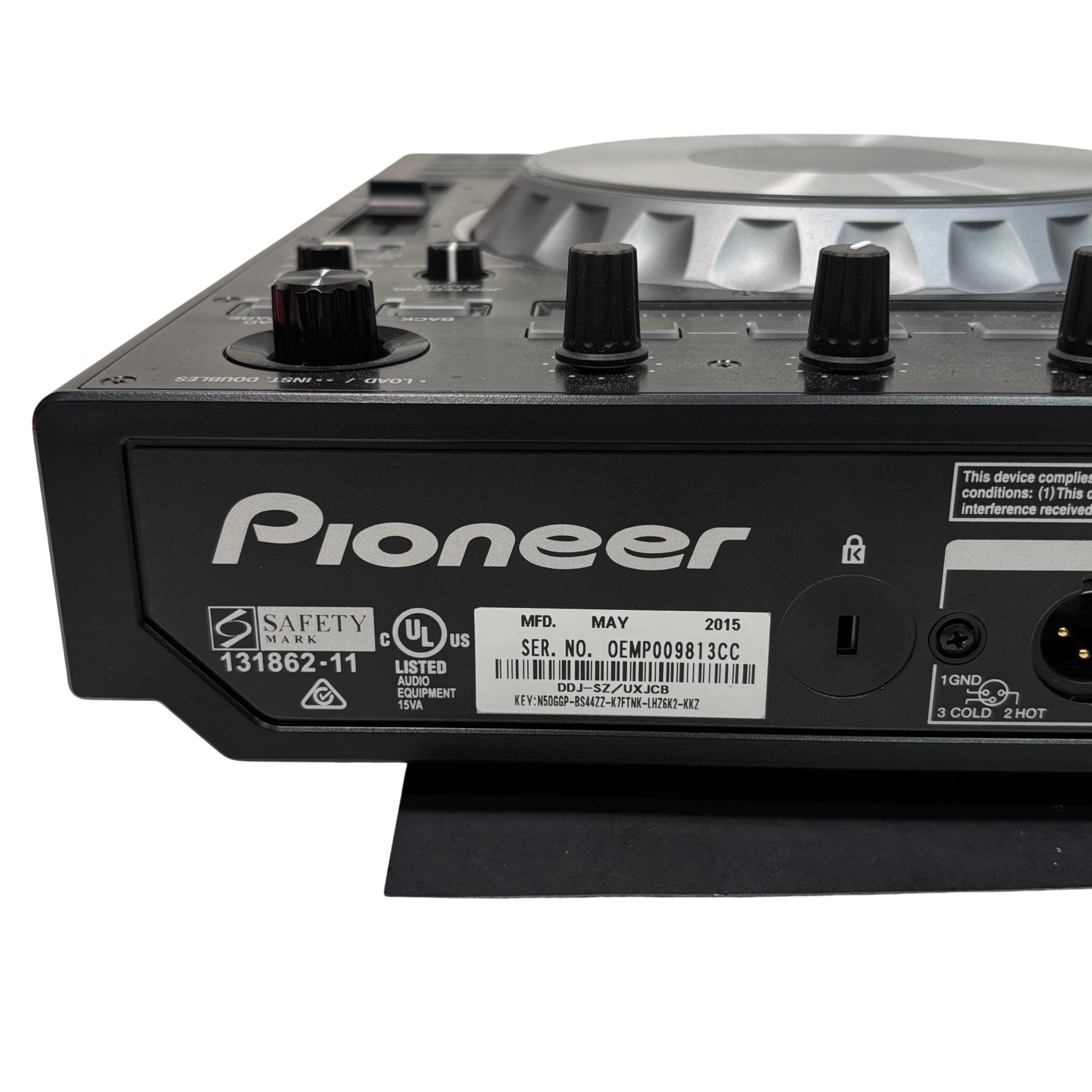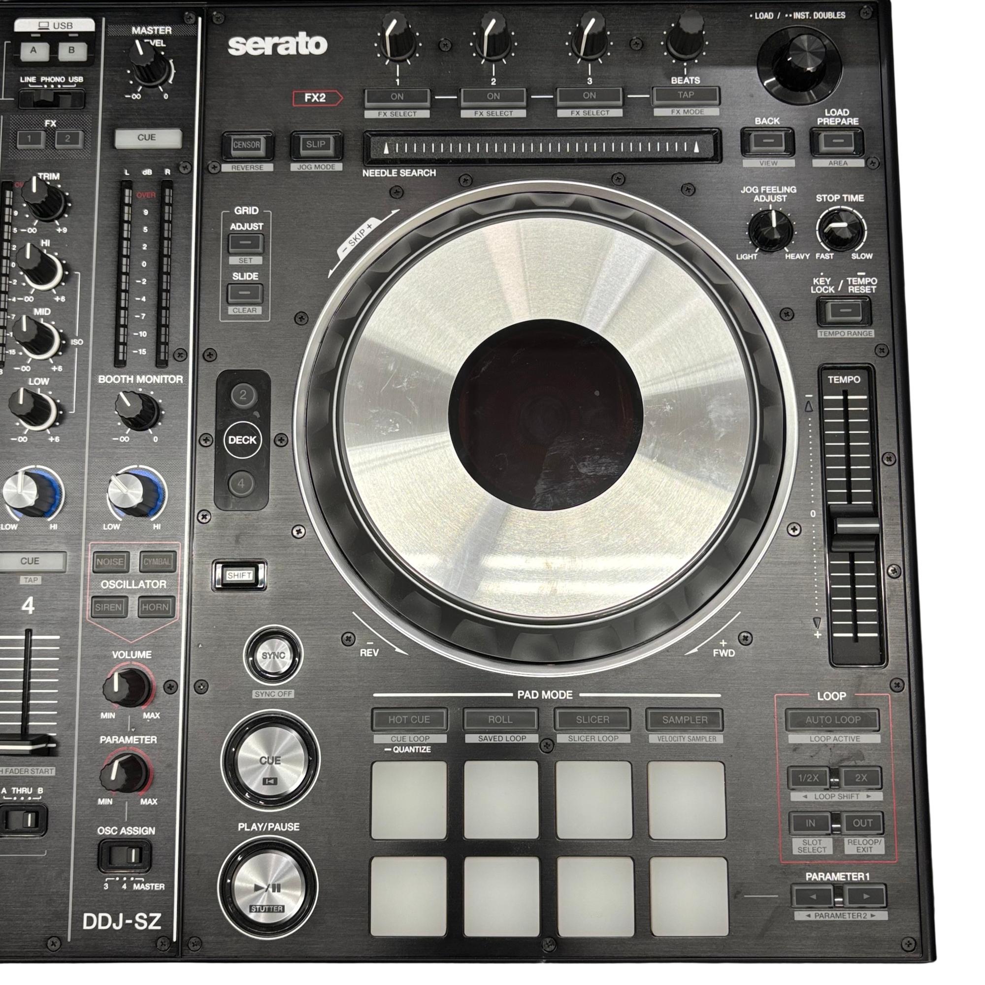 Pioneer DDJ-SZ Professional 4-Channel Serato DJ Controller offers a high-performance digital mixing experience designed for serious DJs. Featuring comprehensive control over Serato DJ software, the controller includes multiple knobs, sliders, and performance pads for precise mixing, looping, and effects manipulation in a durable black and silver design optimized for live performance environments.