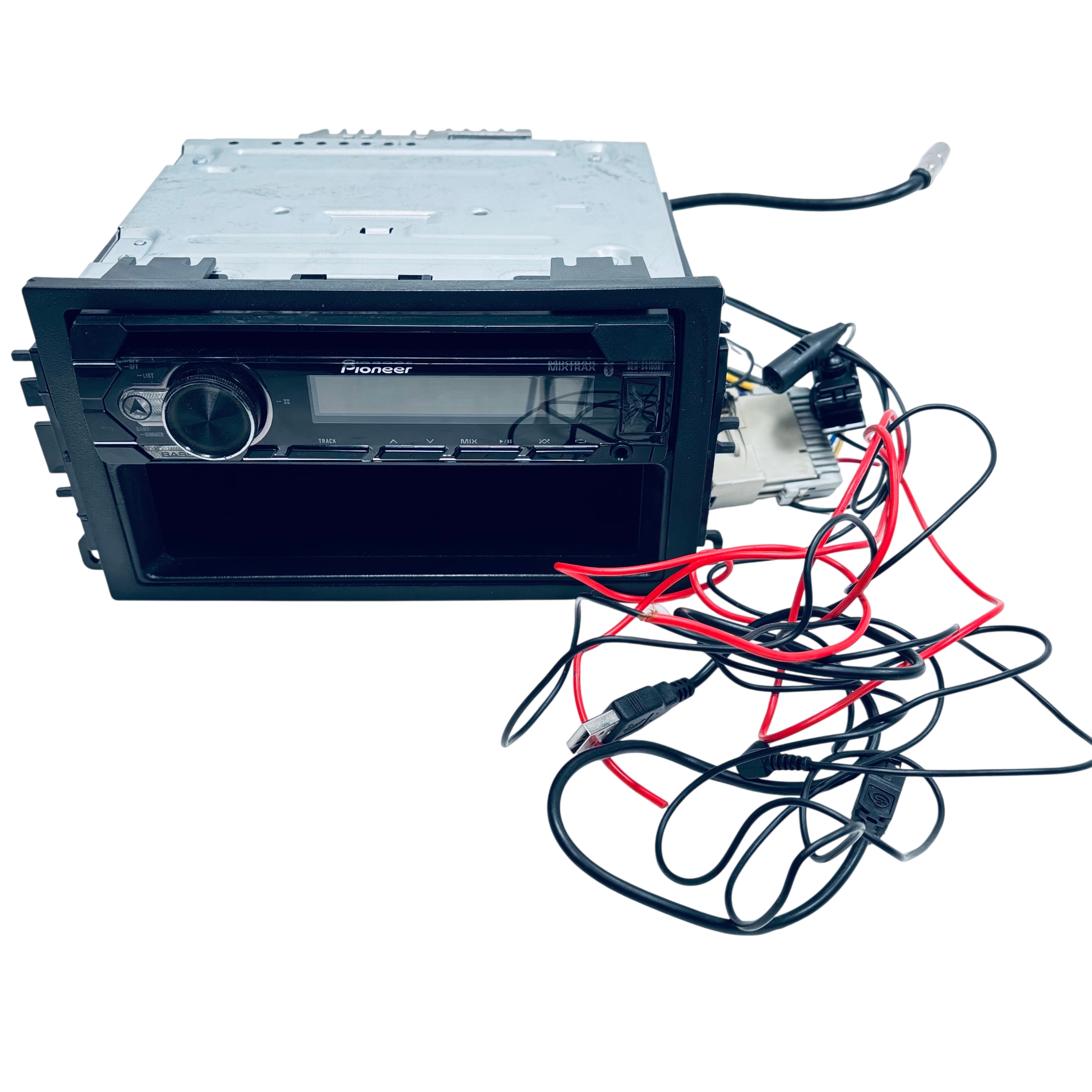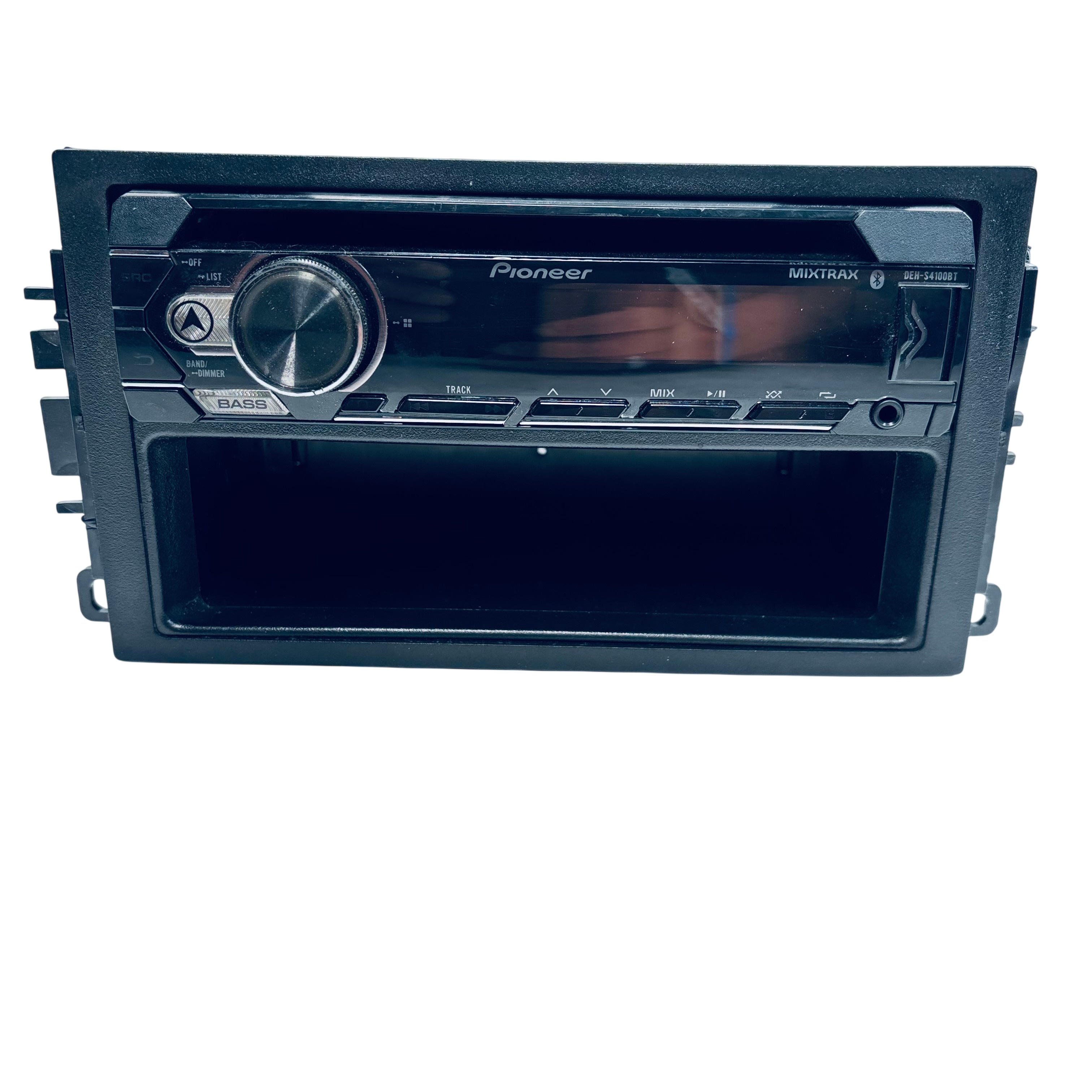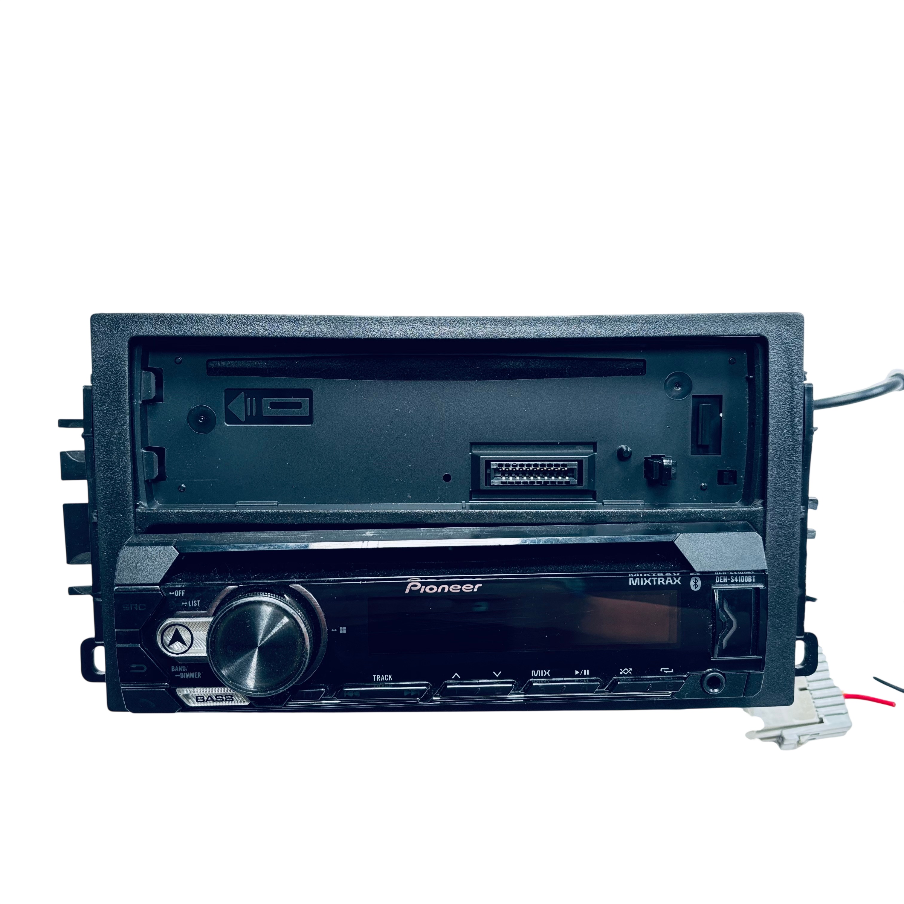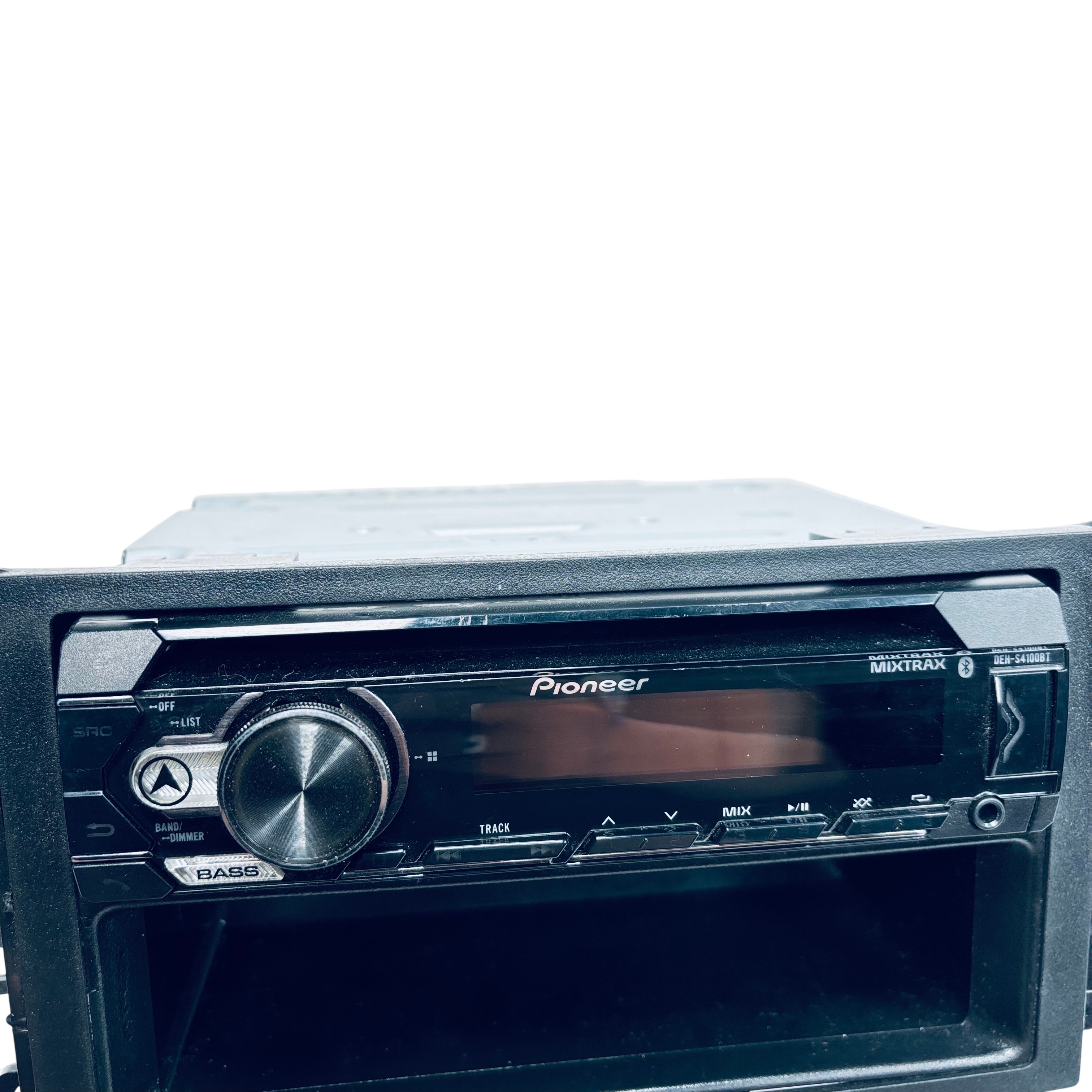 Pioneer DEH-S4100BT Car Deck is a Bluetooth-enabled car stereo receiver designed for seamless music streaming and enhanced audio control. Operating at 14.4 volts DC, this unit features MIXTRAX digital DJ effects, bass boost, and dimmer controls for a customizable listening experience. The receiver includes a USB input and a wiring harness for easy installation, making it an excellent upgrade for your vehicles audio system. Compactly sized at approximately 7.17 x 6.69 x 2.36 inches and weighing 2.5 pounds, it fits standard car stereo slots and delivers quality sound performance.