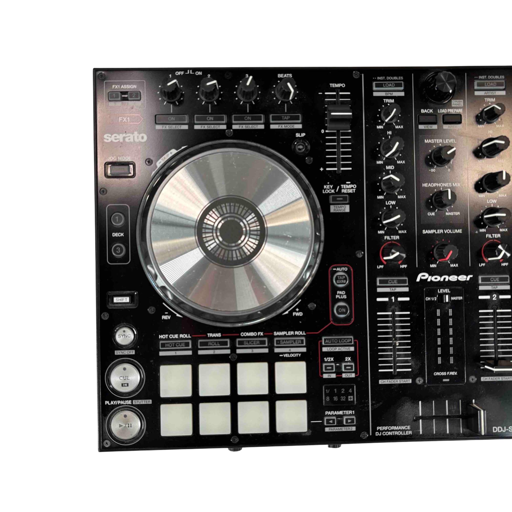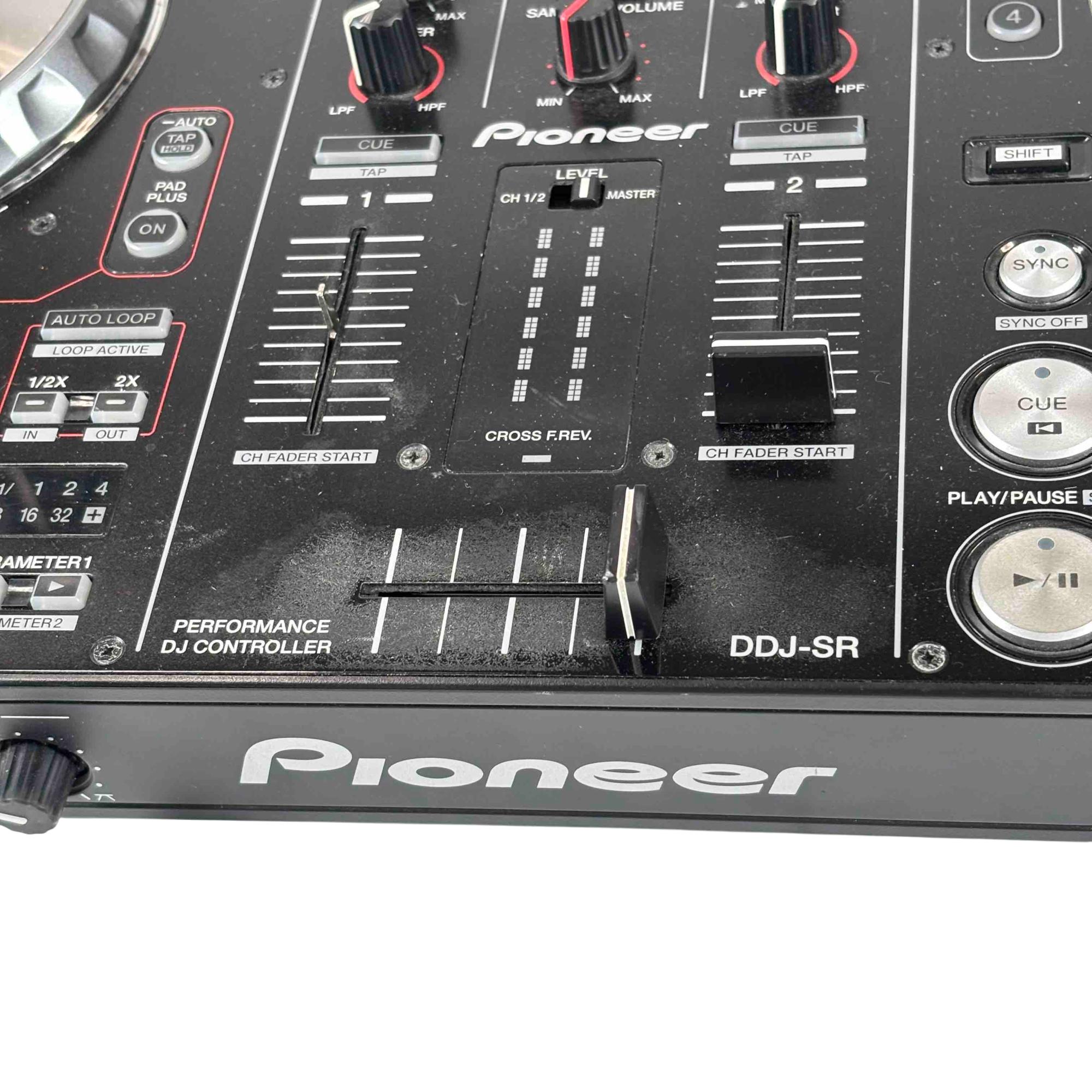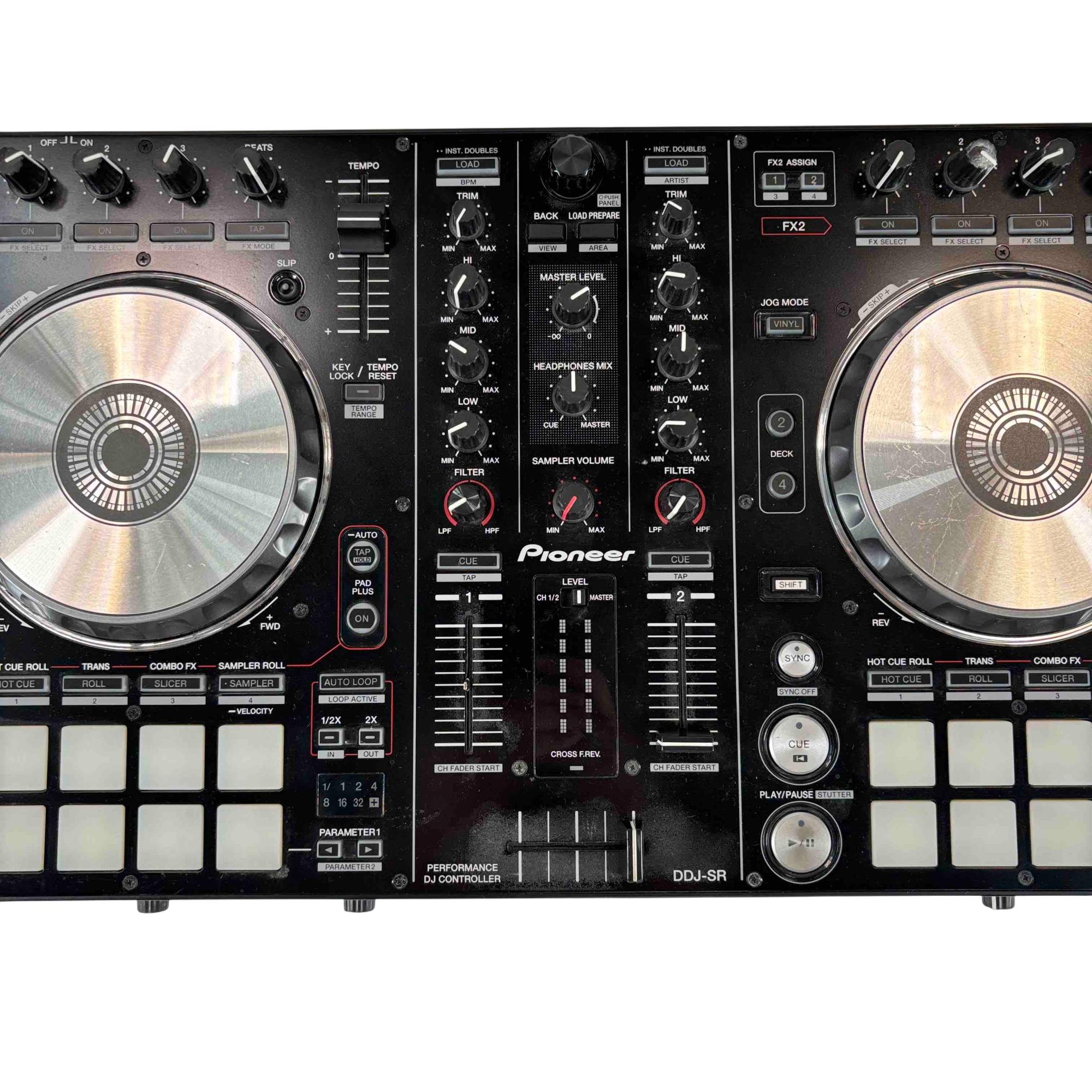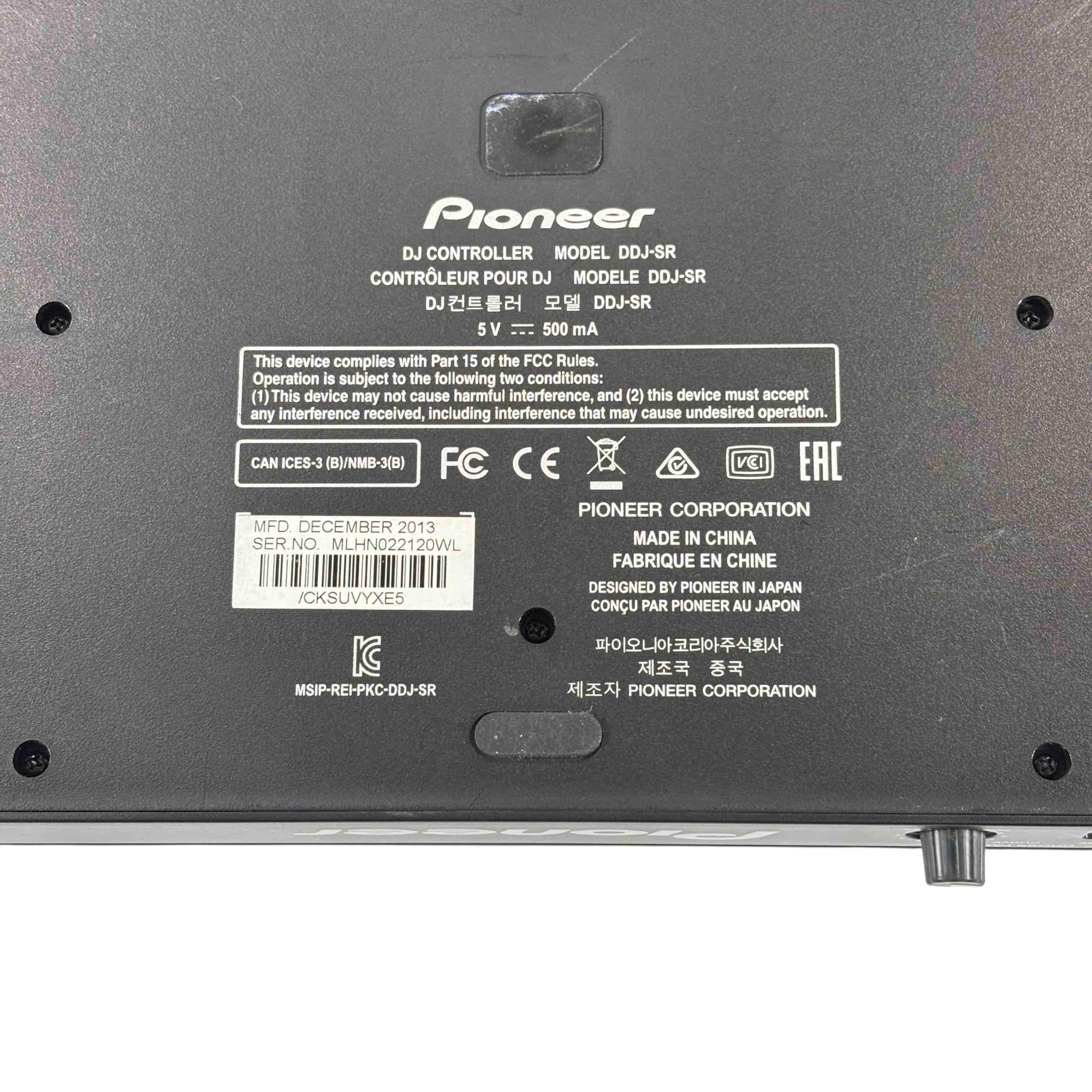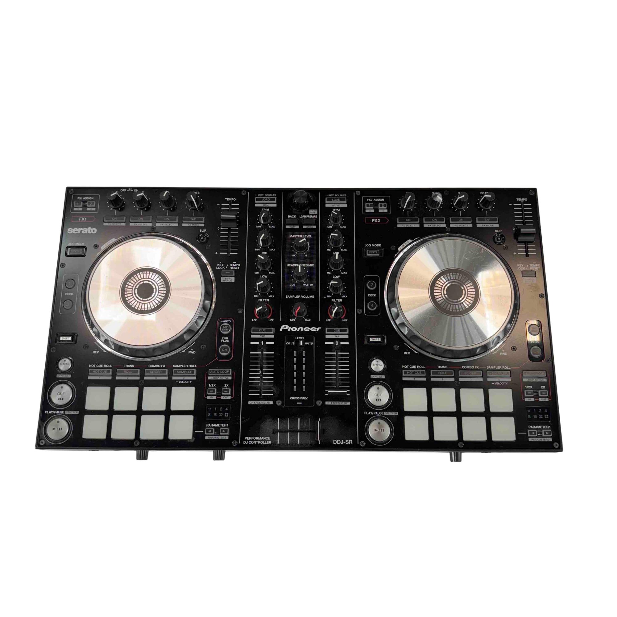 Pioneer DJ DDJ-SR portable 2-channel USB DJ controller designed for Serato DJ users. Features a built-in Serato sound card, large low-latency jog wheels for accurate scratching, and Slip Mode for seamless live edits. Includes rubber Performance Pads with Pad Plus for advanced functions like Hot Cue, Sampler Roll, Combo FX, and Trans Pad. Compact and USB-powered, making it ideal for mobile setups while still delivering professional-level control of Serato DJ Pro.