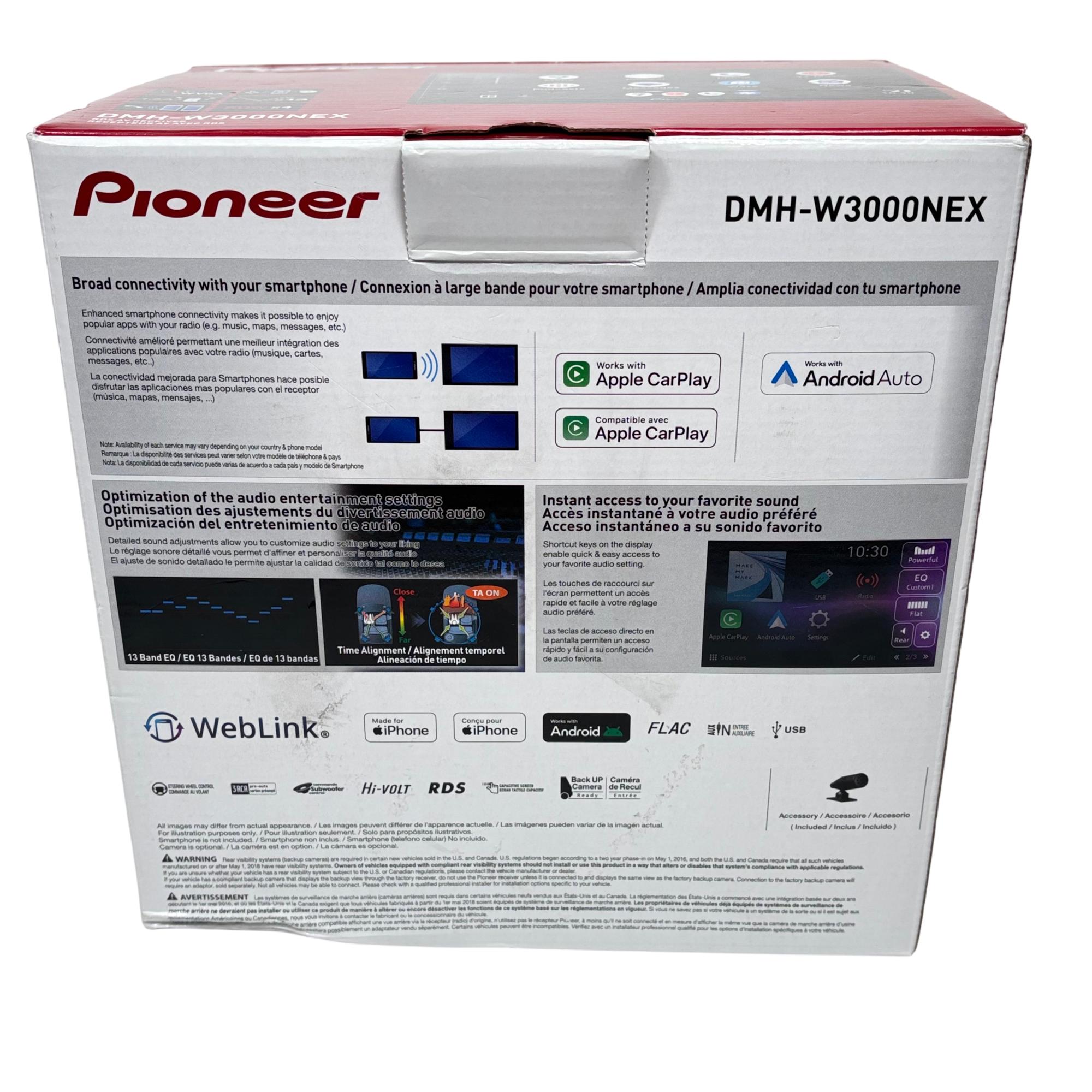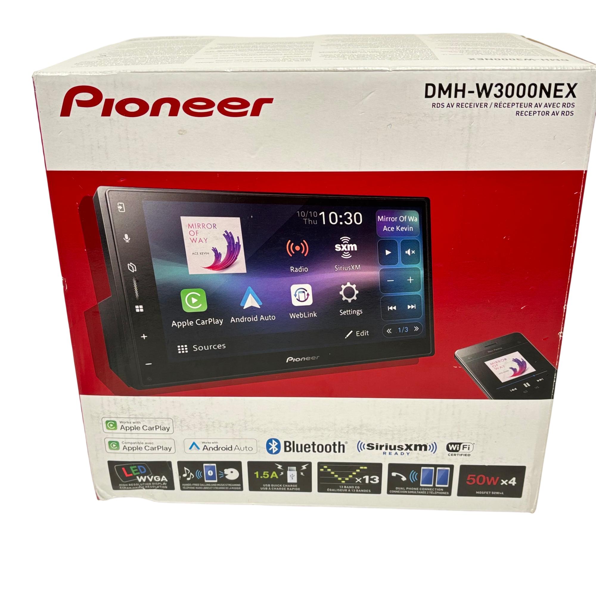 Pioneer DMH-W3000NEX 6.8" Double DIN Multimedia Receiver offers seamless integration with Apple CarPlay and Android Auto, delivering enhanced smartphone connectivity and hands-free control. Featuring Bluetooth connectivity and SiriusXM support, this in-dash unit includes a vibrant 6.8-inch WVGA touchscreen designed for intuitive navigation and multimedia playback in any vehicle.