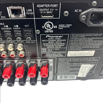 The Pioneer Elite VSX-52 Multi-Channel AV Receiver is a high-performance audio and video component designed for multi-channel surround sound systems. Featuring various input and output ports, including LAN, audio/video, and pre-out connections, this receiver supports seamless integration with home theater setups. Its robust build and advanced circuitry ensure reliable, detailed sound reproduction optimized for immersive entertainment experiences.