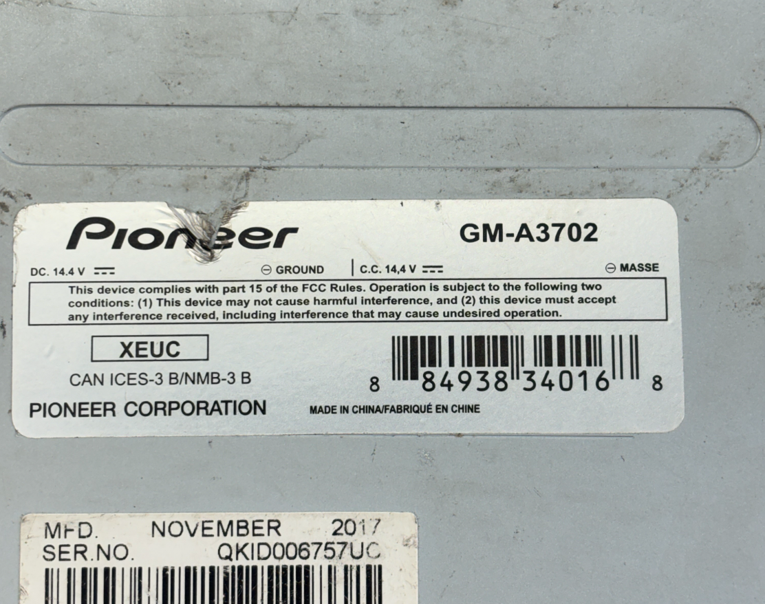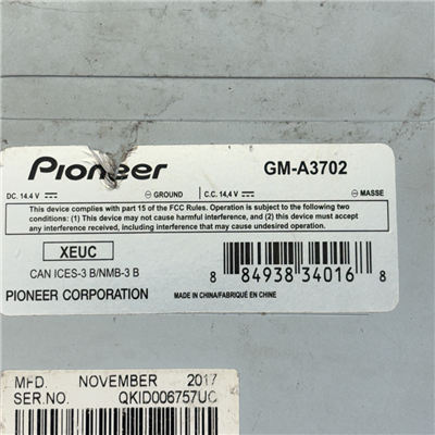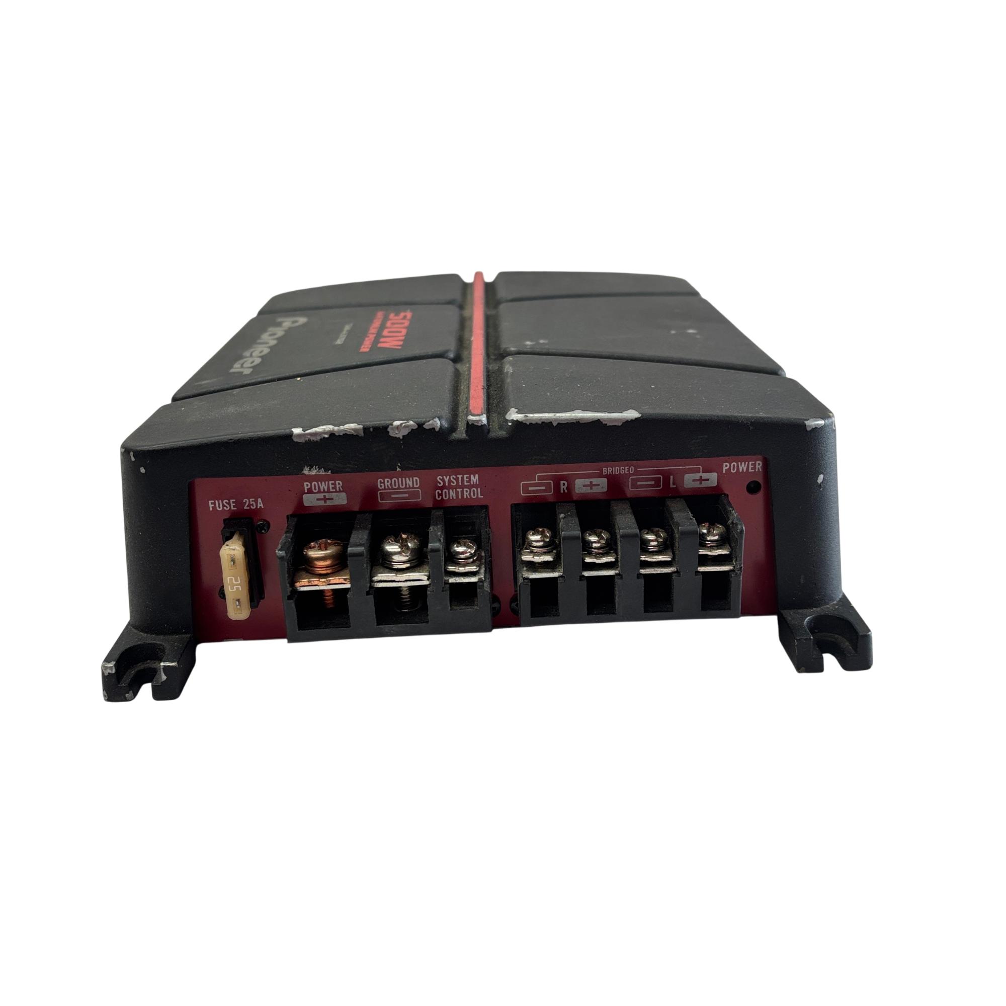 Pioneer GM-A3702 2-Channel 500W Car Audio Amplifier delivers high power output with a maximum of 500 watts, designed to enhance in-car audio performance. This amplifier operates on DC 14.4 volts and features a compact, durable design suitable for integration into various car audio systems. Engineered for clear sound reproduction, it supports interference compliance to maintain consistent audio quality during use.