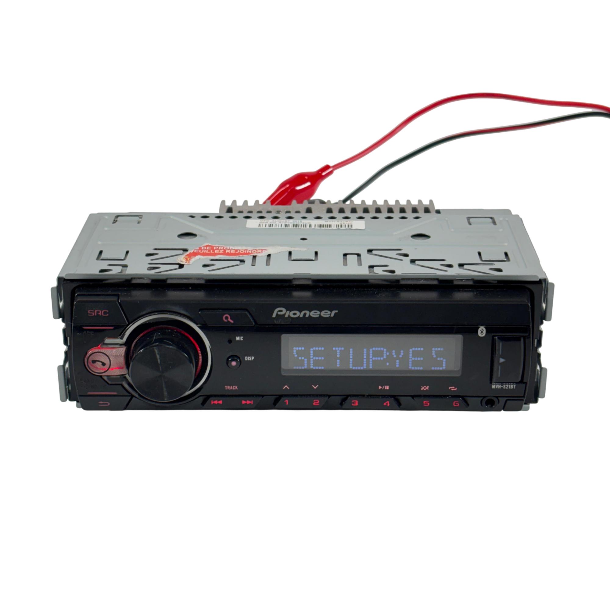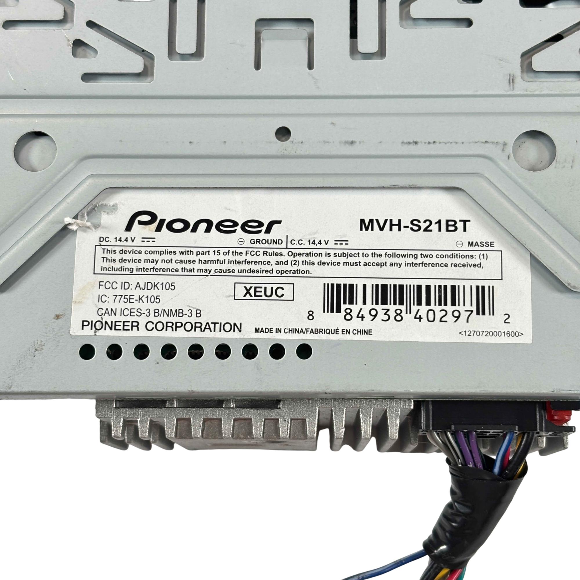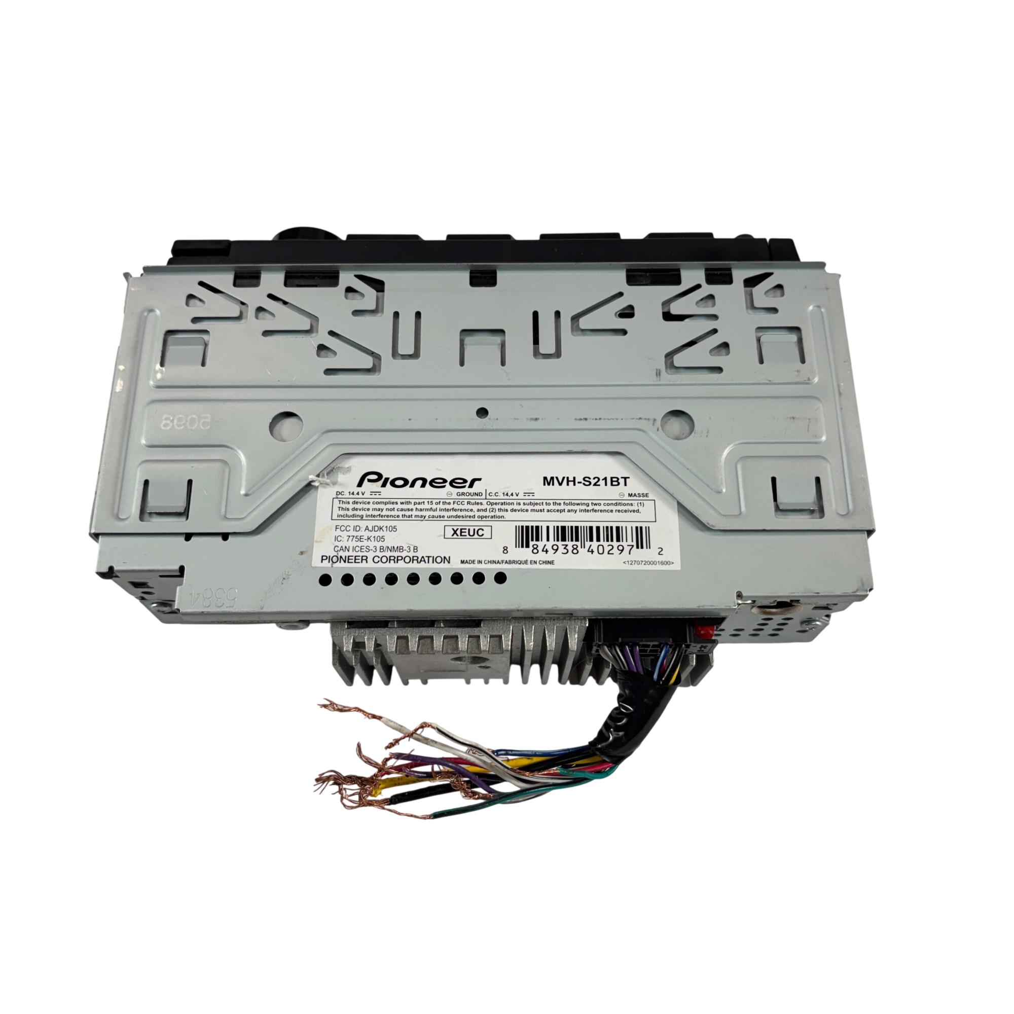 The Pioneer MVH-S21BT single-DIN digital media car audio receiver offers Bluetooth for hands-free calling and wireless audio streaming. It also supports music playback from Android devices or USB flash drives through the front USB port, while a built-in MOSFET amplifier delivers powerful sound with up to 50 watts per speaker for clear and dynamic audio on the road.
