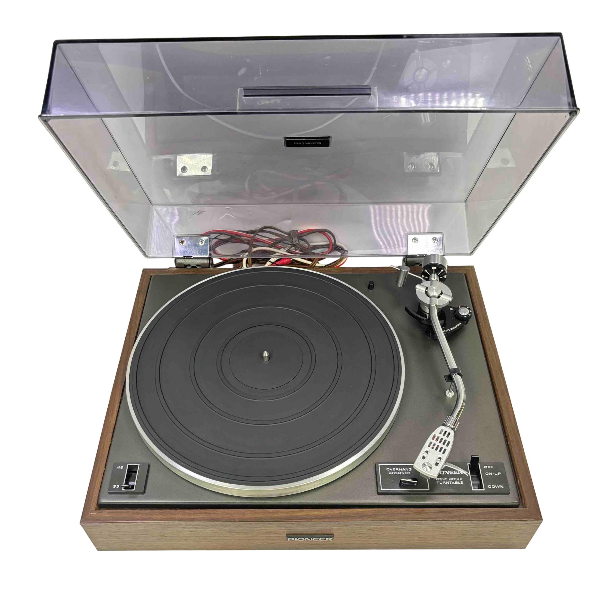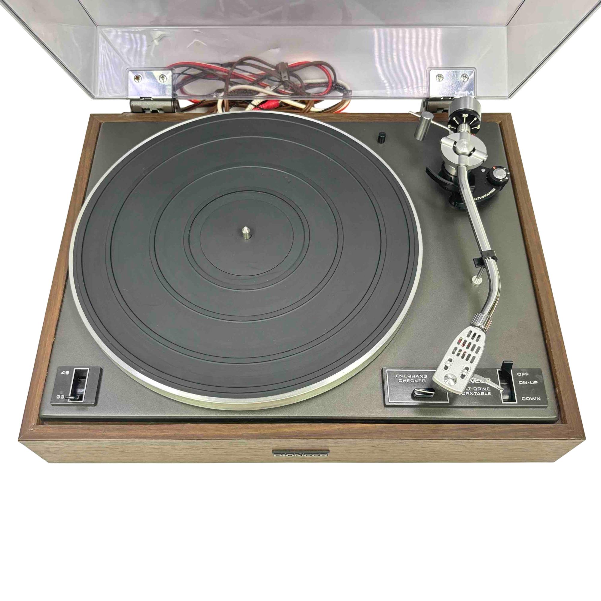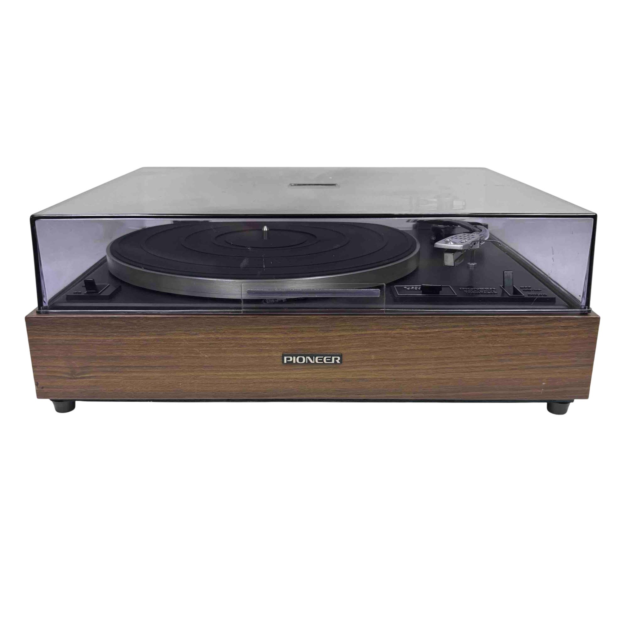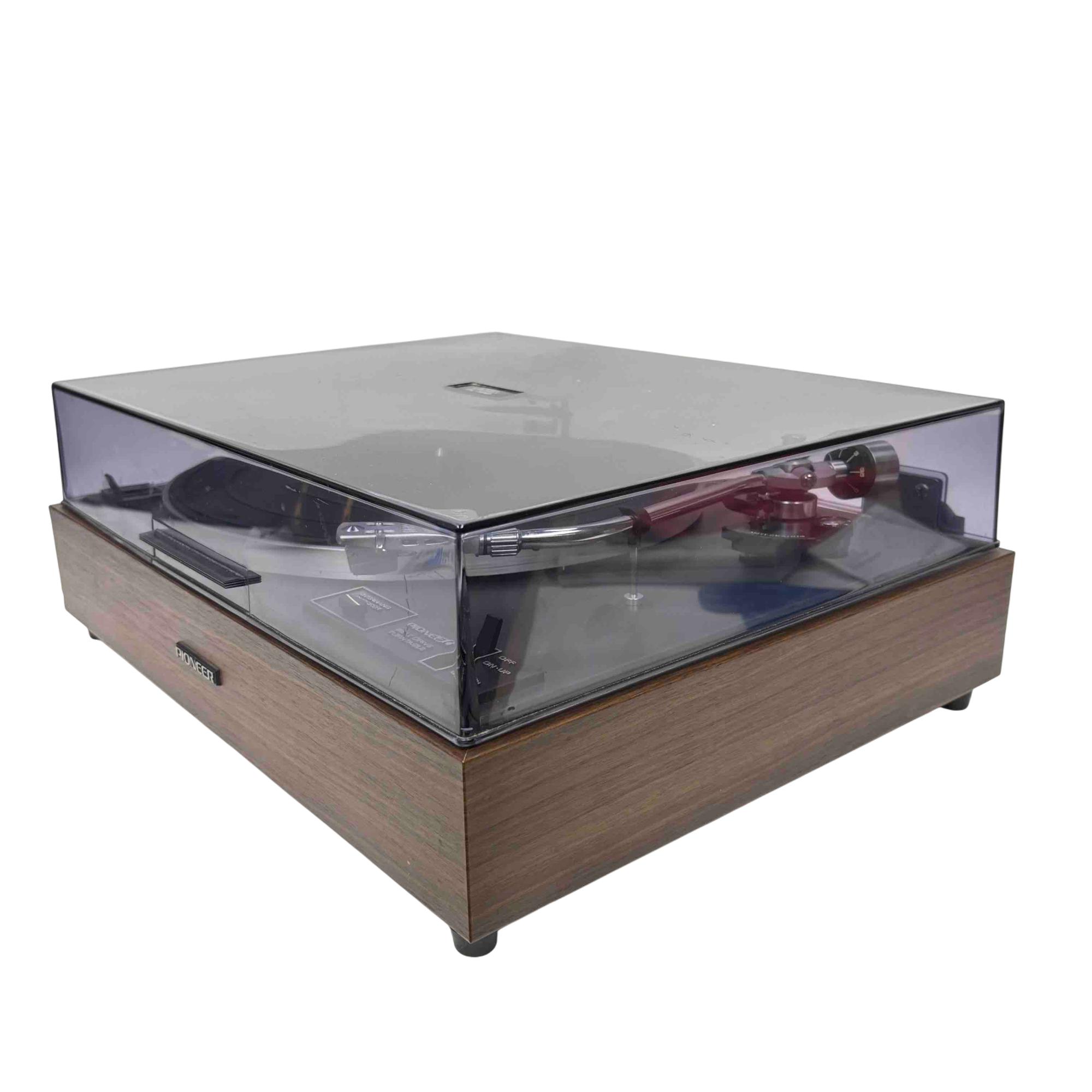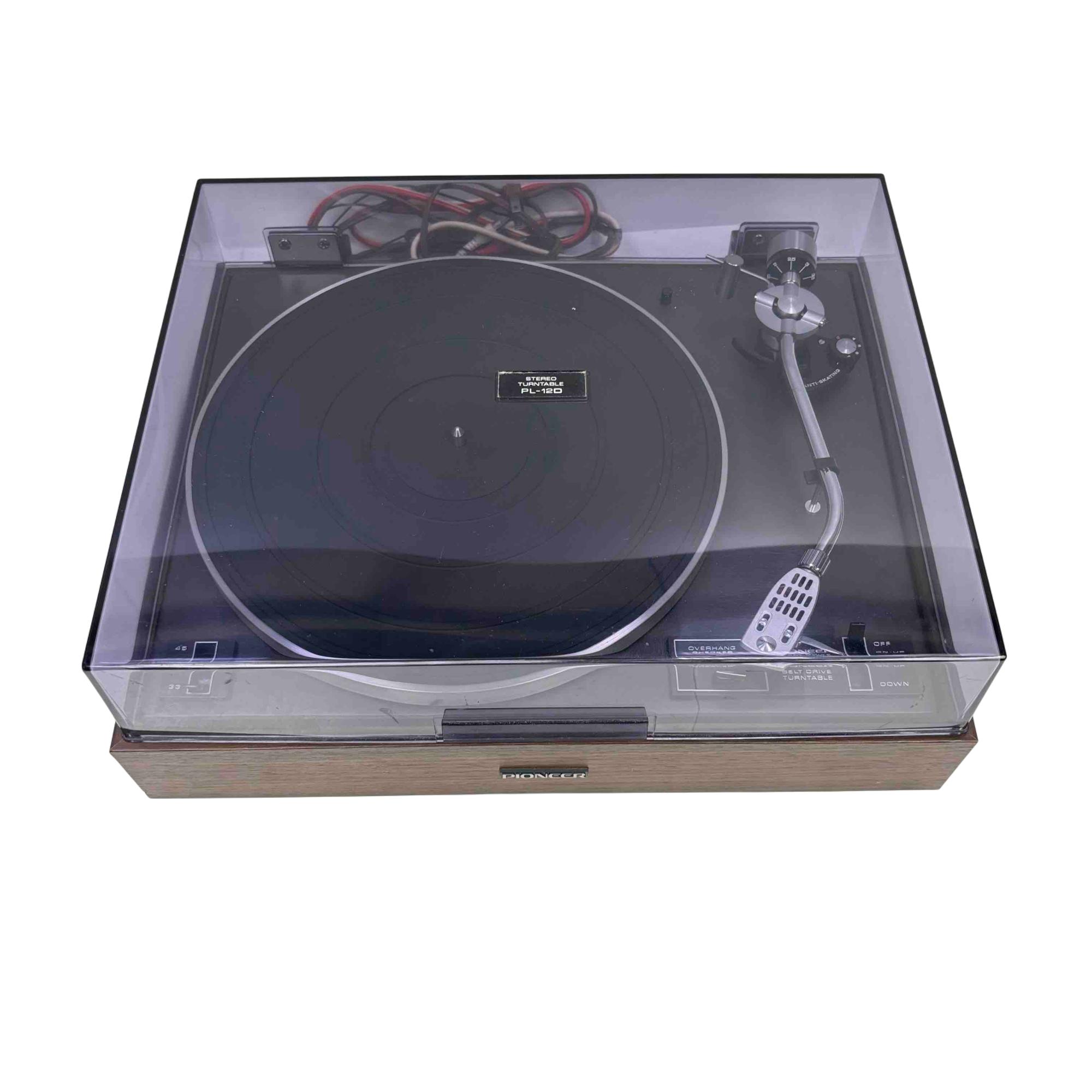 Rediscover the rich, authentic sound of vinyl with the Pioneer PL-120 belt-drive turntable. Featuring a classic woodgrain finish and a sturdy clear plastic dust cover, this vintage record player delivers warm, high-fidelity audio and timeless style. Perfect for collectors or audiophiles seeking a reliable and iconic turntable for their home audio setup.