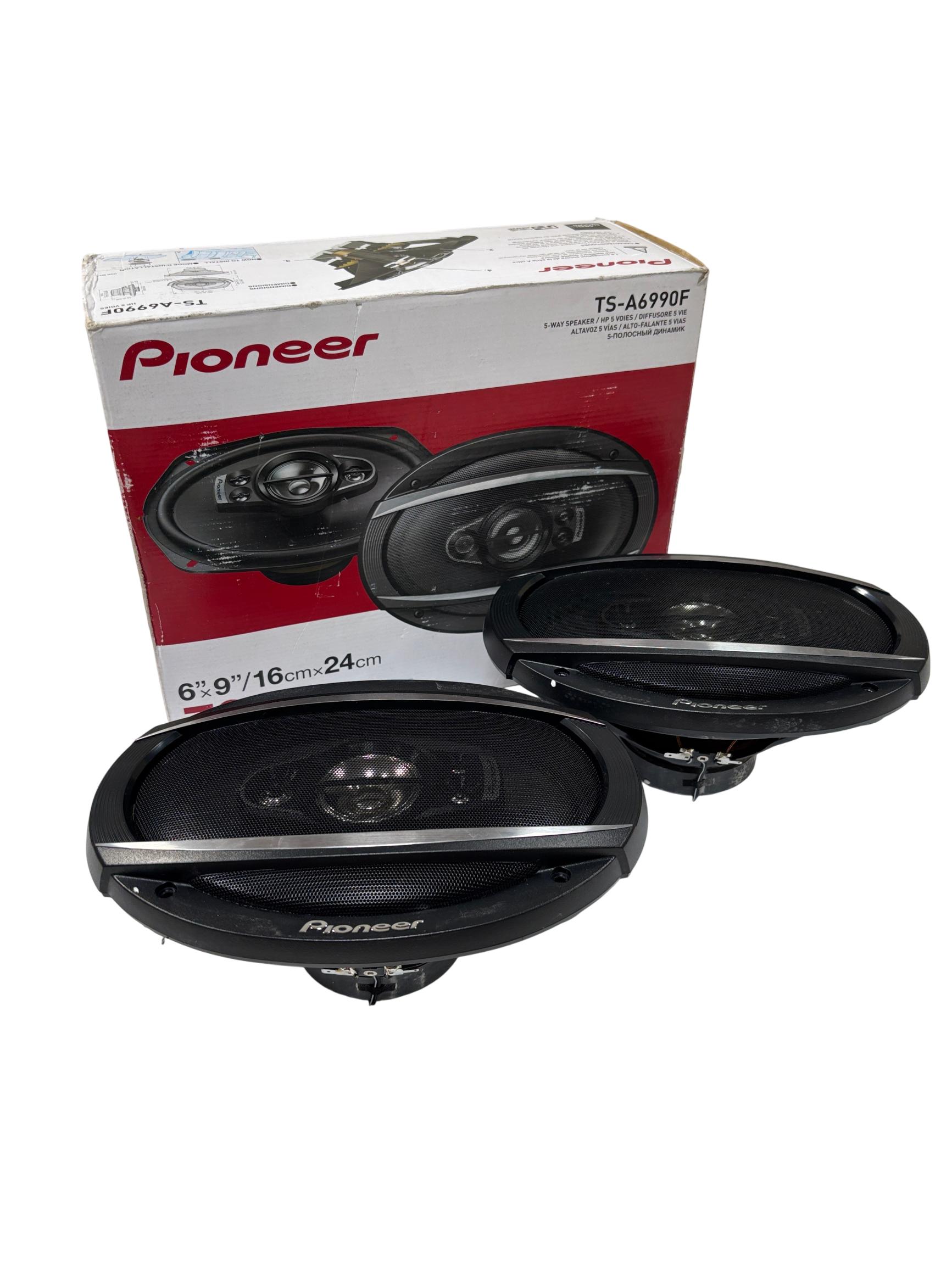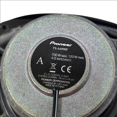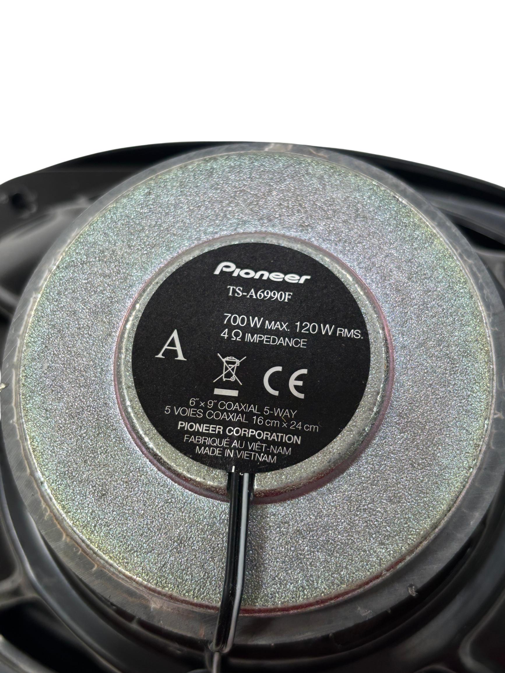 Pioneer TS-A6990F A-Series 6"x9" 5-Way Coaxial Car Speakers deliver powerful and clear audio performance with a multi-driver design that enhances sound accuracy across all frequencies. These speakers feature a 5-way configuration including a super tweeter, midrange, and woofer, providing rich vocals and deep bass for an immersive in-car listening experience. Designed for easy installation, they fit most vehicles and offer durable construction suited for long-term use.