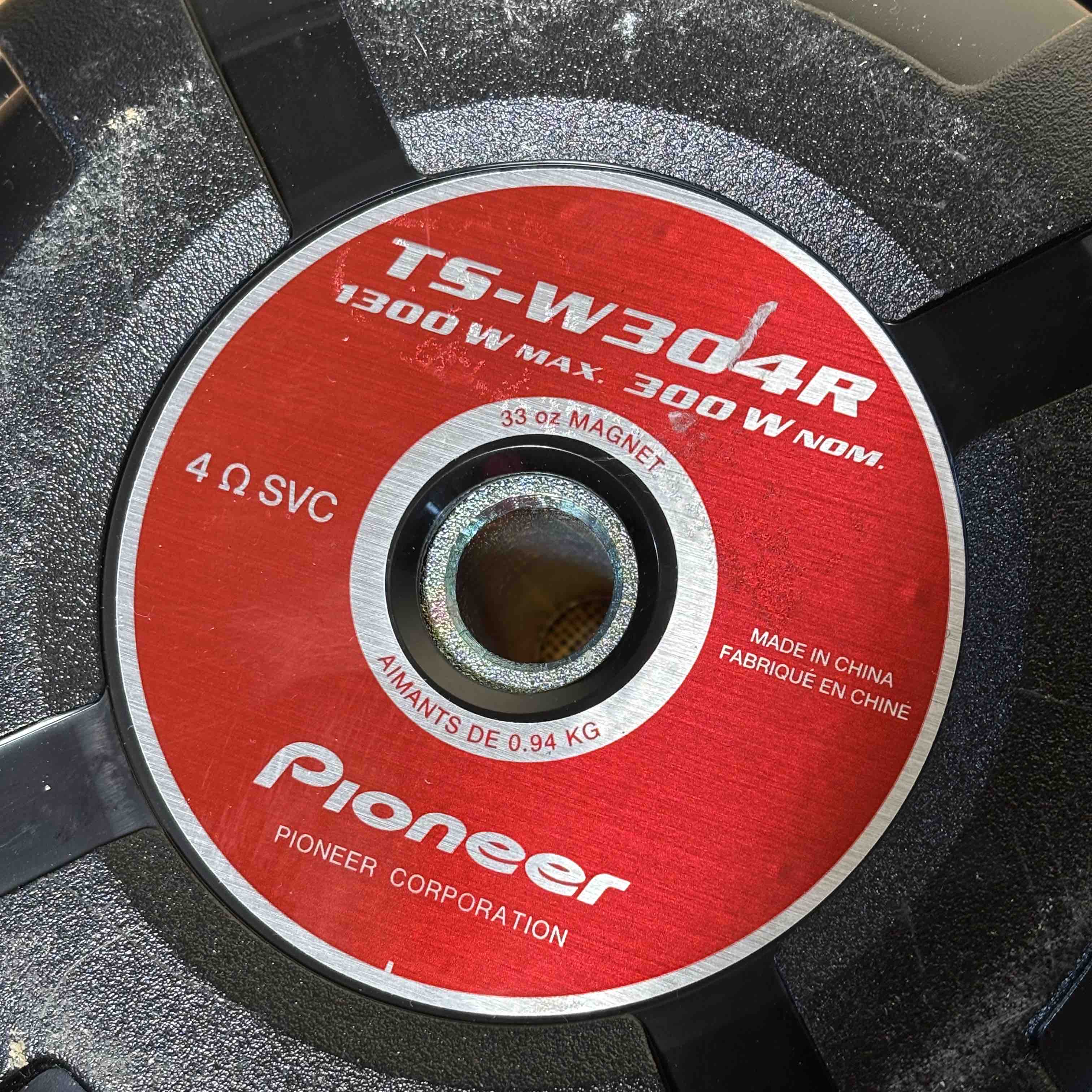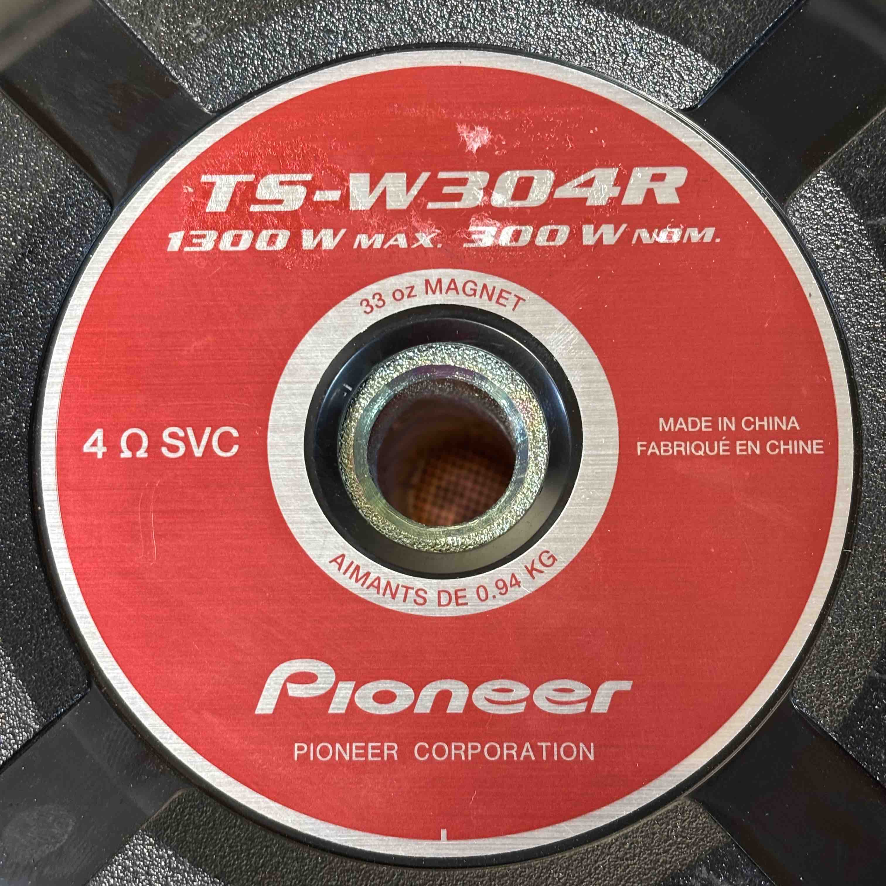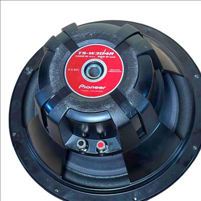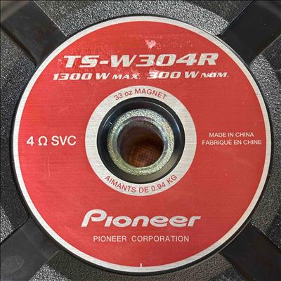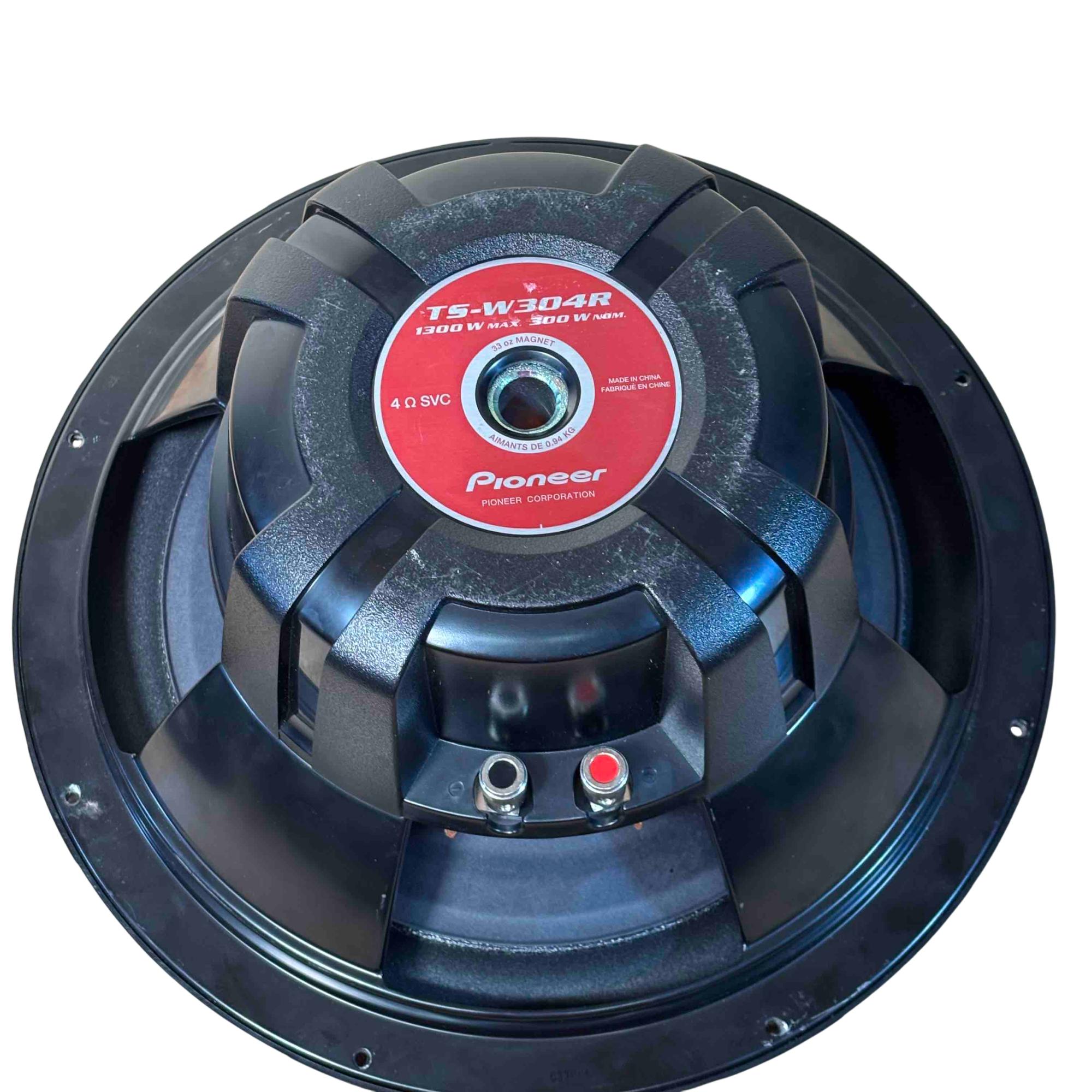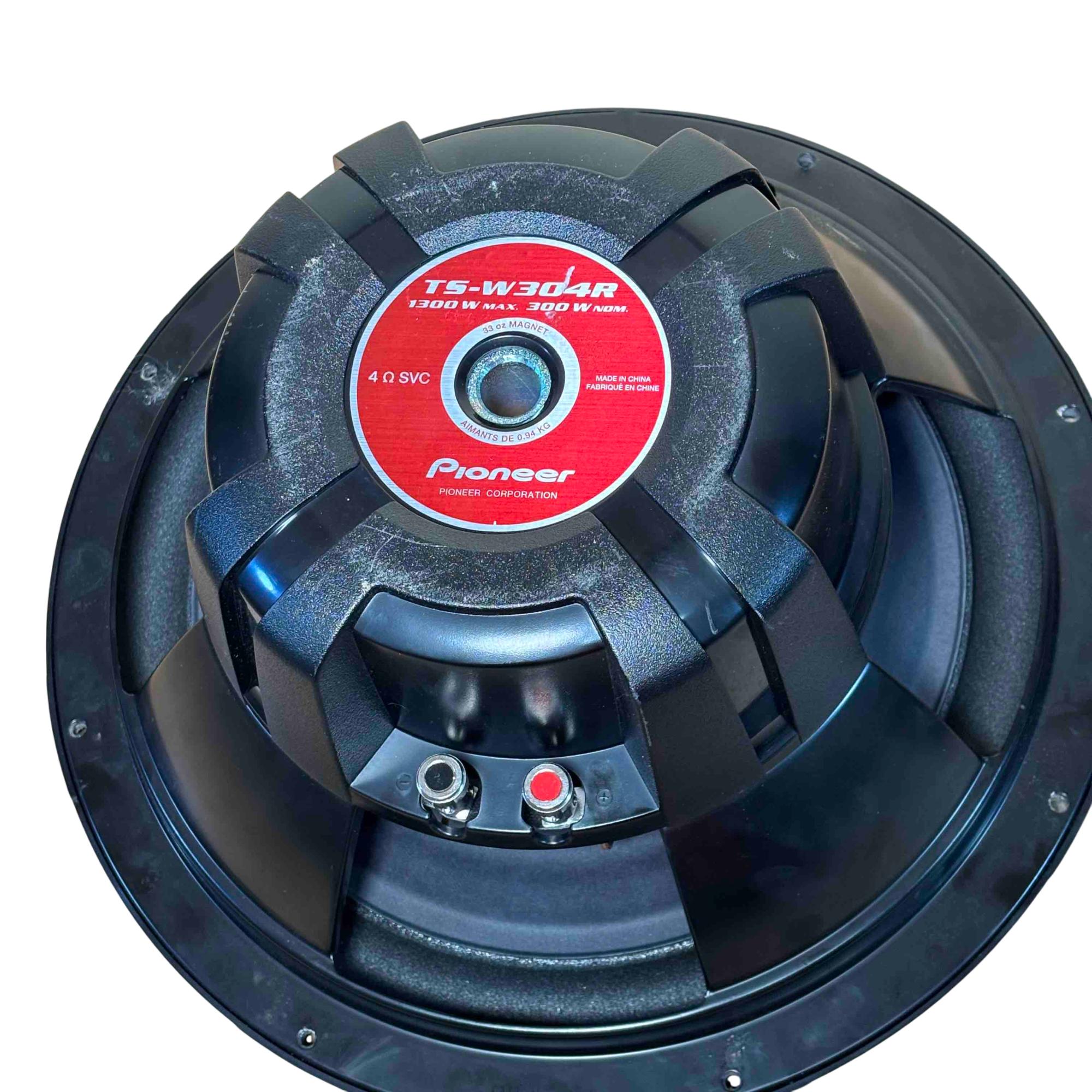 Pioneer TS-W304R 12" 1300W Max 4-Ohm SVC Car Subwoofer Pair delivers powerful bass with a 1300-watt maximum power handling and a single voice coil design. Featuring a robust 0.94 kg magnet and 300-watt nominal power, these 12-inch subwoofers provide deep, high-quality sound for automotive audio systems.