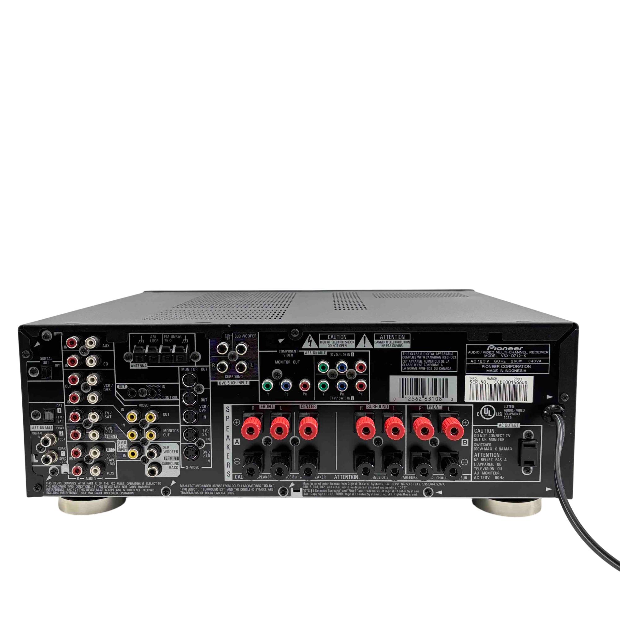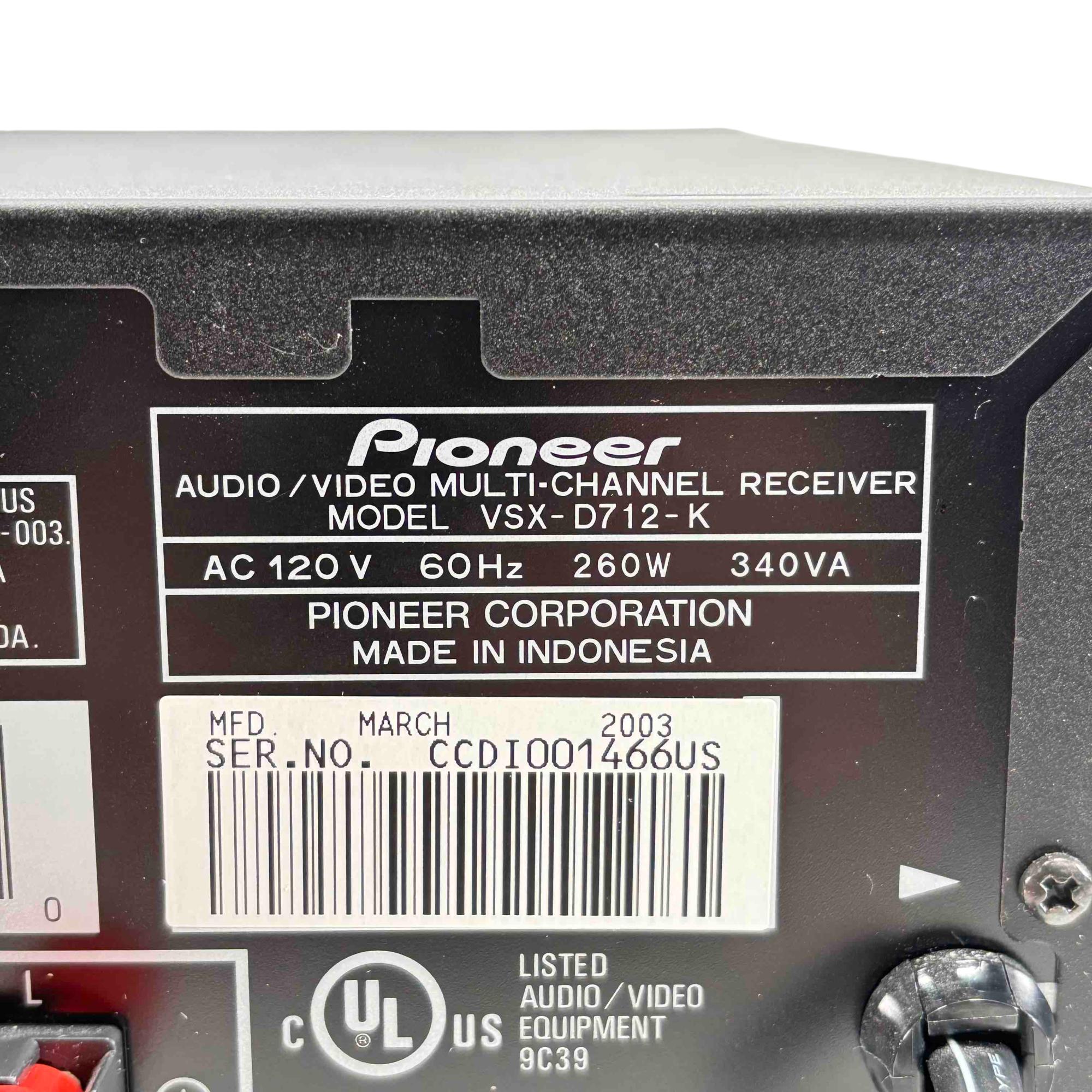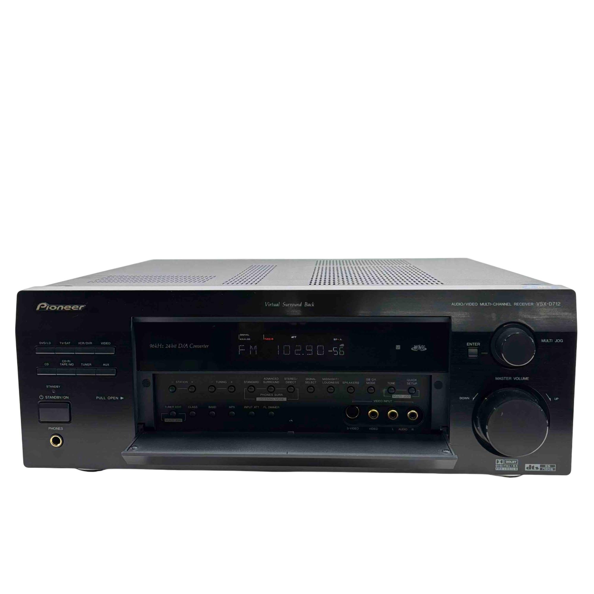 Upgrade your home audio setup with the Pioneer VSX-D712-K Multi-Channel Audio/Video Receiver, designed for audiophiles who appreciate exceptional sound quality. Featuring Dolby Digital EX and DTS-ES support, this receiver delivers immersive surround sound perfect for movies, music, and games. Its sleek black design complements any entertainment system while providing versatile inputs and outputs to connect all your audio and video components seamlessly.