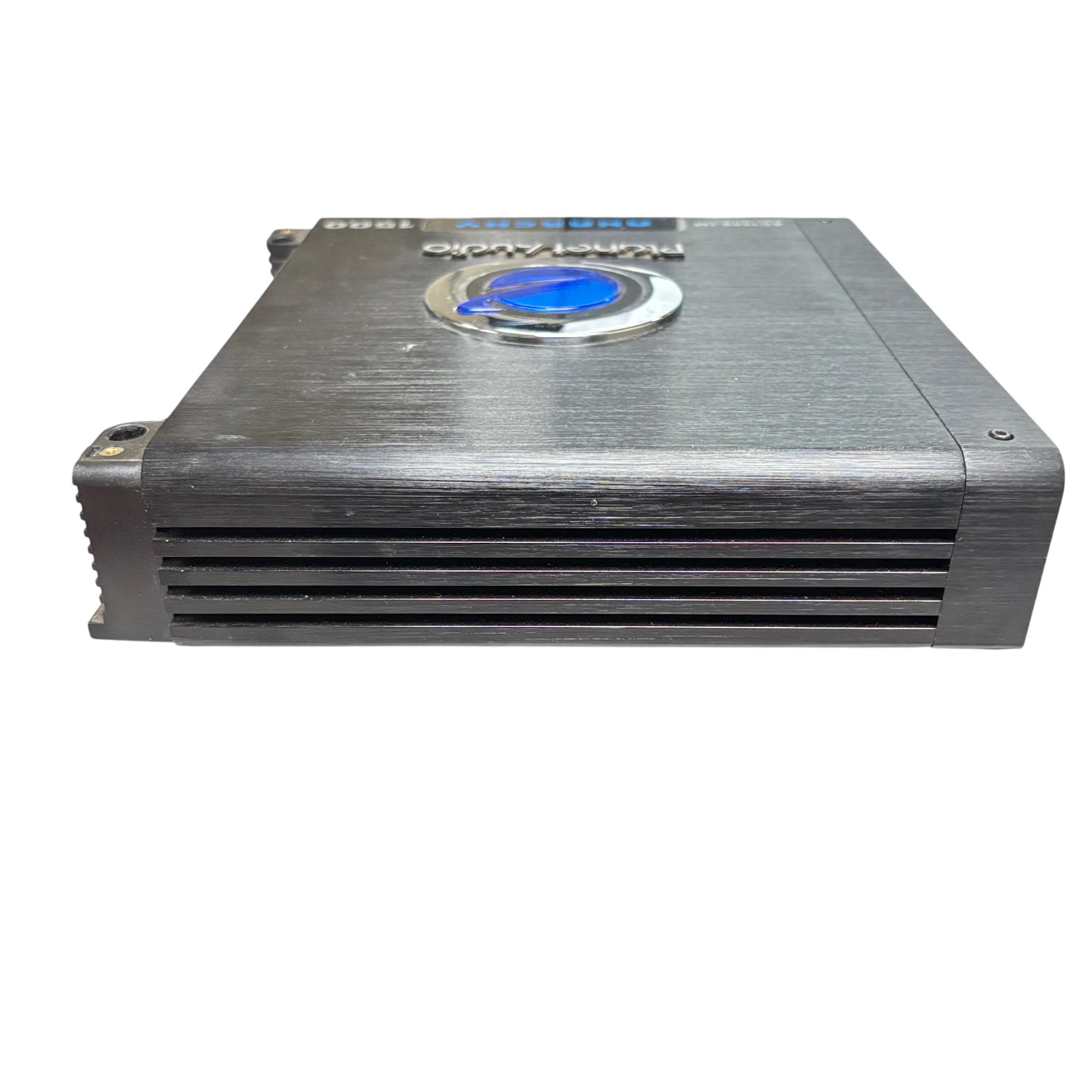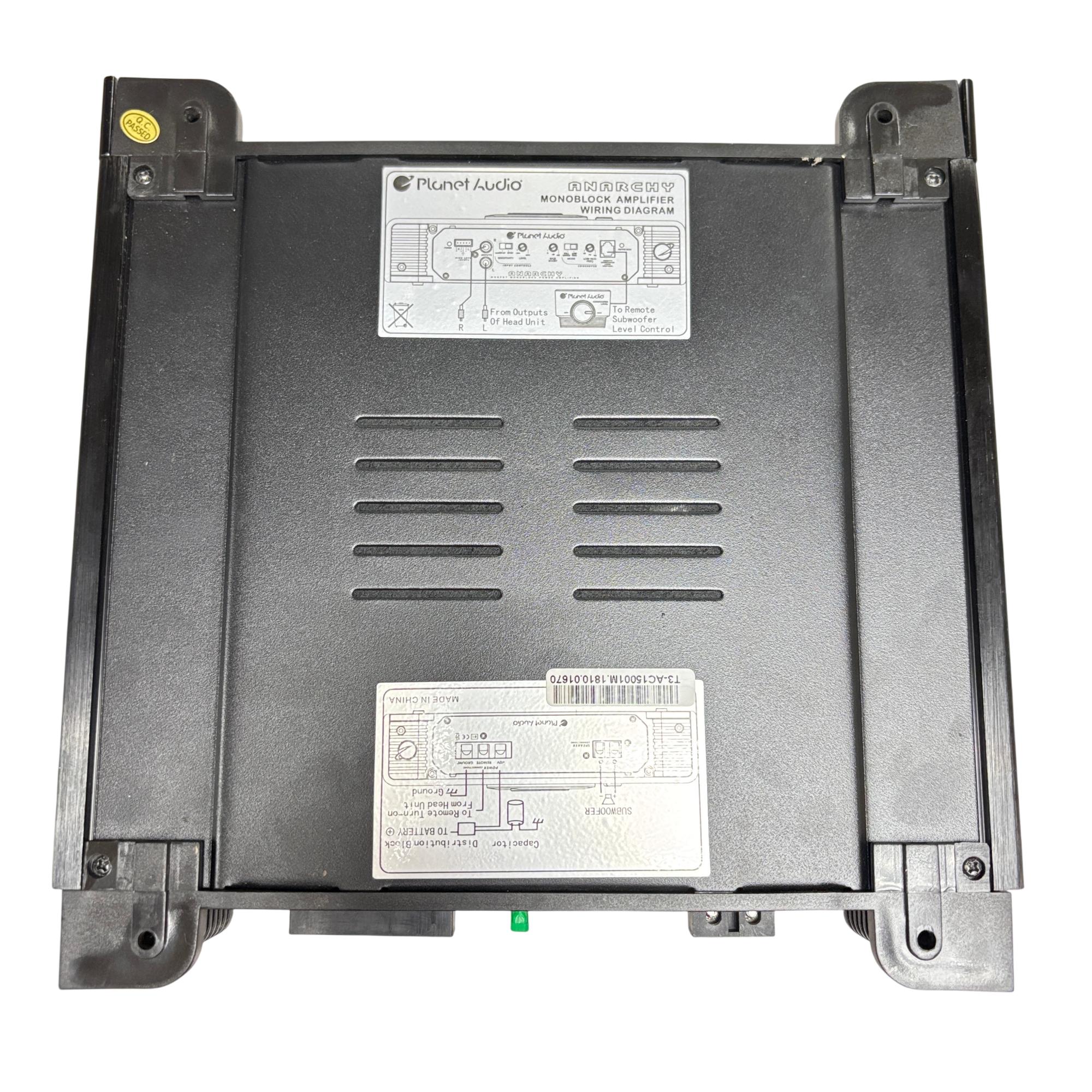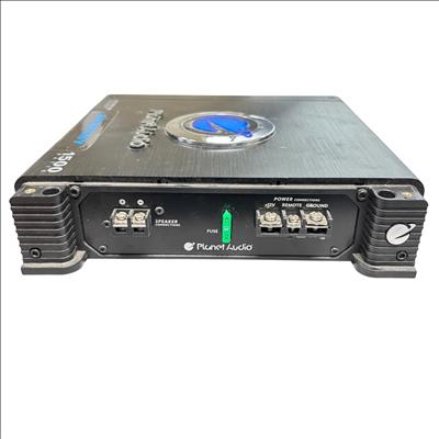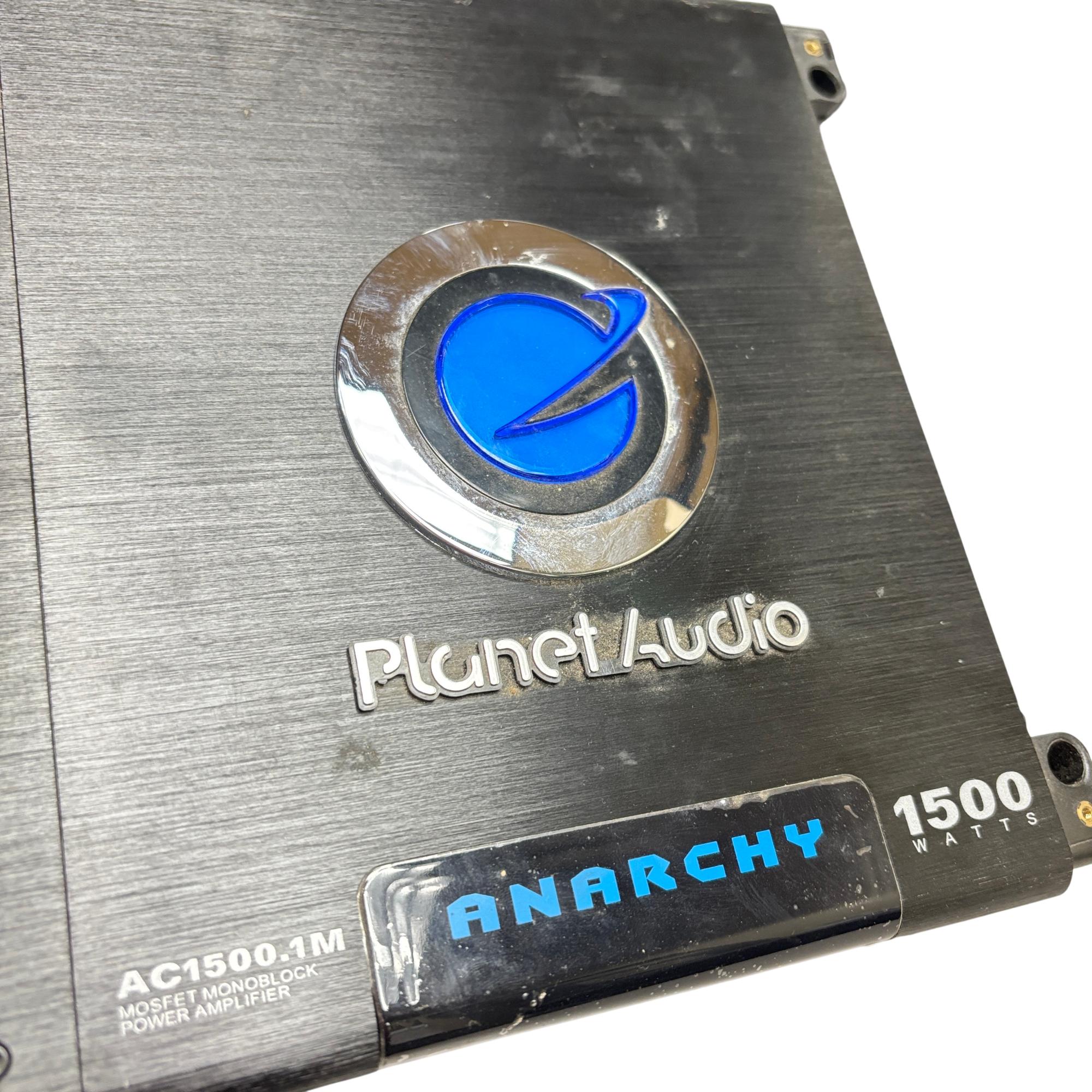 This Planet Audio Anarchy AC1500.1M MOSFET Monoblock Power Amplifier delivers high-performance 1500-watt power output designed for superior car audio systems. This black monoblock amplifier features advanced MOSFET circuitry and multiple power and speaker connections, ensuring reliable and efficient sound amplification tailored for automotive use.
