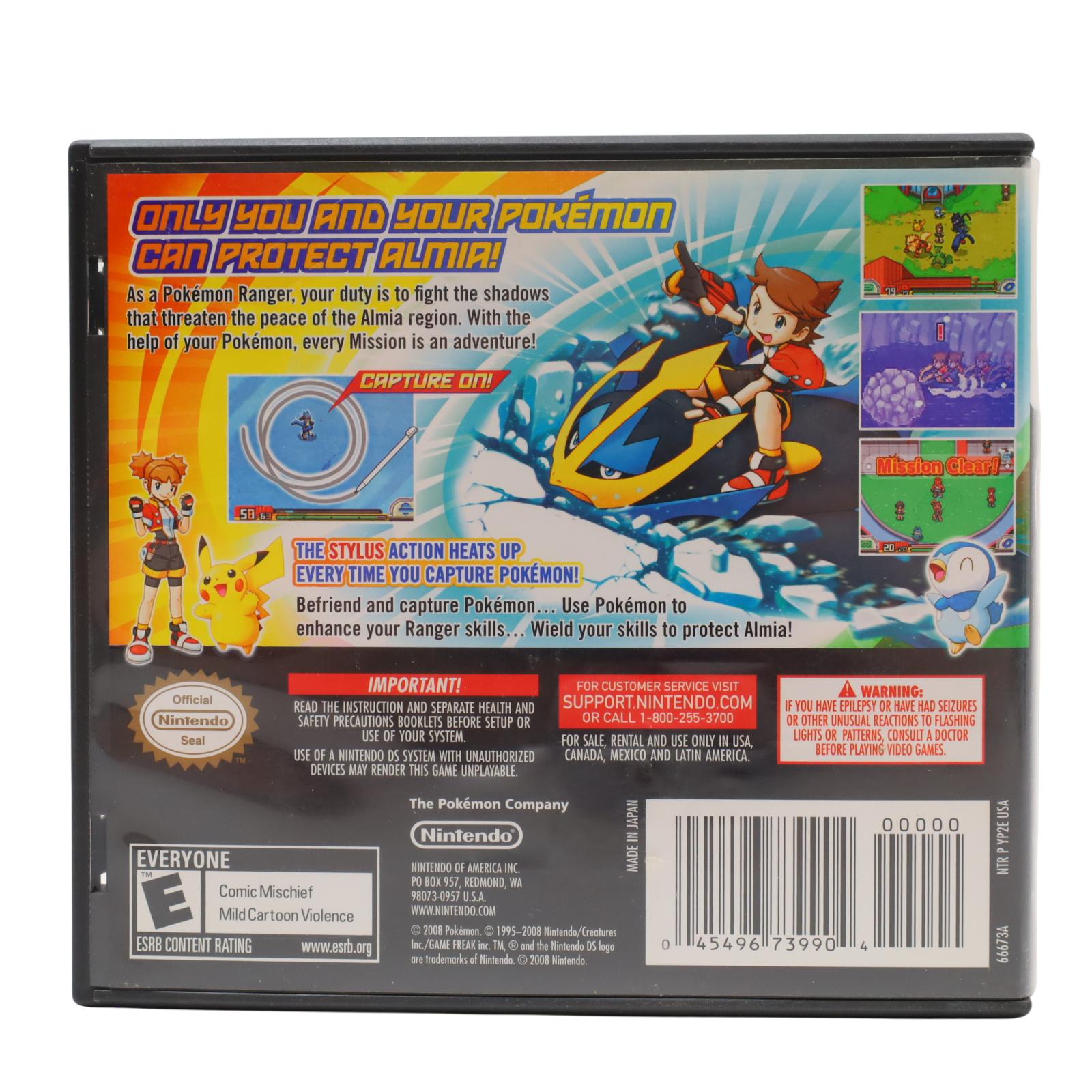 A Nintendo DS game set in the Almia region, a landscape spanning deserts, valleys, and volcanic areas, with connections to other Pokémon regions like Sinnoh and Orre. Players begin as a ranger-in-training at Ranger School, progressing through missions to capture and befriend wild Pokémon using a stylus-based Capture Styler, which now relies on filling a Friendship Gauge through continuous looping rather than perfect strokes. Partner Pokémon selection is expanded, allowing players to choose from 17 types, including Pachirisu, Munchlax, and Starly, with additional partners earned through quests that offer power-ups and rewards. The game introduces four stylers—School, Capture, Fine, and Vatonage—each with unique functions, such as the Fine Styler’s charge feature and the Vatonage Styler’s ability to counter Team Dim Sun’s mind-controlled Pokémon. The story follows the player as they uncover an evil organization using Miniremos and Gigaremos to manipulate Pokémon, confronting a corrupt teacher, Mr. Kincaid, and his team in a conflict involving shadow crystals and ancient ruins. Missions include rescuing Pokémon, exploring volcanic islands, and retrieving artifacts to neutralize the group’s control, culminating in a showdown at a submerged base and a final confrontation with Kincaid.