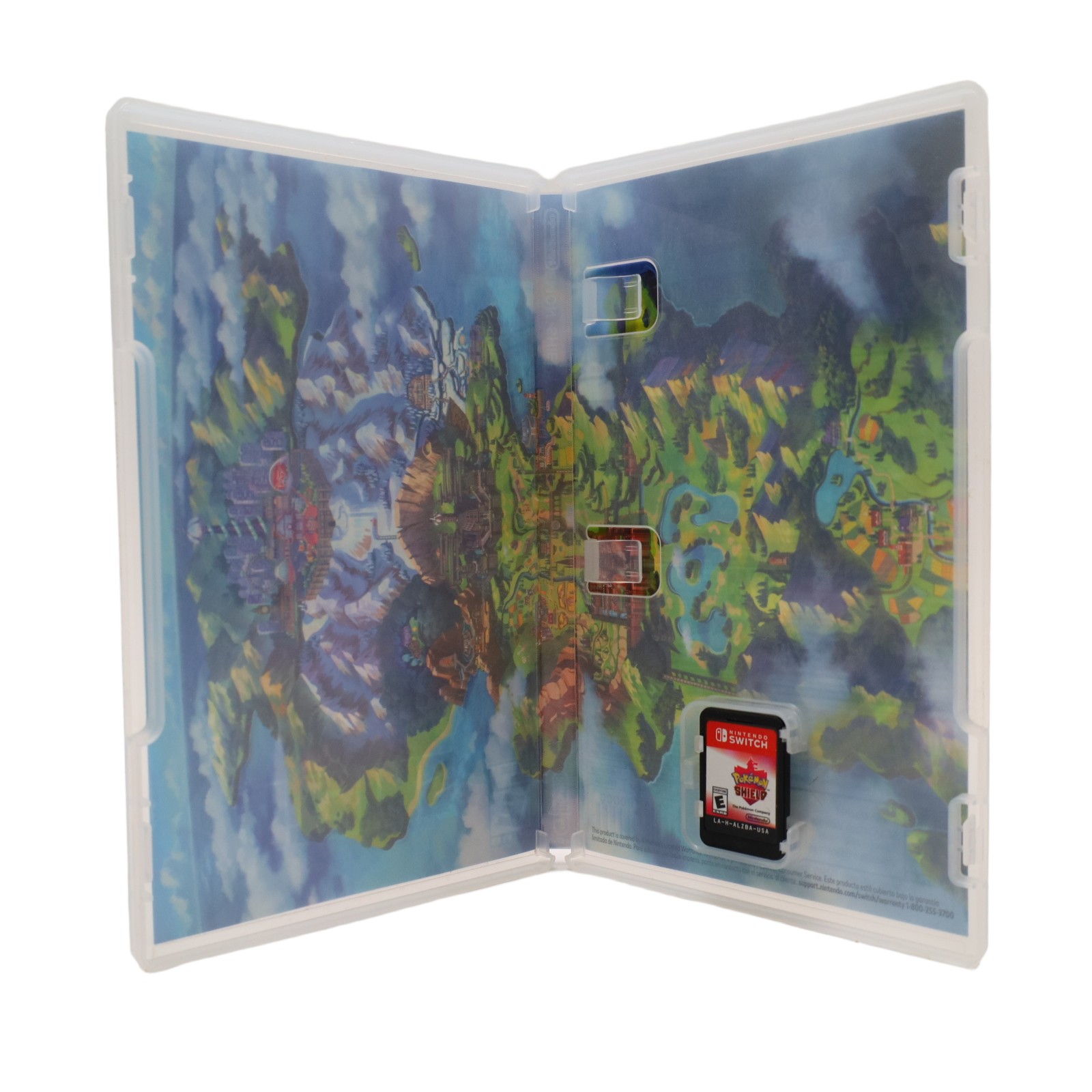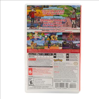 A role-playing game set in the Galar region, a world inspired by the United Kingdom and featuring a mix of countryside, industrial, and urban settings. Players take on the role of a young Pokémon trainer who embarks on a journey to become Champion by capturing creatures known as Pokémon, battling Gym Leaders across eight cities, and ultimately defeating the reigning Champion, Leon. Gameplay involves turn-based battles, Pokémon training, evolution, and exploration, with certain Pokémon exclusive to either Shield or its counterpart, Sword, encouraging trading. The story includes rival characters, a mysterious ancient crisis known as the Darkest Day, and encounters with Legendary Pokémon. Additional post-game content follows the aftermath of the main story, involving new characters and the resolution of lingering threats involving the Legendary Pokémon Zacian and Zamazenta. Online features allow for trading and battling with other players through the Nintendo Switch's connectivity options.