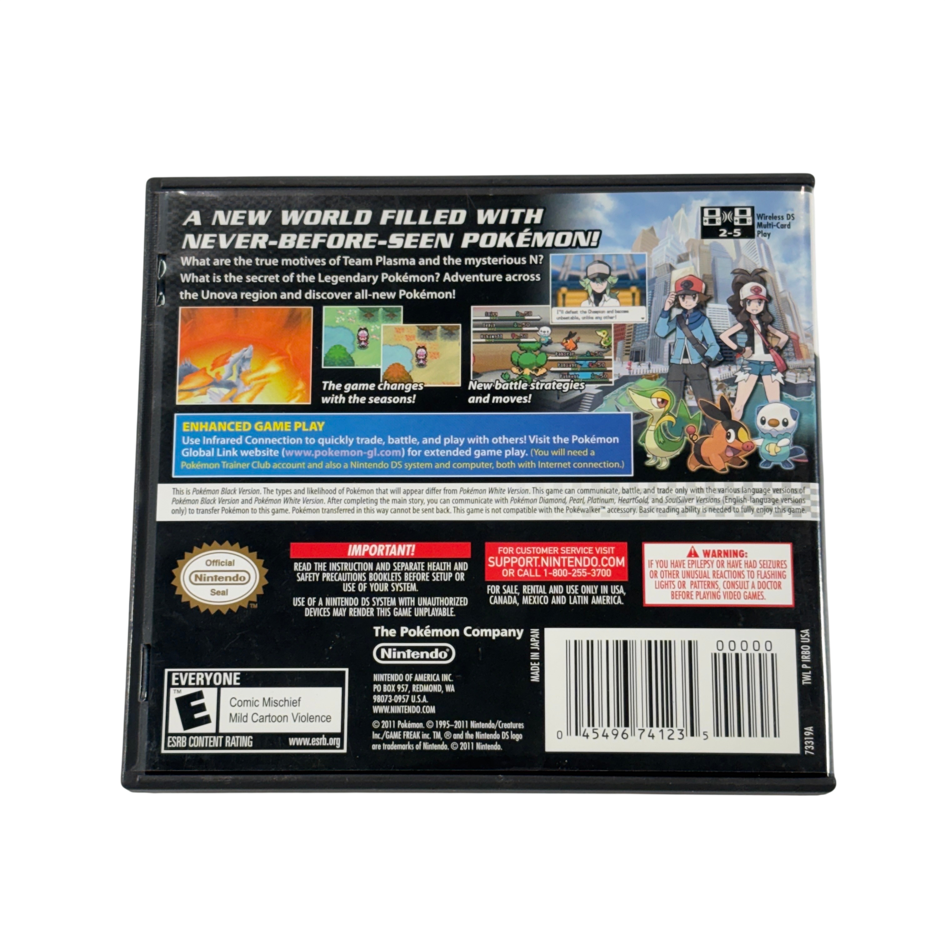 Pokemon Black for the Nintendo DS is a role-playing adventure set in a new region filled with original Pokémon to catch, train, and battle. Players begin their journey as a Pokémon Trainer, choosing a starter companion and exploring a dynamic world while building a powerful team.
