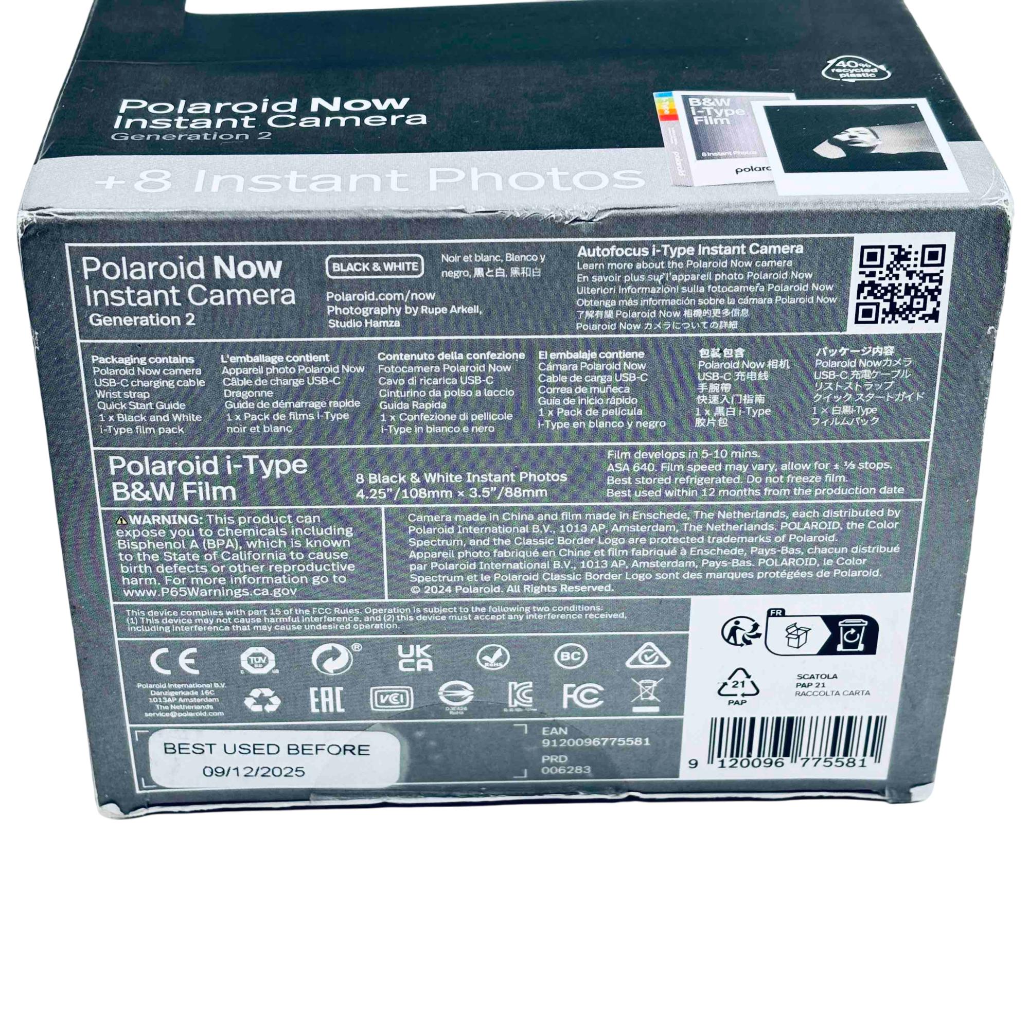 Capture lifes moments in iconic style with the Polaroid Now Generation 2 Instant Camera. This everything box includes an Autofocus camera with Black & White i-Type film, perfect for those nostalgic shots. Its sleek design made from 40% recycled plastic integrates timeless Polaroid aesthetics with modern innovation, ensuring your memories are always in focus.