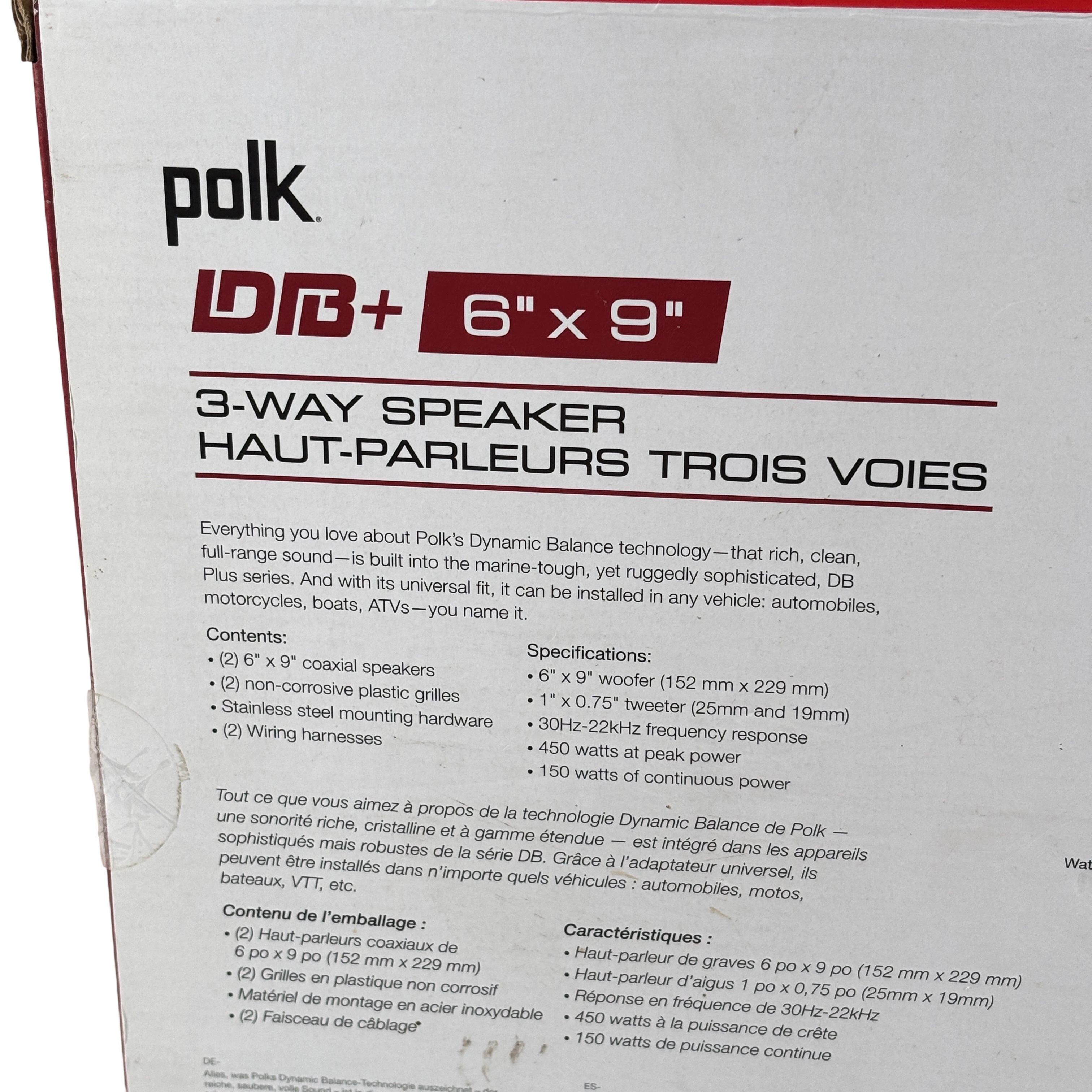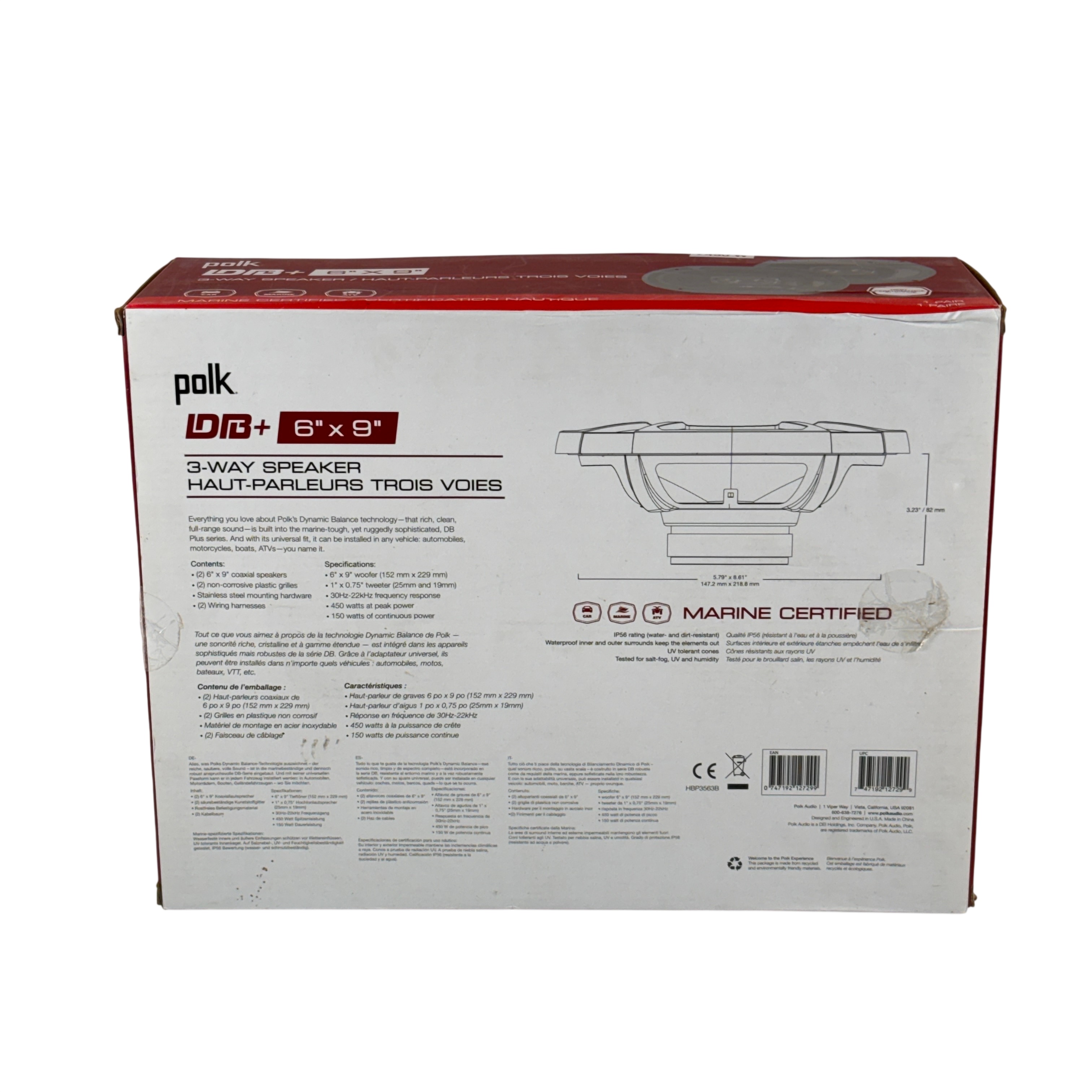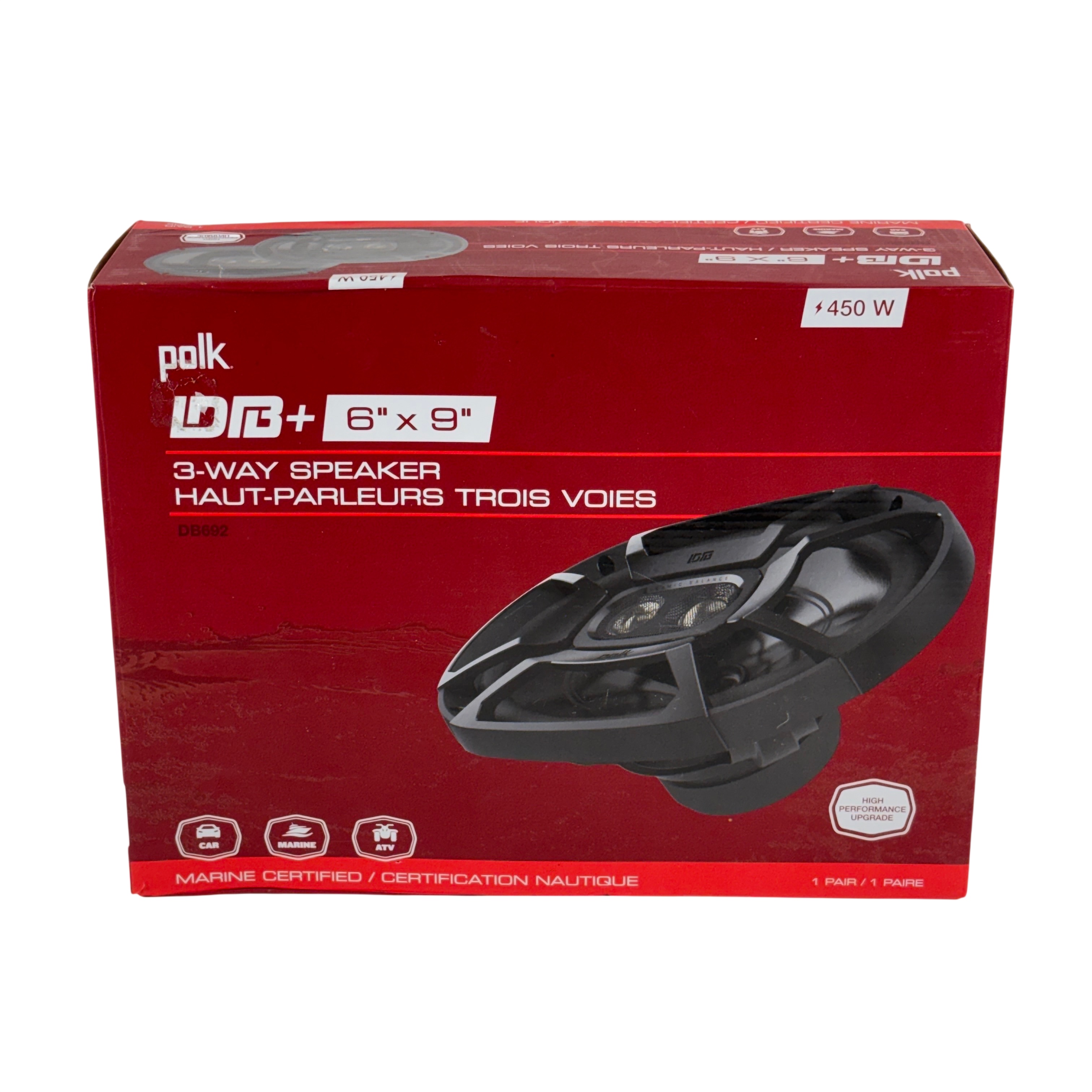 The Polk Audio DB692 is a 6 x 9 inch coaxial speaker designed to deliver clear, powerful audio with strong bass and balanced sound. Built with durable materials, it features a UV-tolerant polypropylene cone and waterproof inner and outer surrounds for reliable performance in demanding environments.