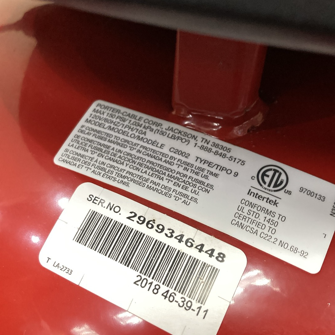 Model: Porter Cable C2002 Air Compressor