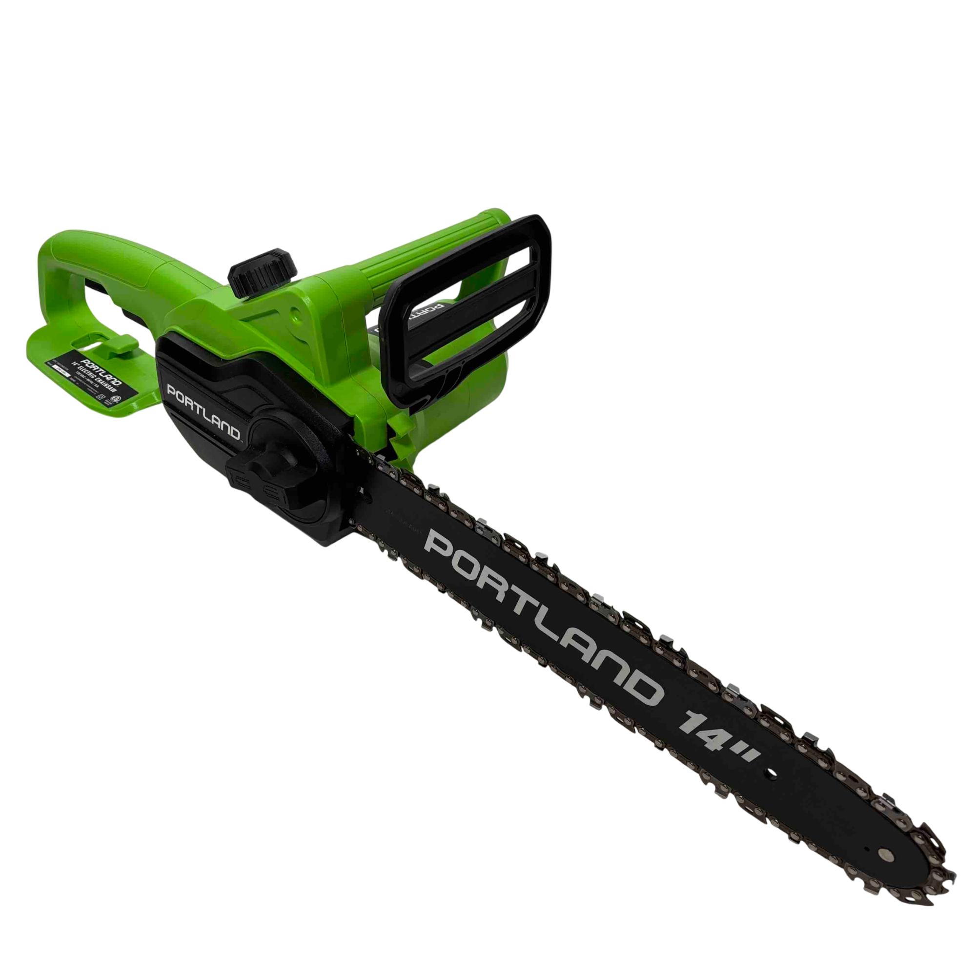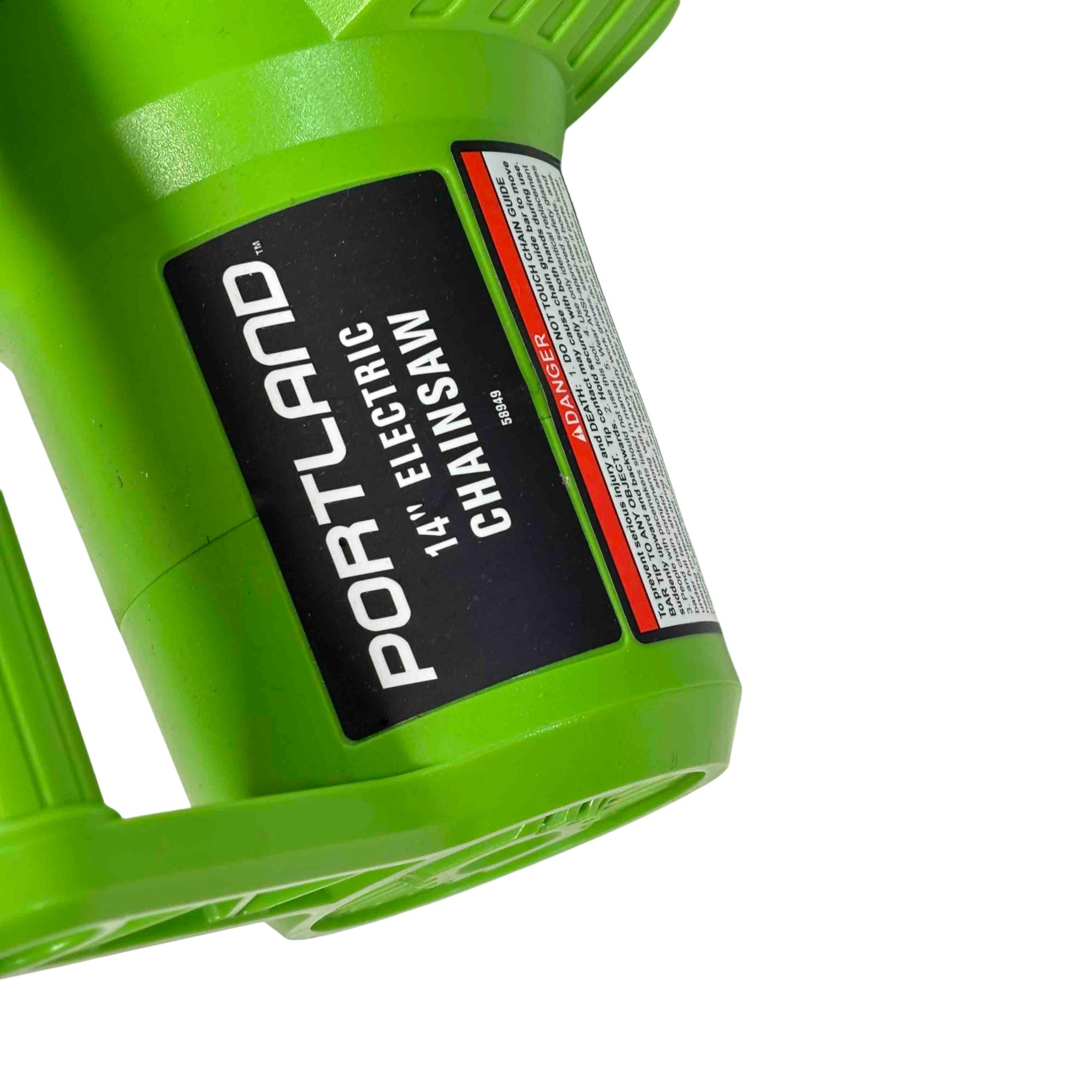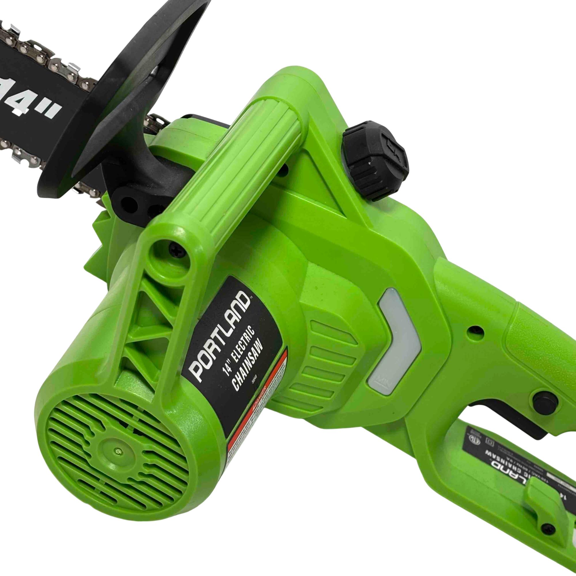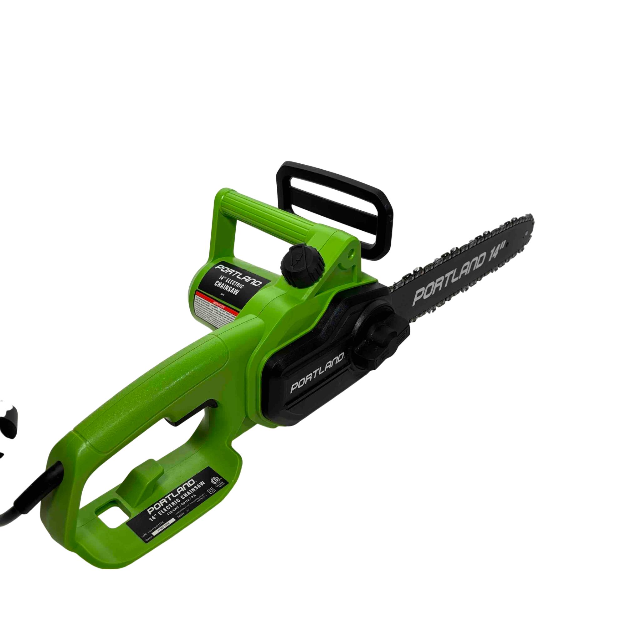 Unleash the power of precision cutting with the Portland 14" Electric Chainsaw, Model 58949. Designed with safety in mind, this robust chainsaw features a vibrant green and black design that stands out while delivering reliable performance for all your cutting needs. Whether youre tackling big jobs or small, this electric chainsaw ensures efficient and safe operation every time.